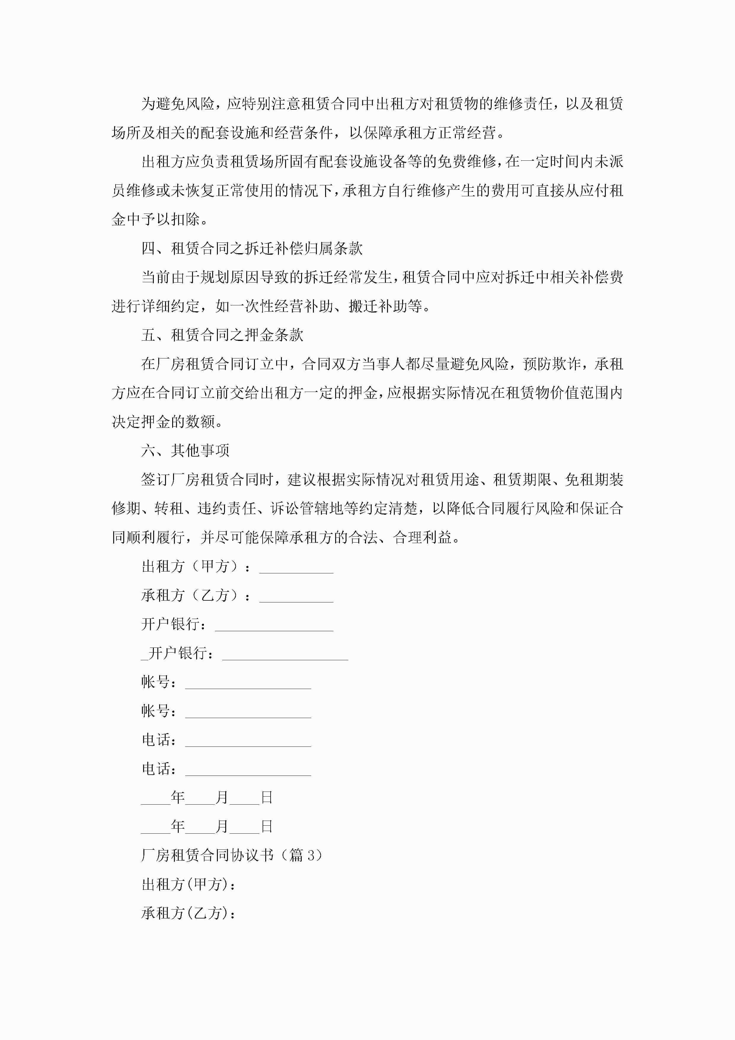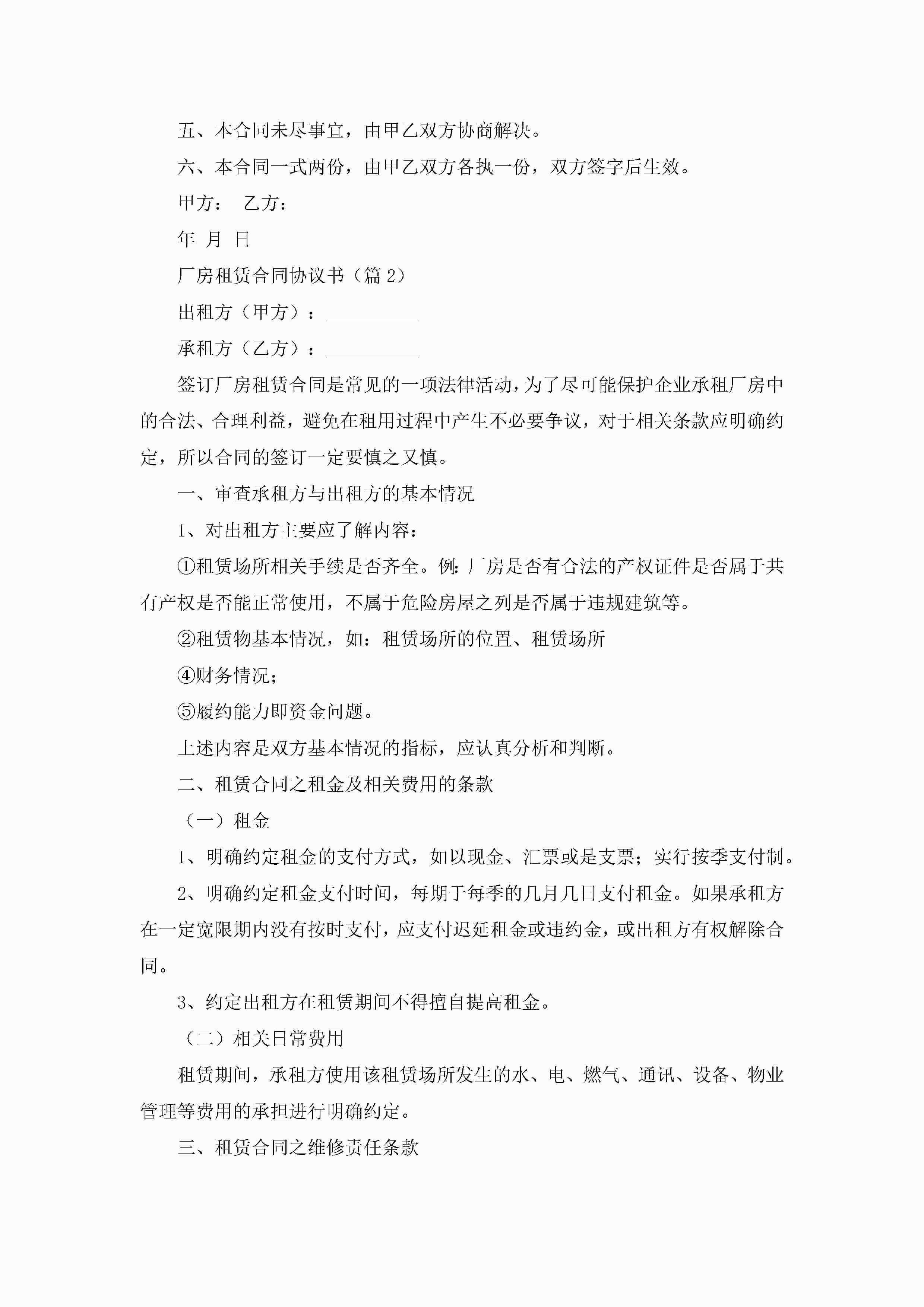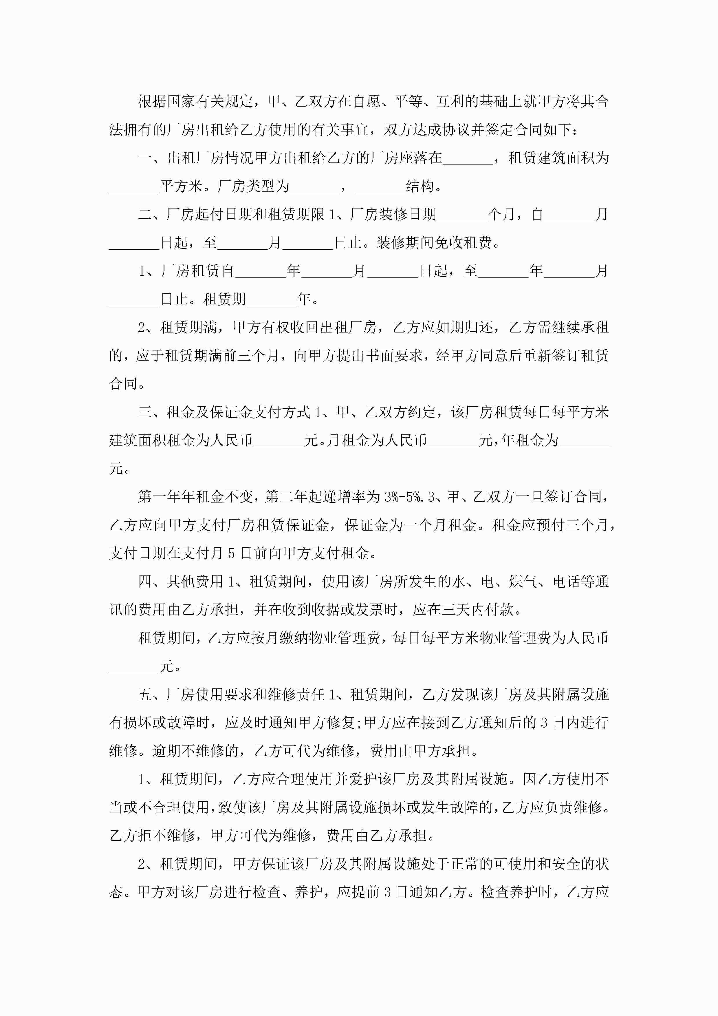 厂房租赁合同协议书7篇jugei3月23日 01:43发布关注188 厂房租赁合同协议书7篇此内容为付费资源,请付费后查看¥10.9 单篇文档限时特惠¥15个人会员开通企业会员开通立即下载无需登陆!可直接快捷下载单个模板付费资源© 版权声明THE ENDWord模板# 实用文档# 实用模板# 合同模板# 租赁合同 如有问题,可点击最底部“联系我们”联系客服 分享QQ空间微博QQ好友海报分享复制链接收藏