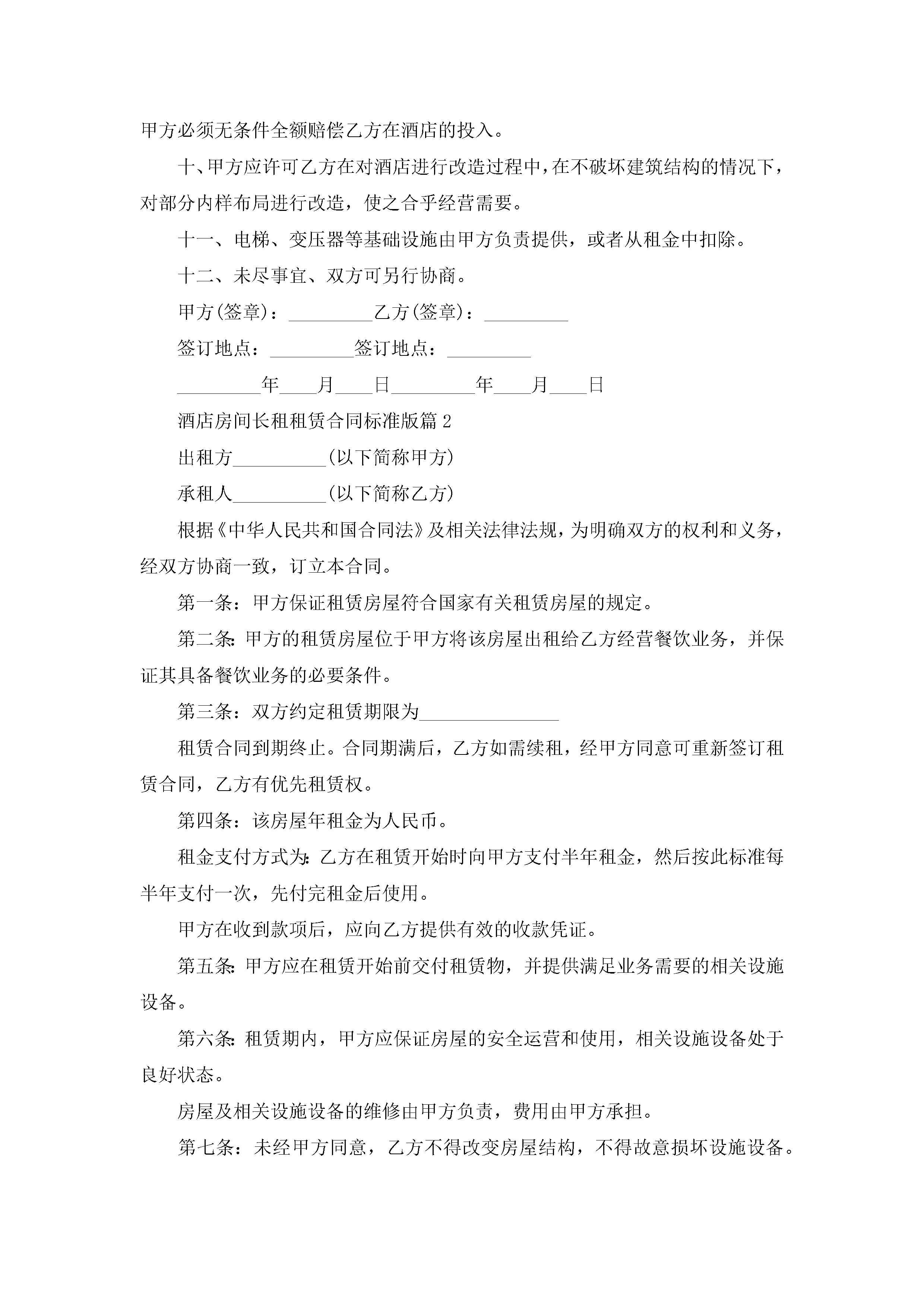 酒店房间长租租赁合同标准版(7篇)jugei3月23日 01:43发布关注345 酒店房间长租租赁合同标准版(7篇)此内容为付费资源,请付费后查看¥10.9 单篇文档限时特惠¥15个人会员开通企业会员开通立即下载无需登陆!可直接快捷下载单个模板付费资源© 版权声明THE ENDWord模板# 实用文档# 合同模板# 租赁合同# 酒店房间长租租赁合同标准版 如有问题,可点击最底部“联系我们”联系客服 分享QQ空间微博QQ好友海报分享复制链接收藏