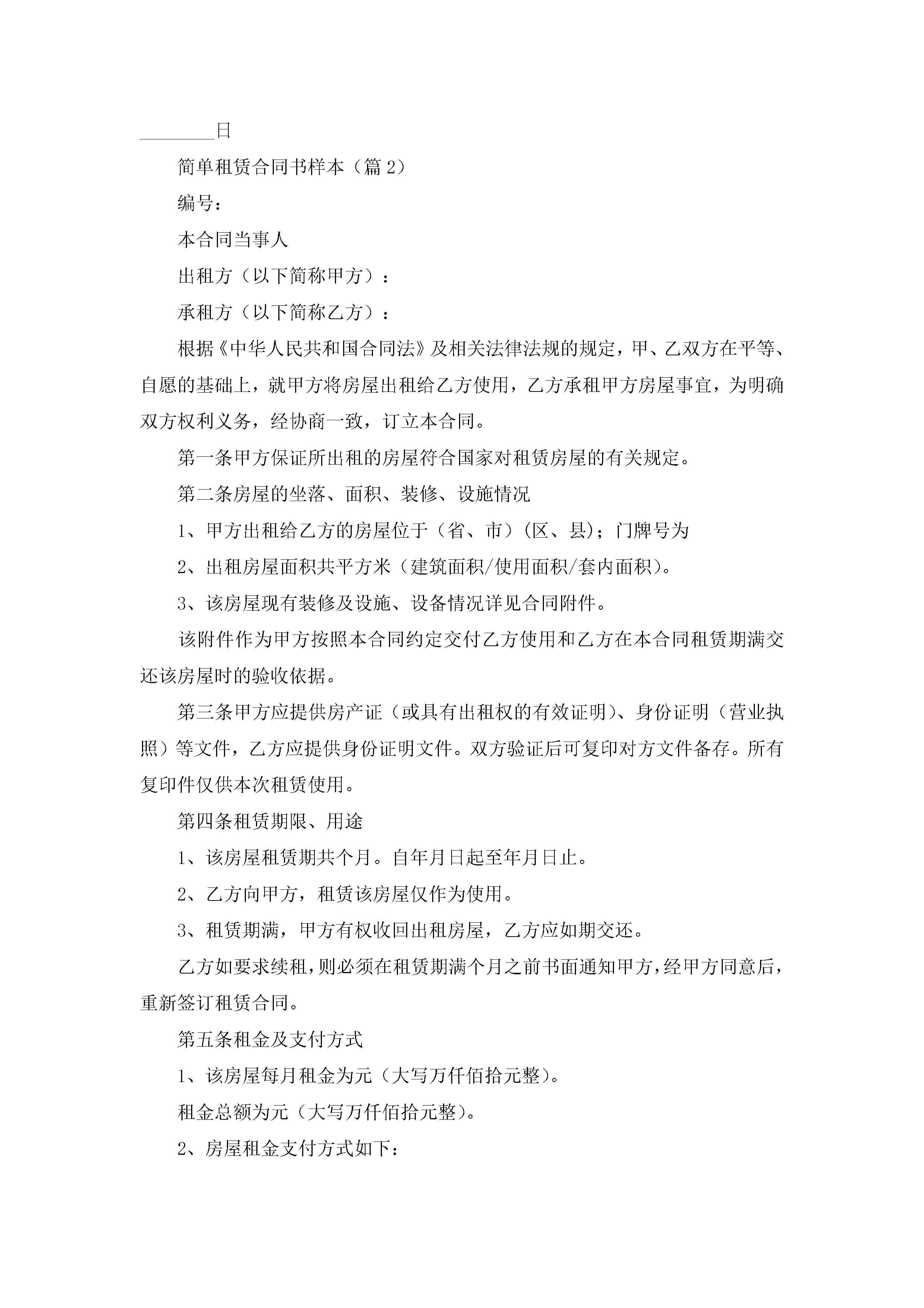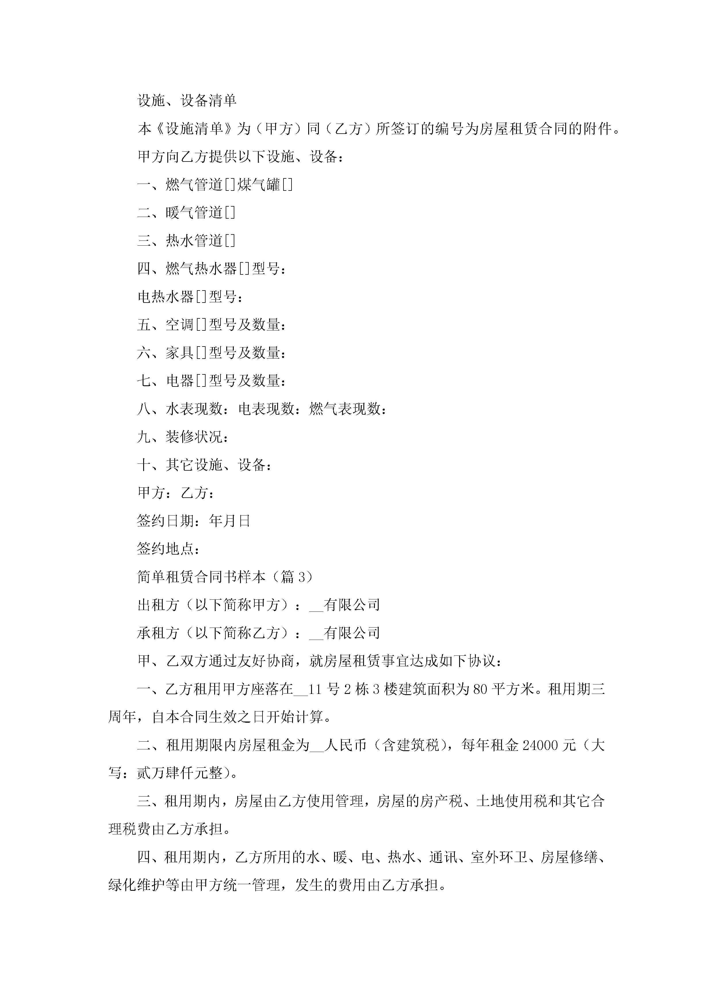 简单租赁合同书最新样本【七篇】jugei3月23日 01:43发布关注188 简单租赁合同书最新样本【七篇】此内容为付费资源,请付费后查看¥10.9 单篇文档限时特惠¥15个人会员开通企业会员开通立即下载无需登陆!可直接快捷下载单个模板付费资源© 版权声明THE ENDWord模板# 实用文档# 实用模板# 合同模板# 租赁合同 如有问题,可点击最底部“联系我们”联系客服 分享QQ空间微博QQ好友海报分享复制链接收藏