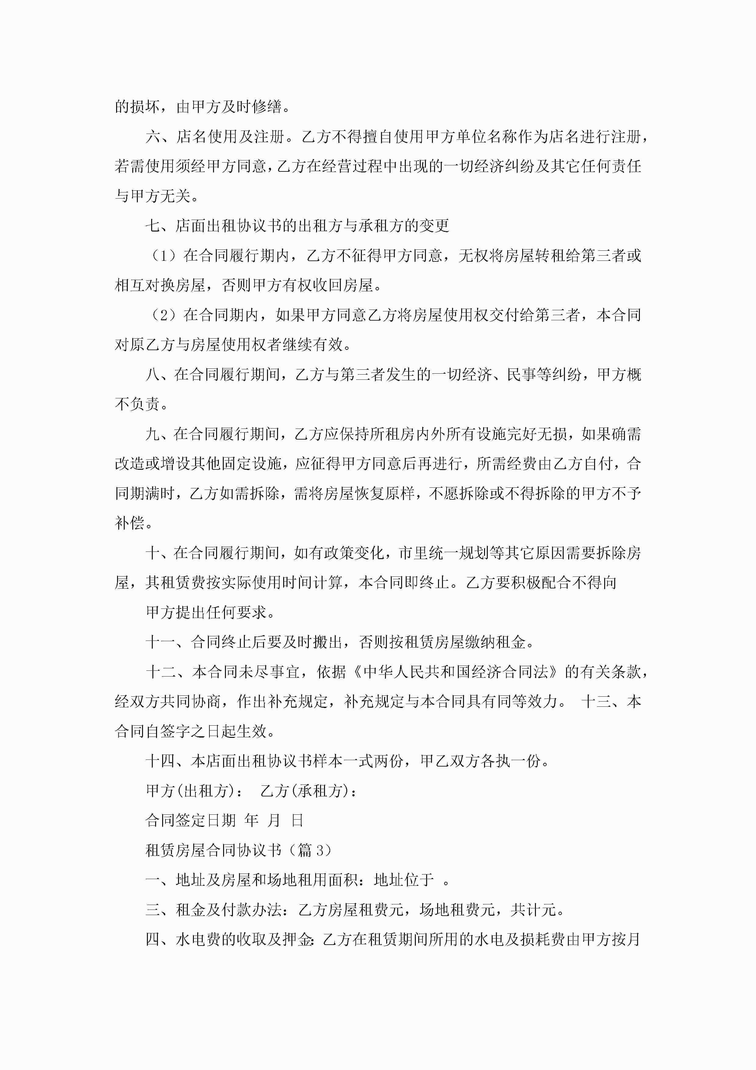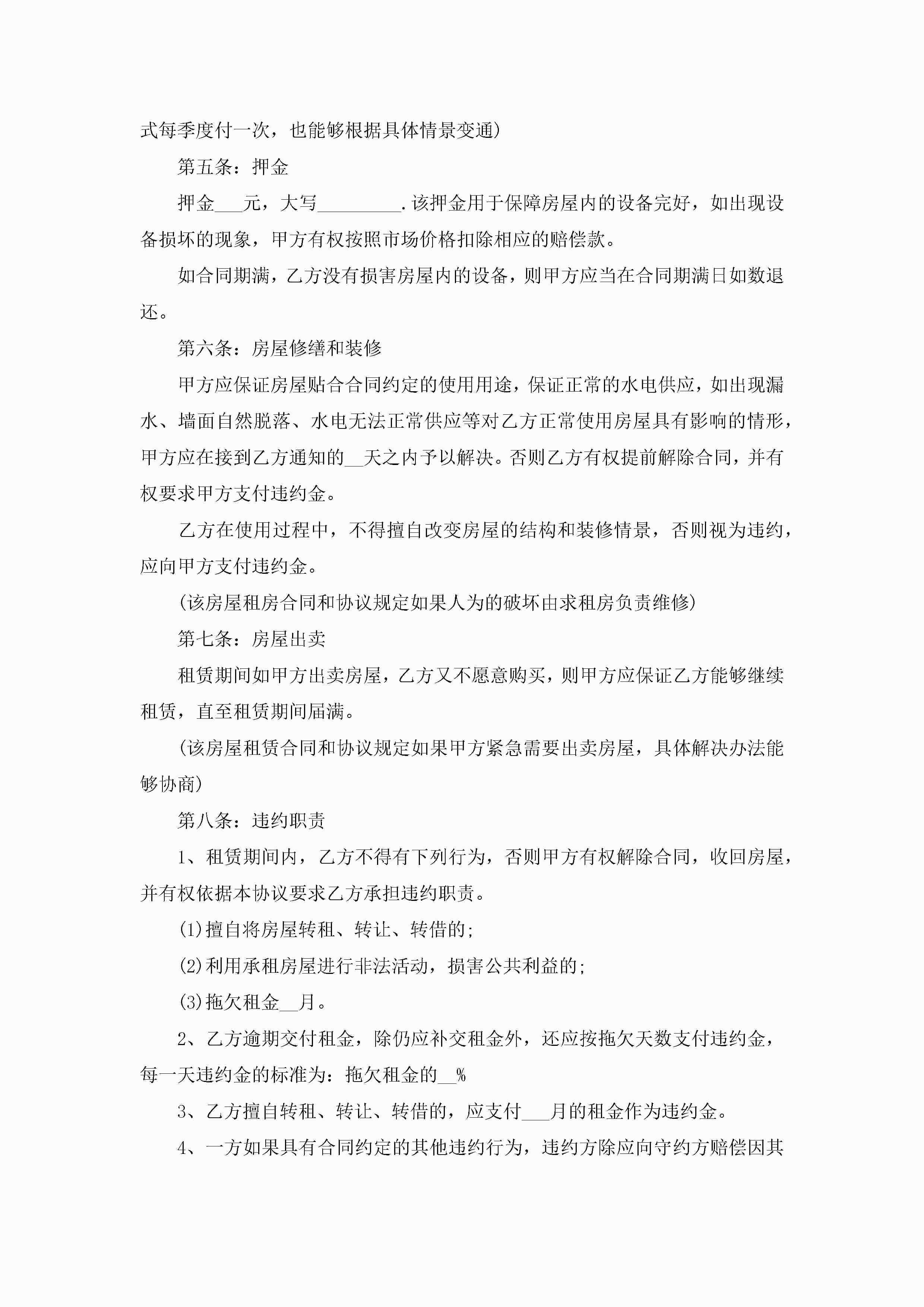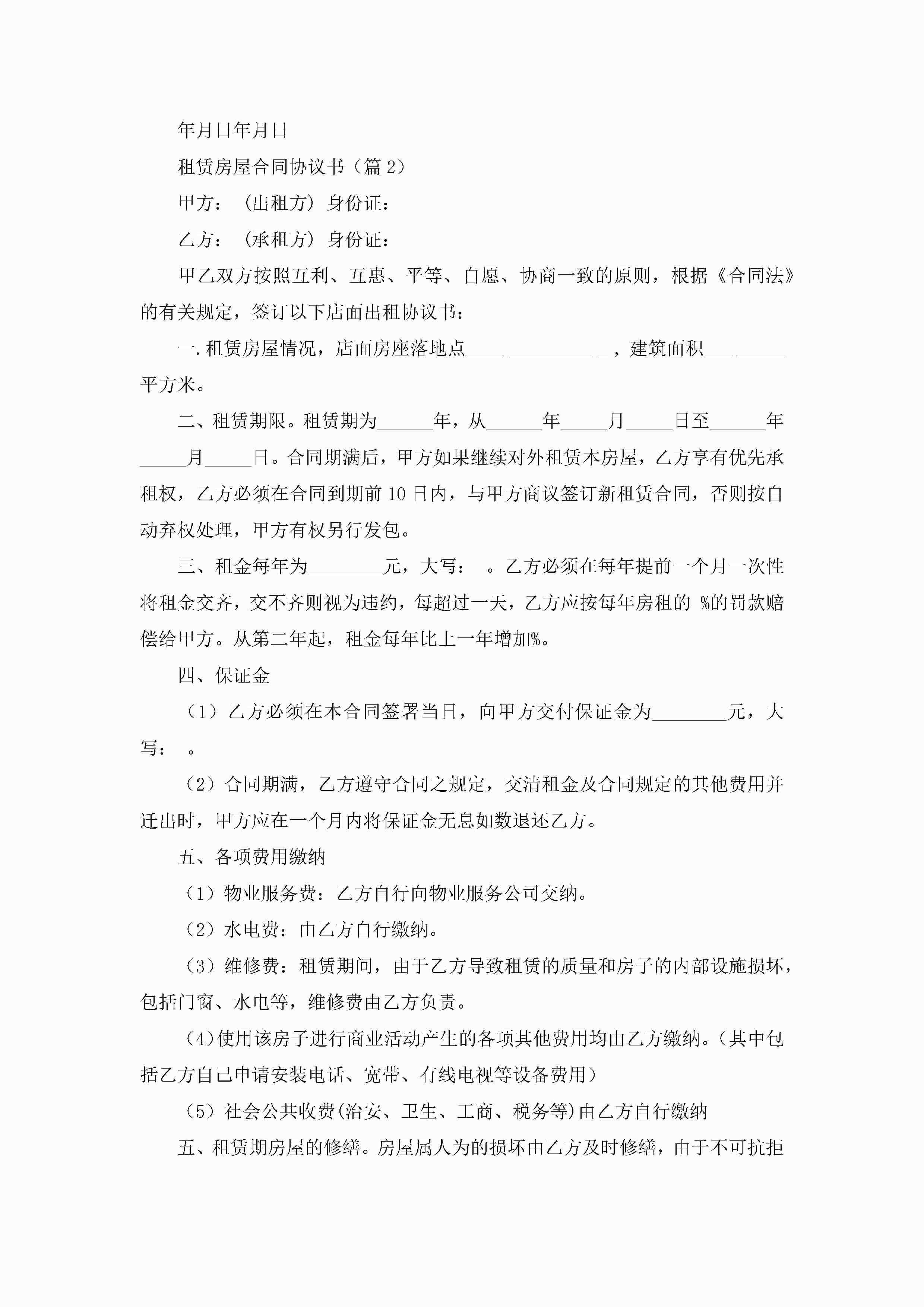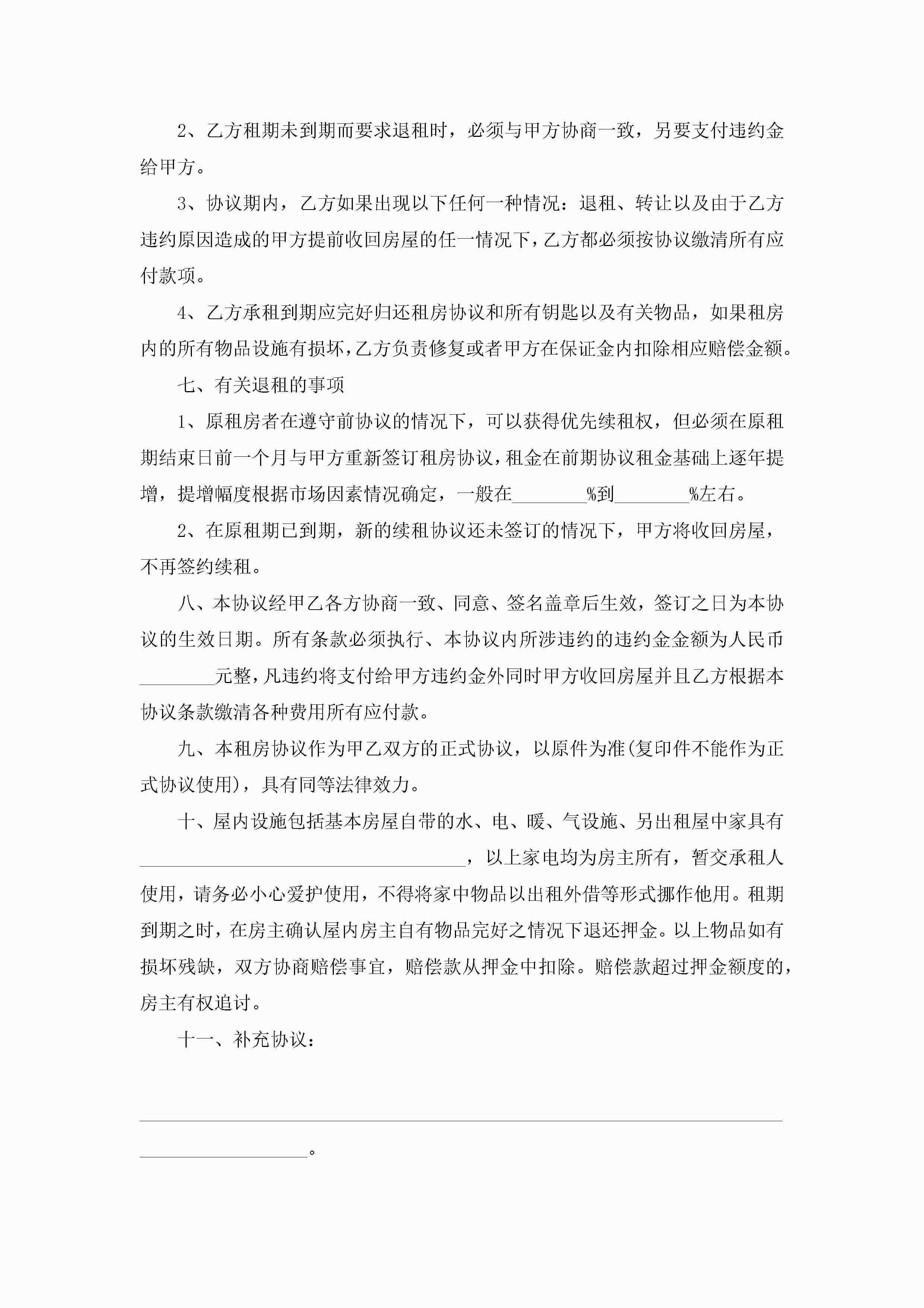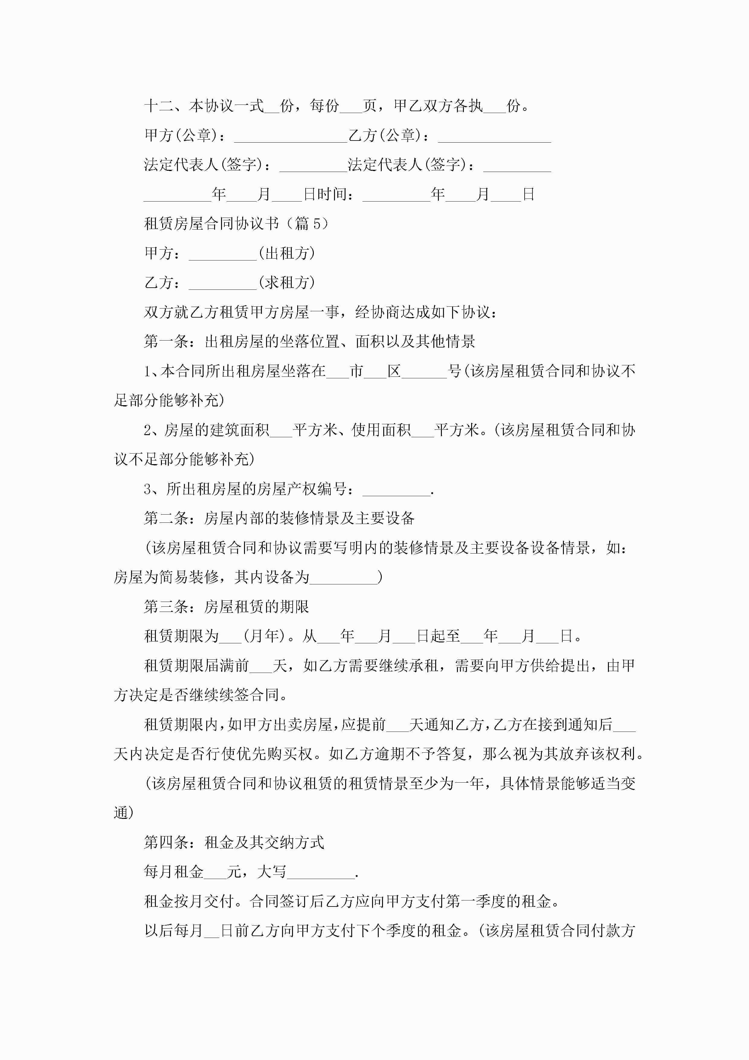 最新租赁房屋合同协议书七篇jugei3月23日 01:43发布关注262 最新租赁房屋合同协议书七篇此内容为付费资源,请付费后查看¥10.9 单篇文档限时特惠¥15个人会员开通企业会员开通立即下载无需登陆!可直接快捷下载单个模板付费资源© 版权声明THE ENDWord模板# 实用文档# 实用模板# 合同模板# 租赁合同 如有问题,可点击最底部“联系我们”联系客服 分享QQ空间微博QQ好友海报分享复制链接收藏