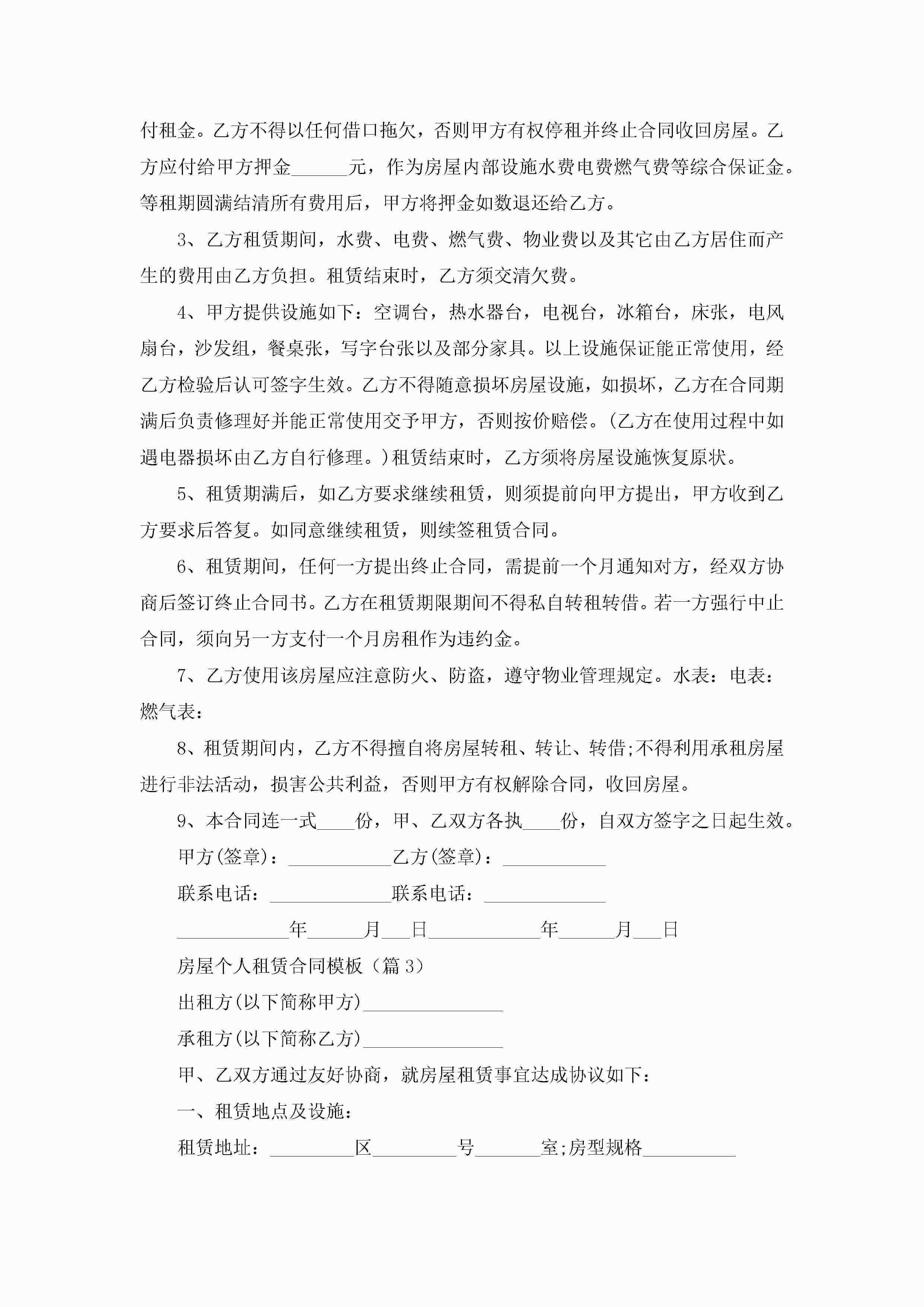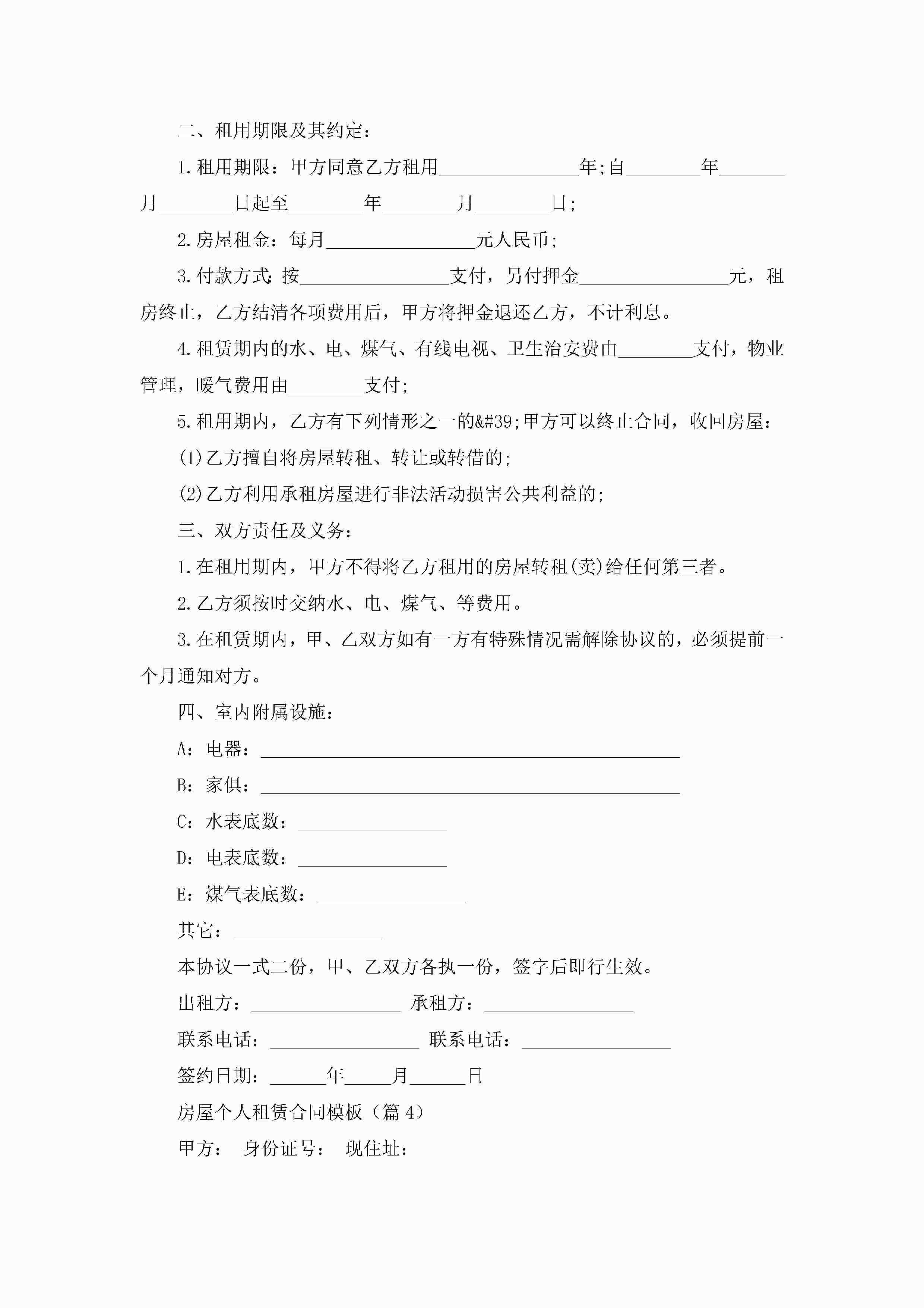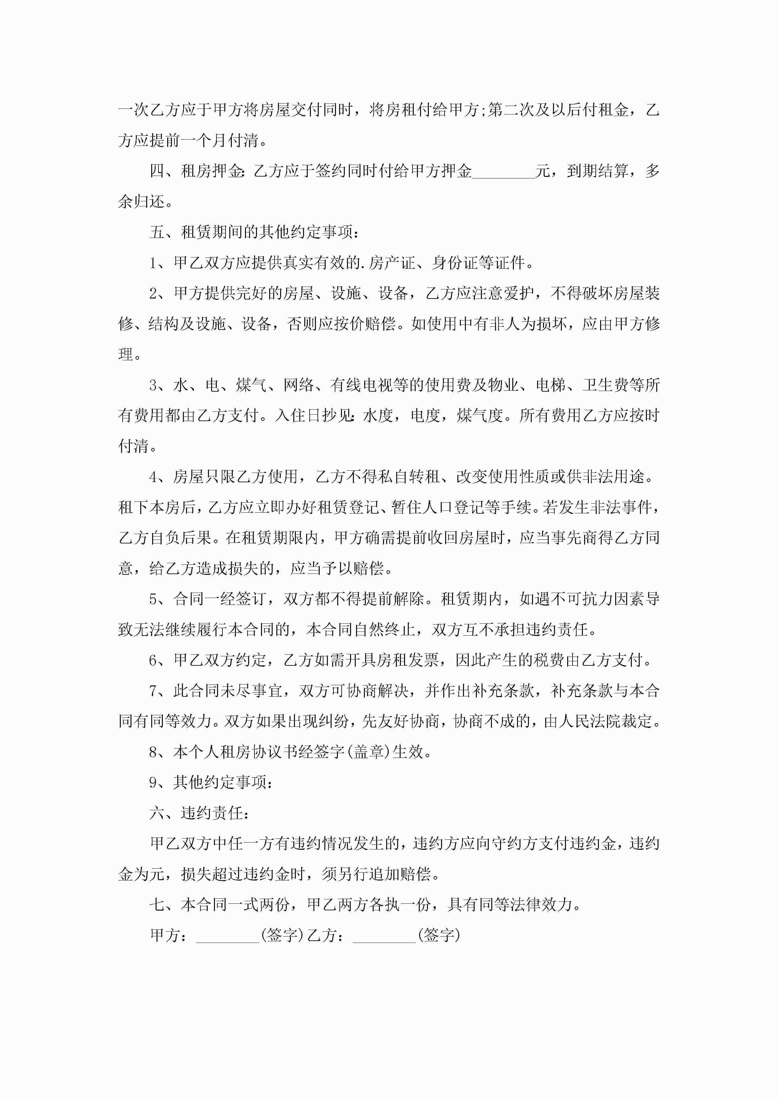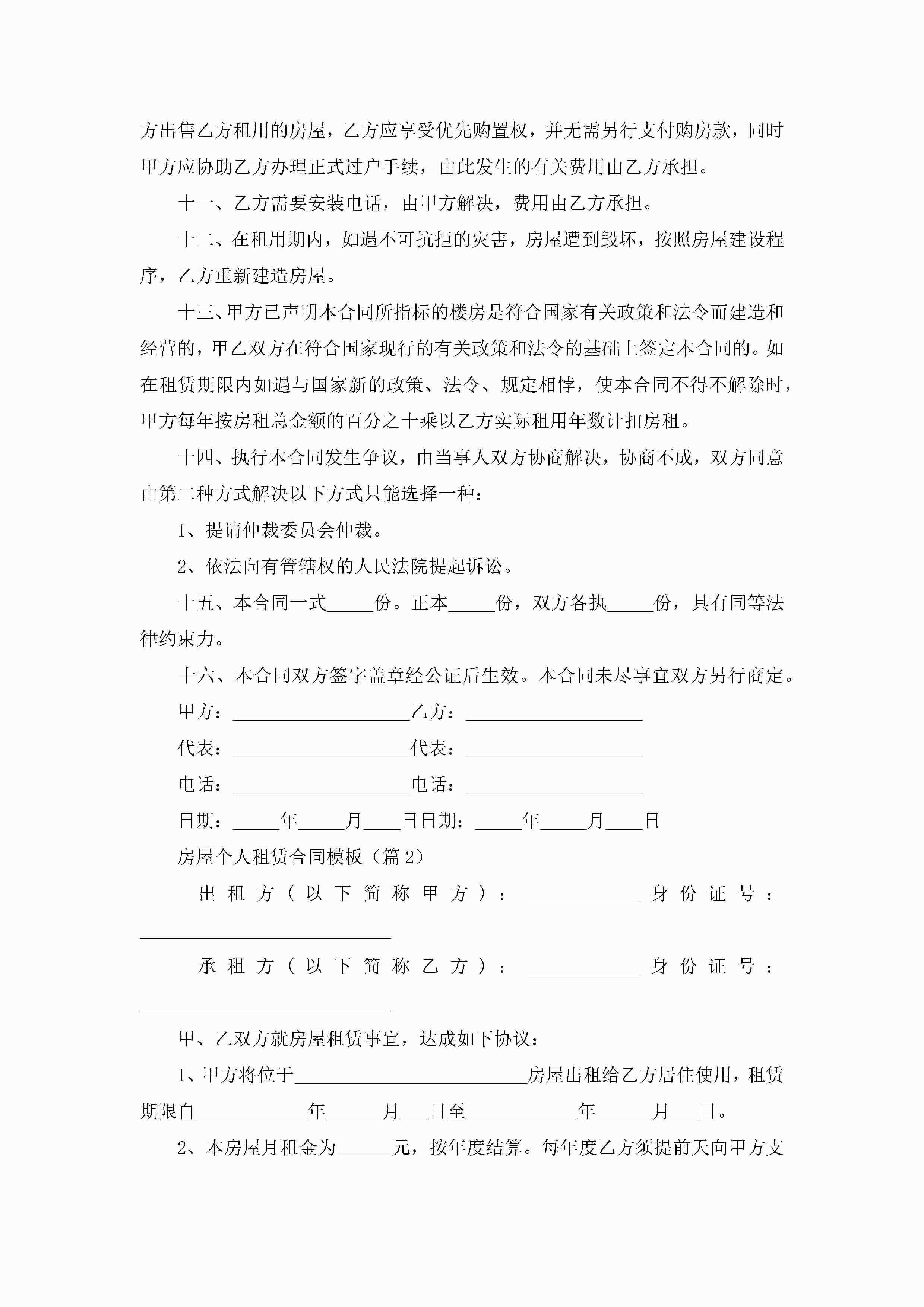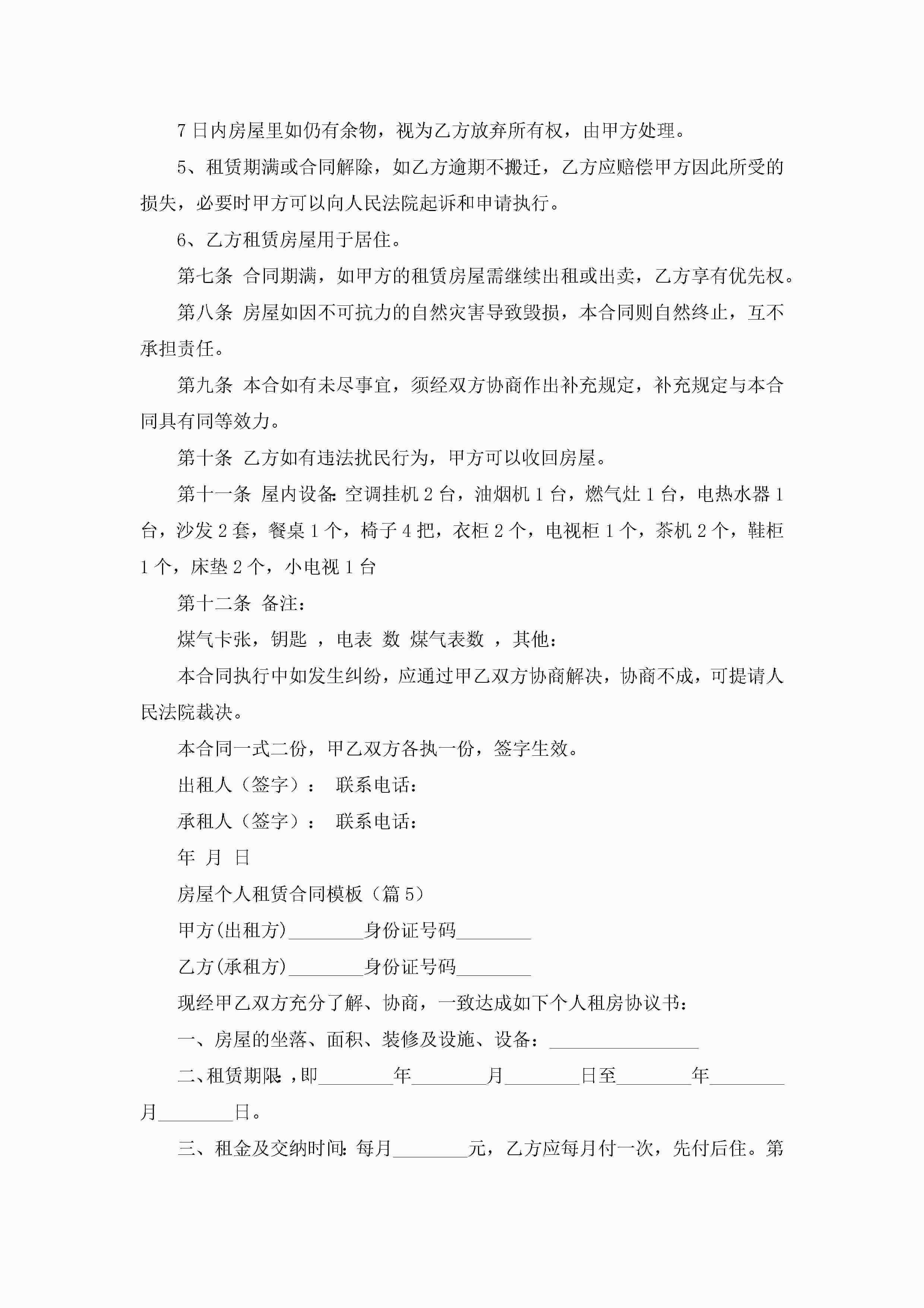 房屋个人租赁合同模板5篇jugei3月23日 01:43发布关注198 房屋个人租赁合同模板5篇此内容为付费资源,请付费后查看¥10.9 单篇文档限时特惠¥15个人会员开通企业会员开通立即下载无需登陆!可直接快捷下载单个模板付费资源© 版权声明THE ENDWord模板# 实用文档# 合同模板# 租赁合同# 房屋个人租赁合同模板 如有问题,可点击最底部“联系我们”联系客服 分享QQ空间微博QQ好友海报分享复制链接收藏