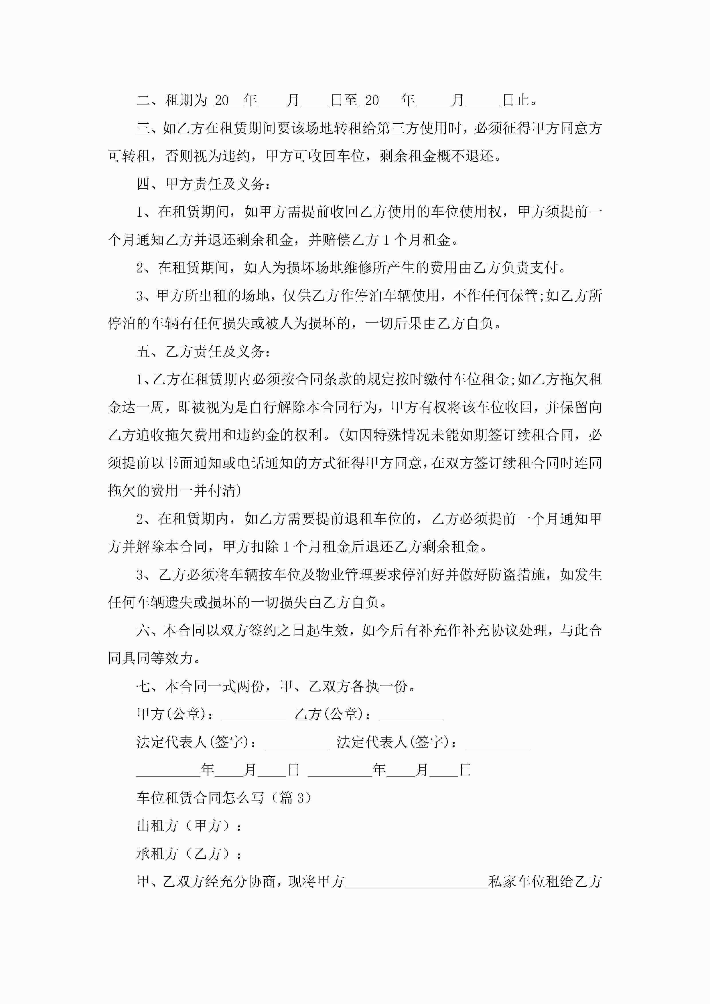 车位租赁合同怎么写5篇jugei3月23日 01:43发布关注226 车位租赁合同怎么写5篇此内容为付费资源,请付费后查看¥10.9 单篇文档限时特惠¥15个人会员开通企业会员开通立即下载无需登陆!可直接快捷下载单个模板付费资源© 版权声明THE ENDWord模板# 实用文档# 合同模板# 租赁合同# 车位租赁合同怎么写 如有问题,可点击最底部“联系我们”联系客服 分享QQ空间微博QQ好友海报分享复制链接收藏