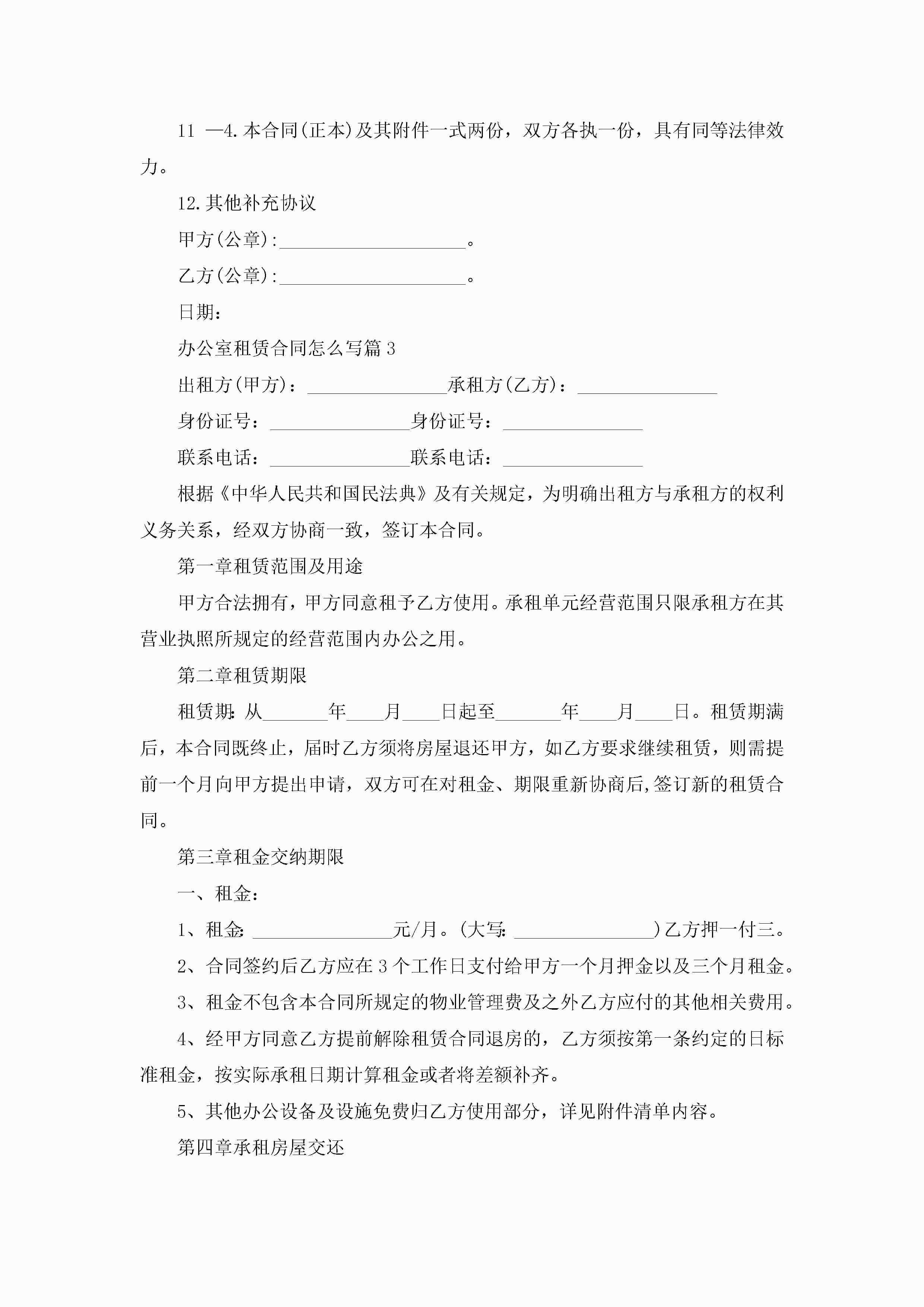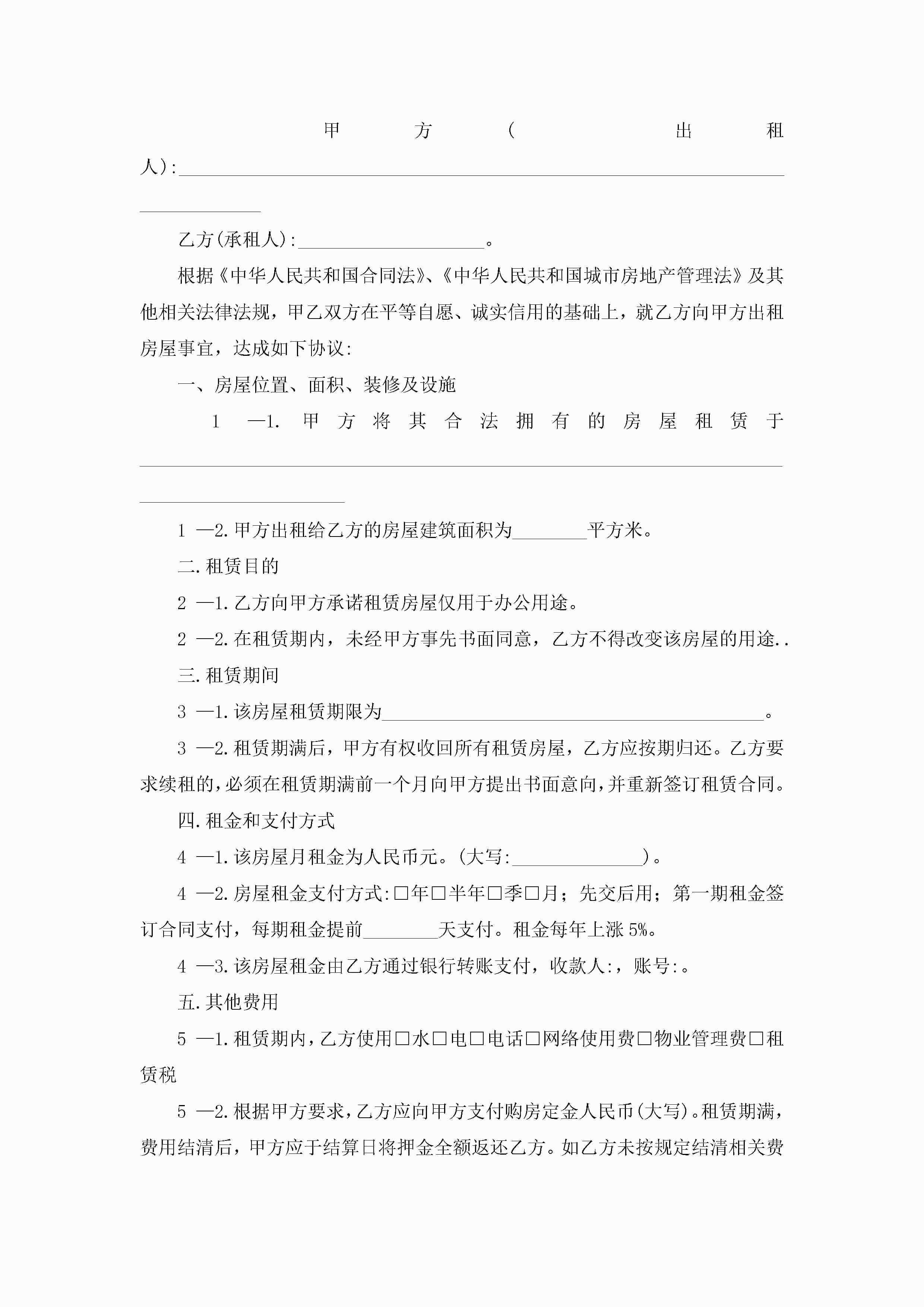 办公室租赁合同怎么写5篇jugei3月23日 01:43发布关注204 办公室租赁合同怎么写5篇此内容为付费资源,请付费后查看¥10.9 单篇文档限时特惠¥15个人会员开通企业会员开通立即下载无需登陆!可直接快捷下载单个模板付费资源© 版权声明THE ENDWord模板# 实用文档# 合同模板# 租赁合同# 办公室租赁合同怎么写 如有问题,可点击最底部“联系我们”联系客服 分享QQ空间微博QQ好友海报分享复制链接收藏