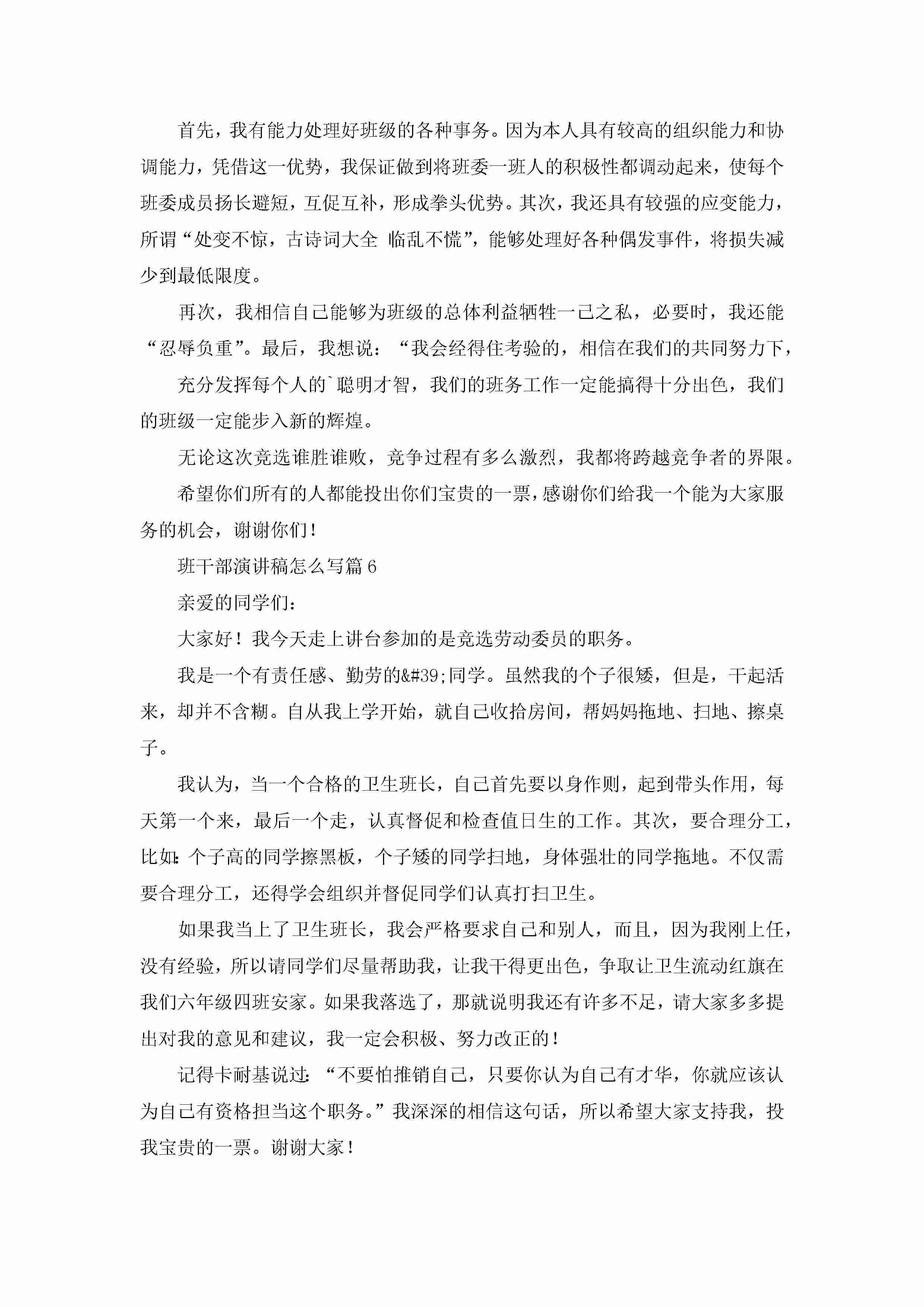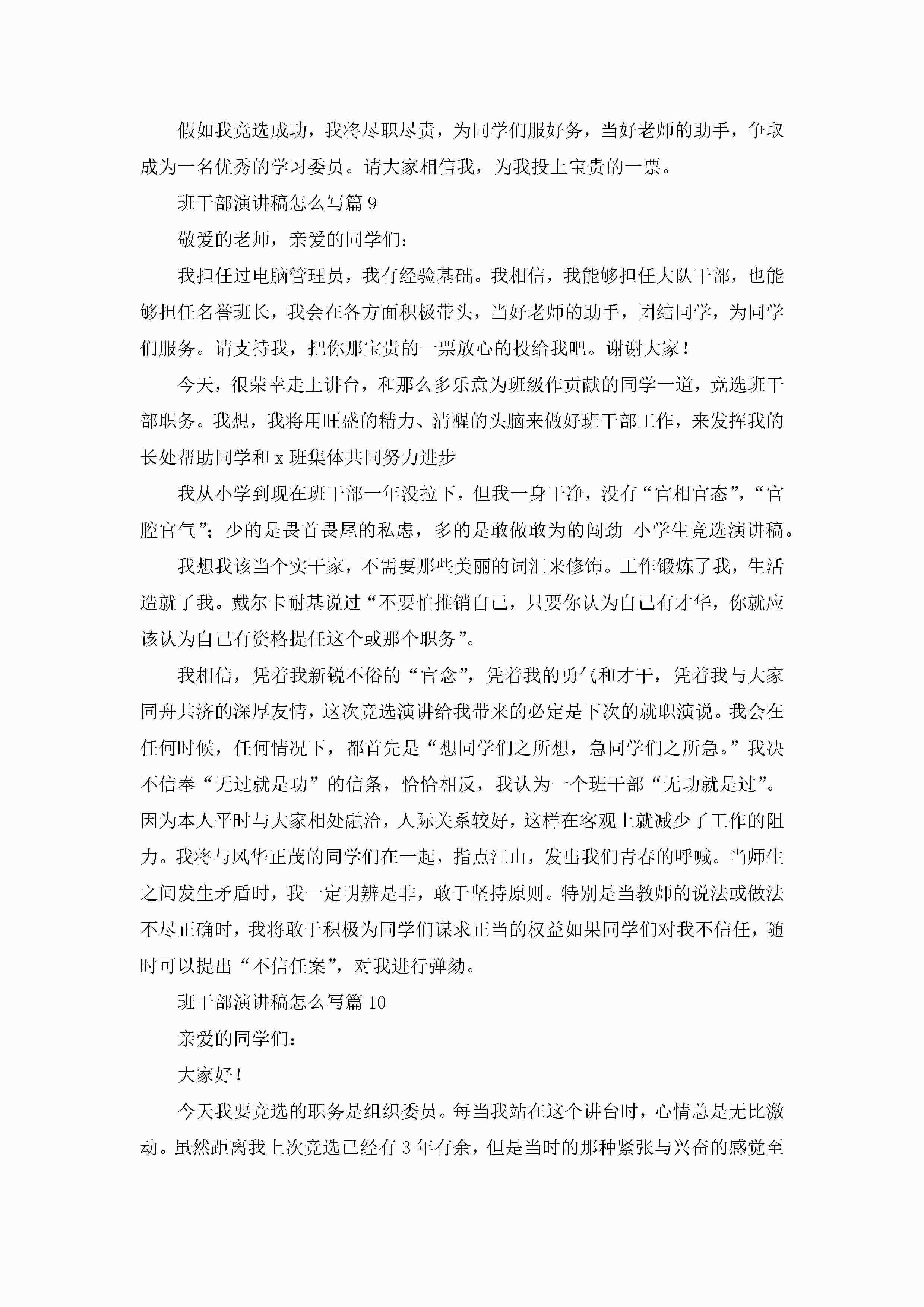 班干部演讲稿怎么写12篇(精选)jugei3月23日 01:43发布关注201 班干部演讲稿怎么写12篇(精选)此内容为付费资源,请付费后查看¥10.9 单篇文档限时特惠¥15个人会员开通企业会员开通立即下载无需登陆!可直接快捷下载单个模板付费资源© 版权声明THE ENDWord模板# 实用文档# 演讲稿# 经典演讲稿# 实用写作# 班干部演讲稿怎么写12篇 如有问题,可点击最底部“联系我们”联系客服 分享QQ空间微博QQ好友海报分享复制链接收藏