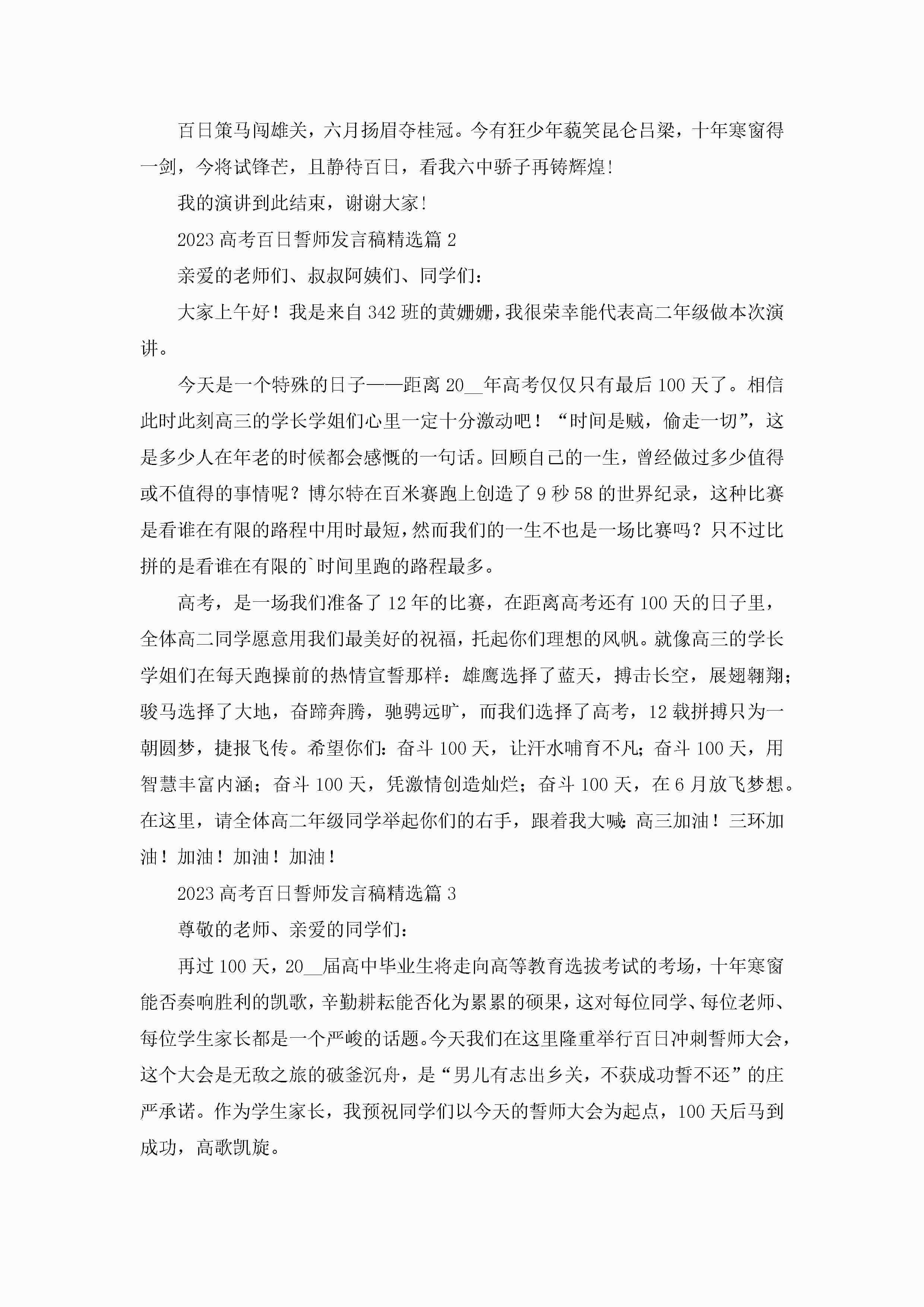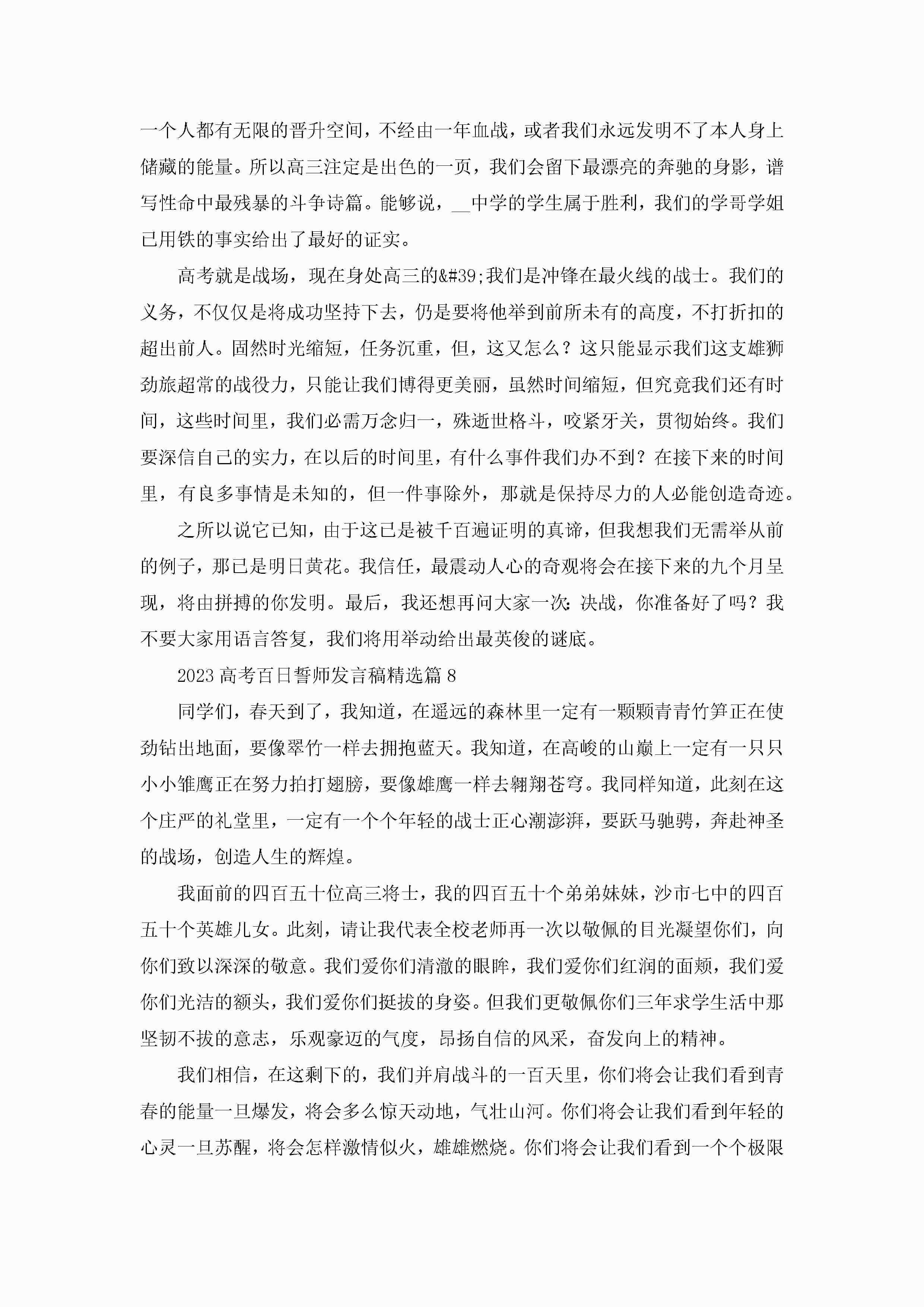 2023高考百日誓师发言稿(10篇精选)jugei3月23日 01:43发布关注210 2023高考百日誓师发言稿(10篇精选)此内容为付费资源,请付费后查看¥10.9 单篇文档限时特惠¥15个人会员开通企业会员开通立即下载无需登陆!可直接快捷下载单个模板付费资源© 版权声明THE ENDWord模板# 实用文档# 演讲稿# 经典演讲稿# 实用写作# 2023高考百日誓师发言稿10篇 如有问题,可点击最底部“联系我们”联系客服 分享QQ空间微博QQ好友海报分享复制链接收藏