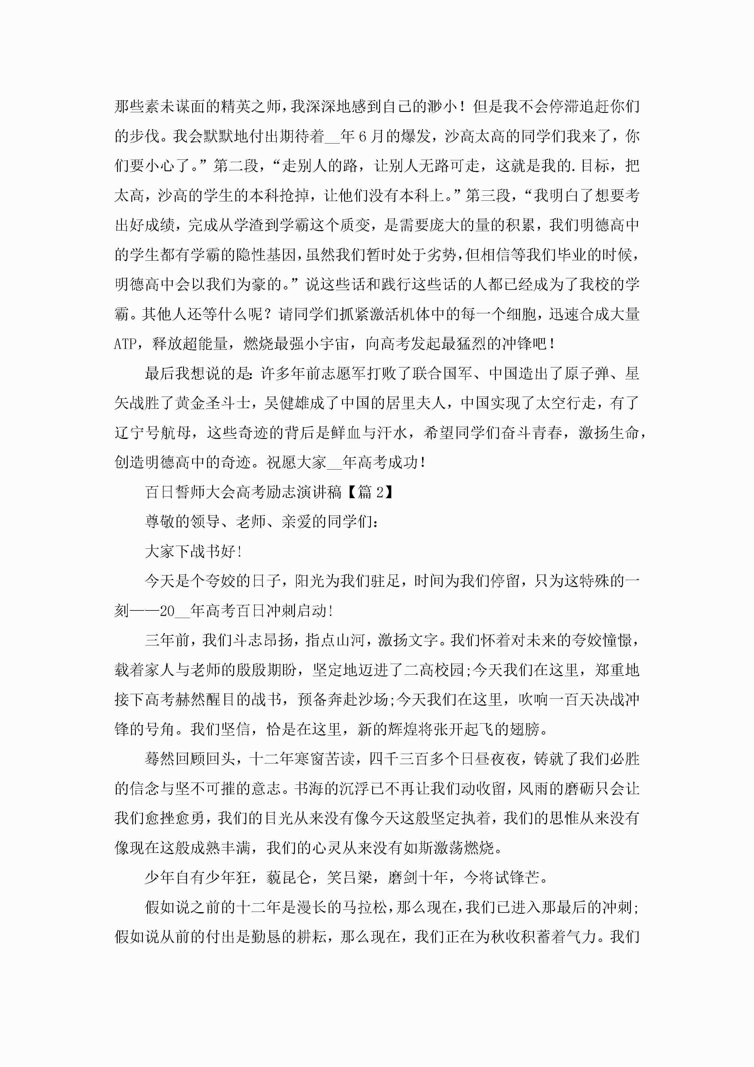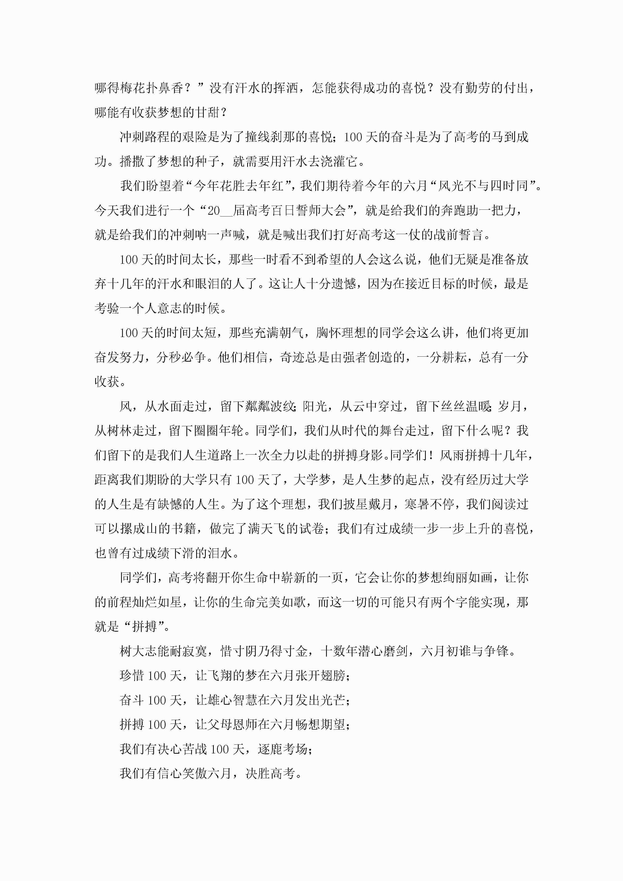 百日誓师大会高考励志演讲稿【10篇精选】jugei3月23日 01:43发布关注214 百日誓师大会高考励志演讲稿【10篇精选】此内容为付费资源,请付费后查看¥10.9 单篇文档限时特惠¥15个人会员开通企业会员开通立即下载无需登陆!可直接快捷下载单个模板付费资源© 版权声明THE ENDWord模板# 实用文档# 演讲稿# 经典演讲稿# 实用写作# 百日誓师大会高考励志演讲稿10篇 如有问题,可点击最底部“联系我们”联系客服 分享QQ空间微博QQ好友海报分享复制链接收藏