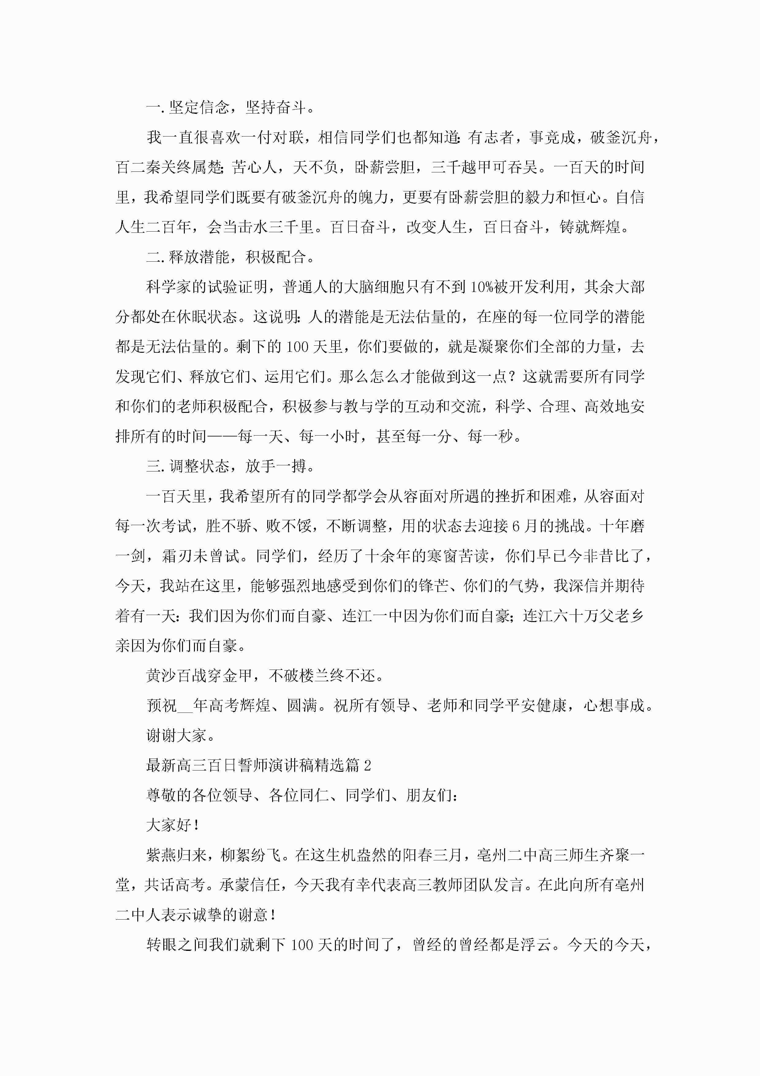 最新高三百日誓师演讲稿(10篇)jugei3月23日 01:43发布关注208 最新高三百日誓师演讲稿(10篇)此内容为付费资源,请付费后查看¥10.9 单篇文档限时特惠¥15个人会员开通企业会员开通立即下载无需登陆!可直接快捷下载单个模板付费资源© 版权声明THE ENDWord模板# 实用文档# 演讲稿# 经典演讲稿# 实用写作# 最新高三百日誓师演讲稿10篇 如有问题,可点击最底部“联系我们”联系客服 分享QQ空间微博QQ好友海报分享复制链接收藏