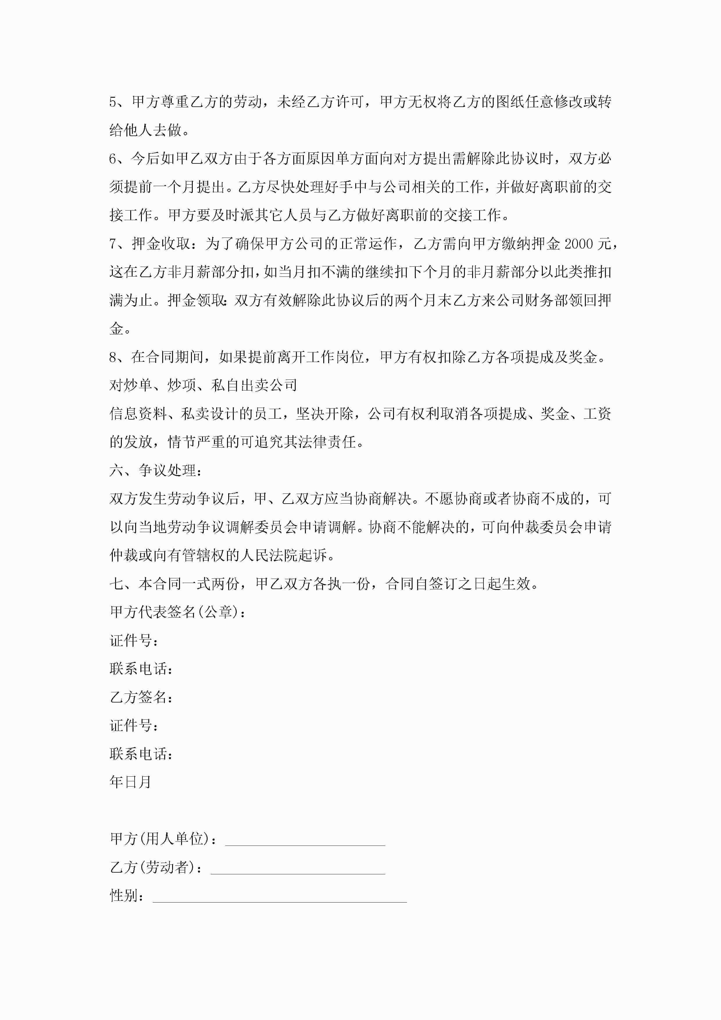 个人签订劳动合同【5篇】jugei3月23日 01:44发布关注203 个人签订劳动合同【5篇】此内容为付费资源,请付费后查看¥10.9 单篇文档限时特惠¥15个人会员开通企业会员开通立即下载无需登陆!可直接快捷下载单个模板付费资源© 版权声明THE ENDWord模板# 实用文档# 实用模板# 合同模板# 劳动合同 如有问题,可点击最底部“联系我们”联系客服 分享QQ空间微博QQ好友海报分享复制链接收藏