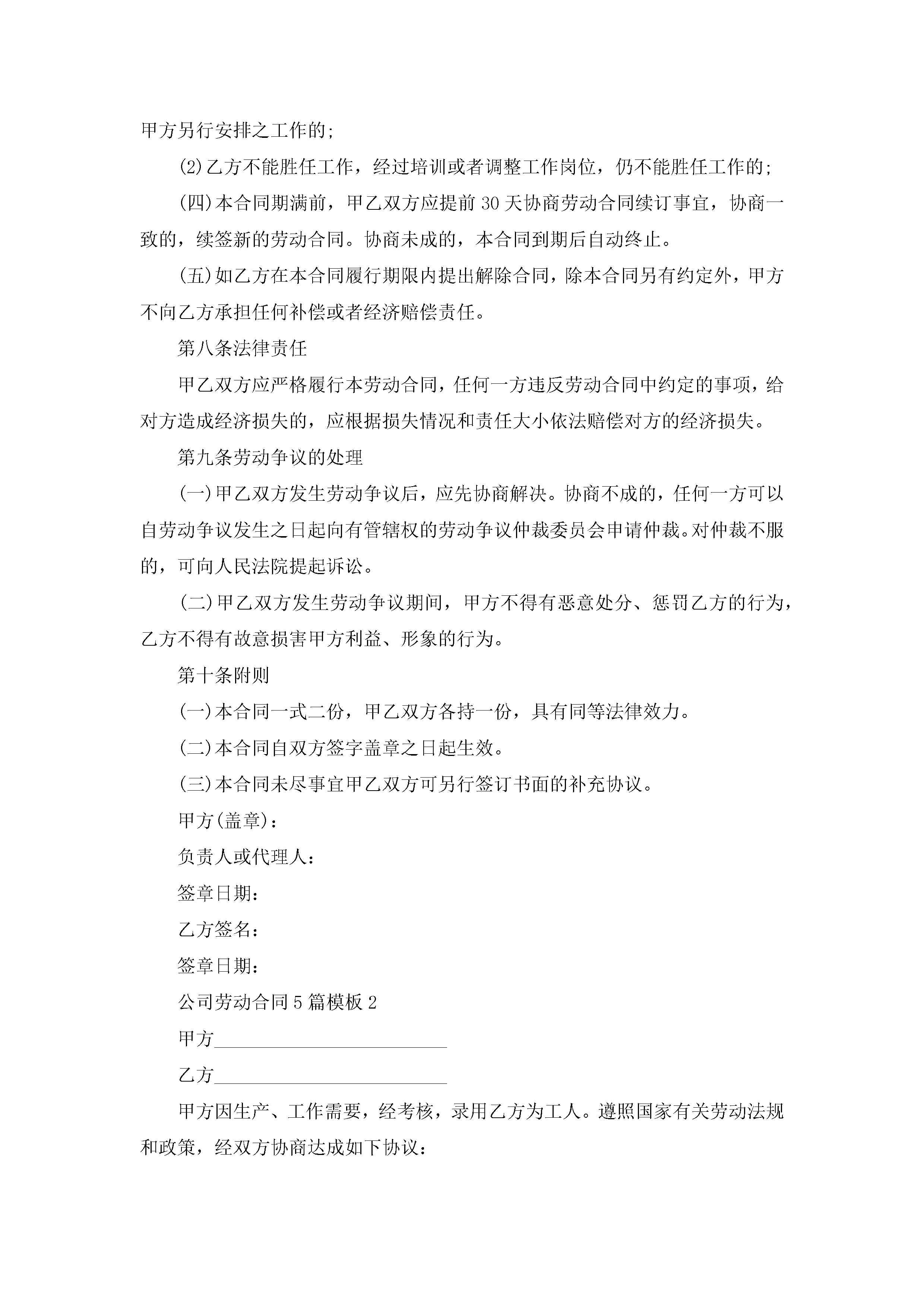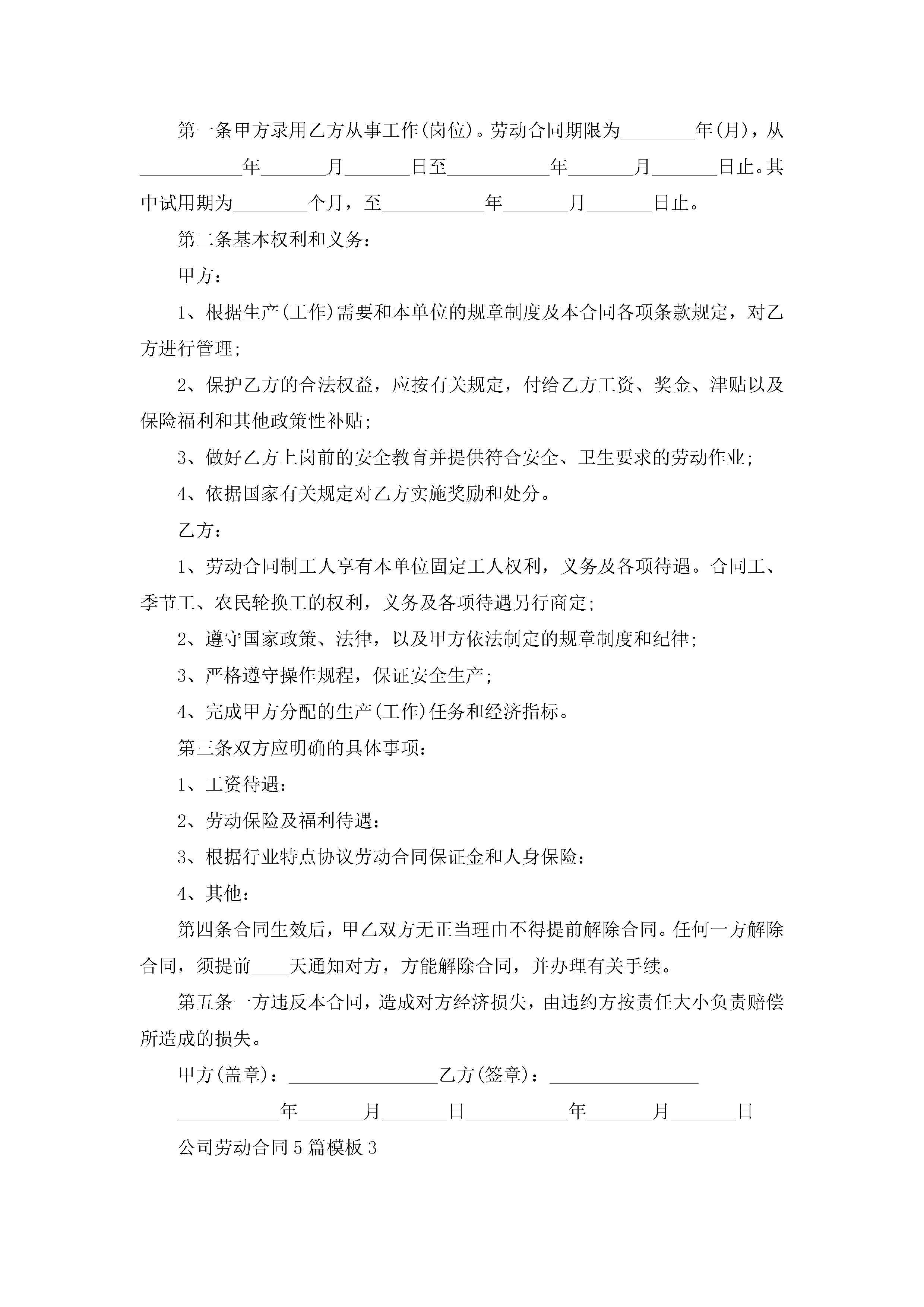 公司劳动合同范文【5篇】模板_年最新劳动合同jugei3月23日 01:44发布关注196 公司劳动合同范文【5篇】模板_年最新劳动合同此内容为付费资源,请付费后查看¥10.9 单篇文档限时特惠¥15个人会员开通企业会员开通立即下载无需登陆!可直接快捷下载单个模板付费资源© 版权声明THE ENDWord模板# 实用文档# 实用模板# 合同模板# 劳动合同 如有问题,可点击最底部“联系我们”联系客服 分享QQ空间微博QQ好友海报分享复制链接收藏