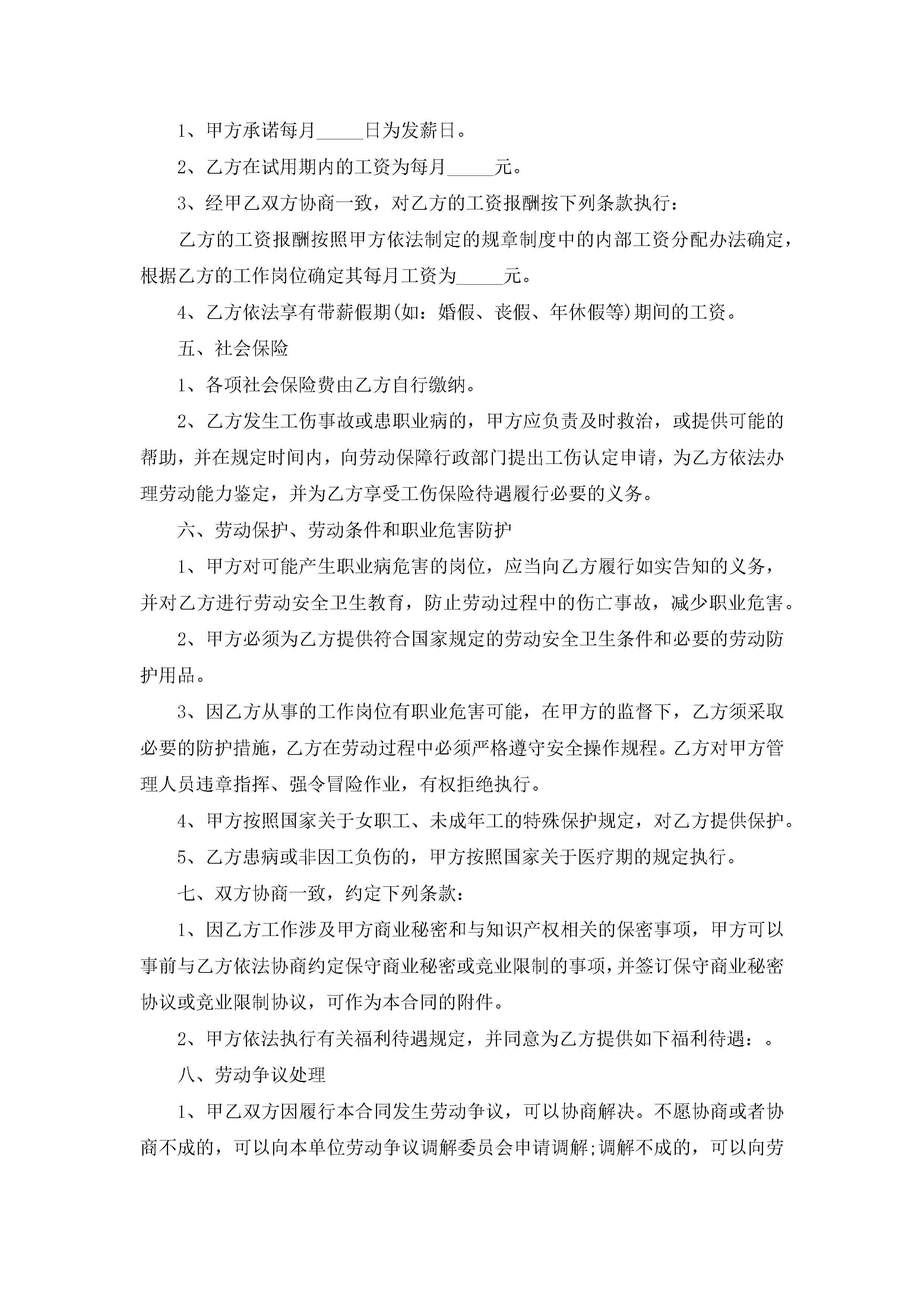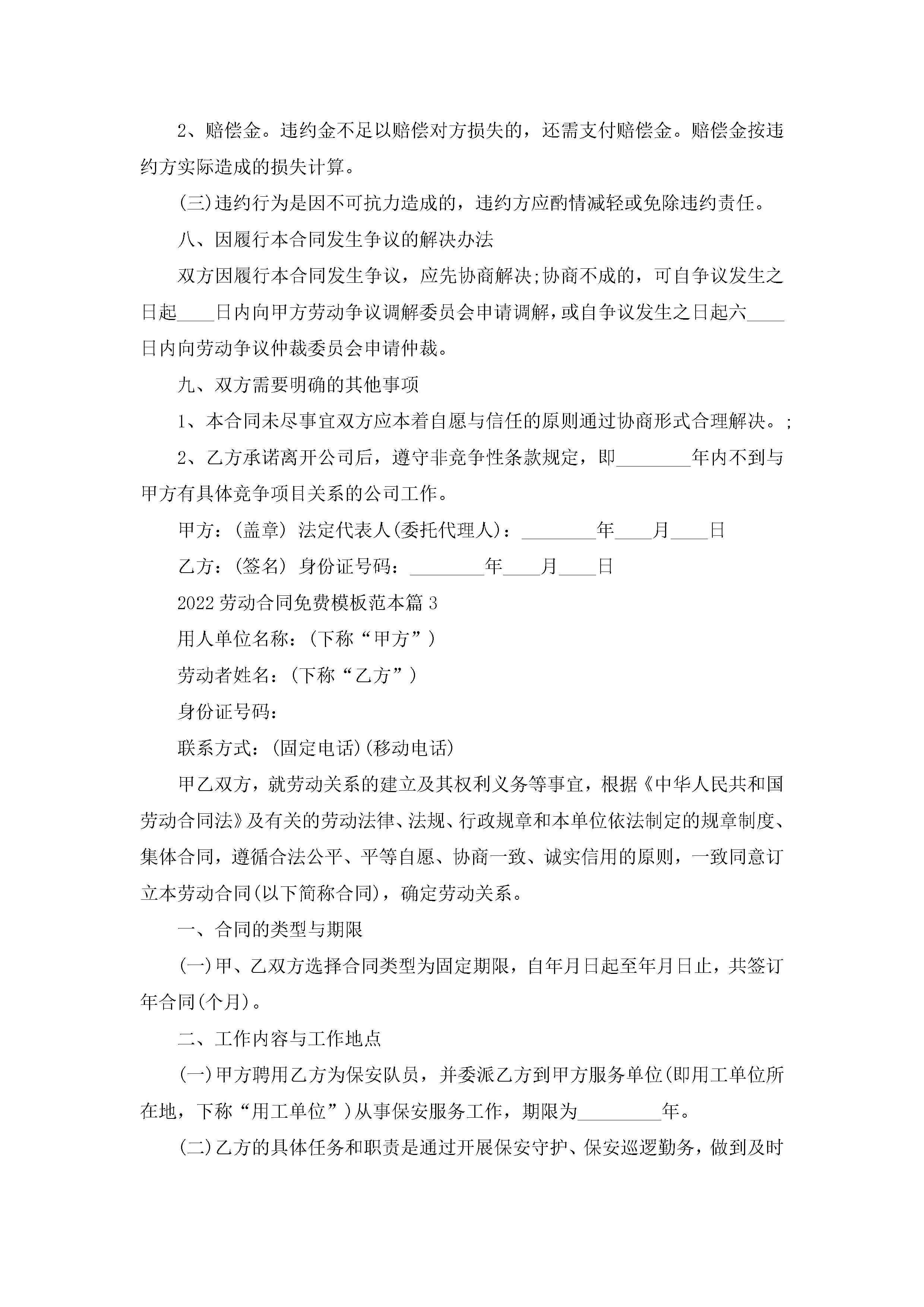 2022劳动合同免费模板范本(10篇大全)jugei3月23日 01:44发布关注208 2022劳动合同免费模板范本(10篇大全)此内容为付费资源,请付费后查看¥10.9 单篇文档限时特惠¥15个人会员开通企业会员开通立即下载无需登陆!可直接快捷下载单个模板付费资源© 版权声明THE ENDWord模板# 实用文档# 实用模板# 合同模板# 劳动合同 如有问题,可点击最底部“联系我们”联系客服 分享QQ空间微博QQ好友海报分享复制链接收藏