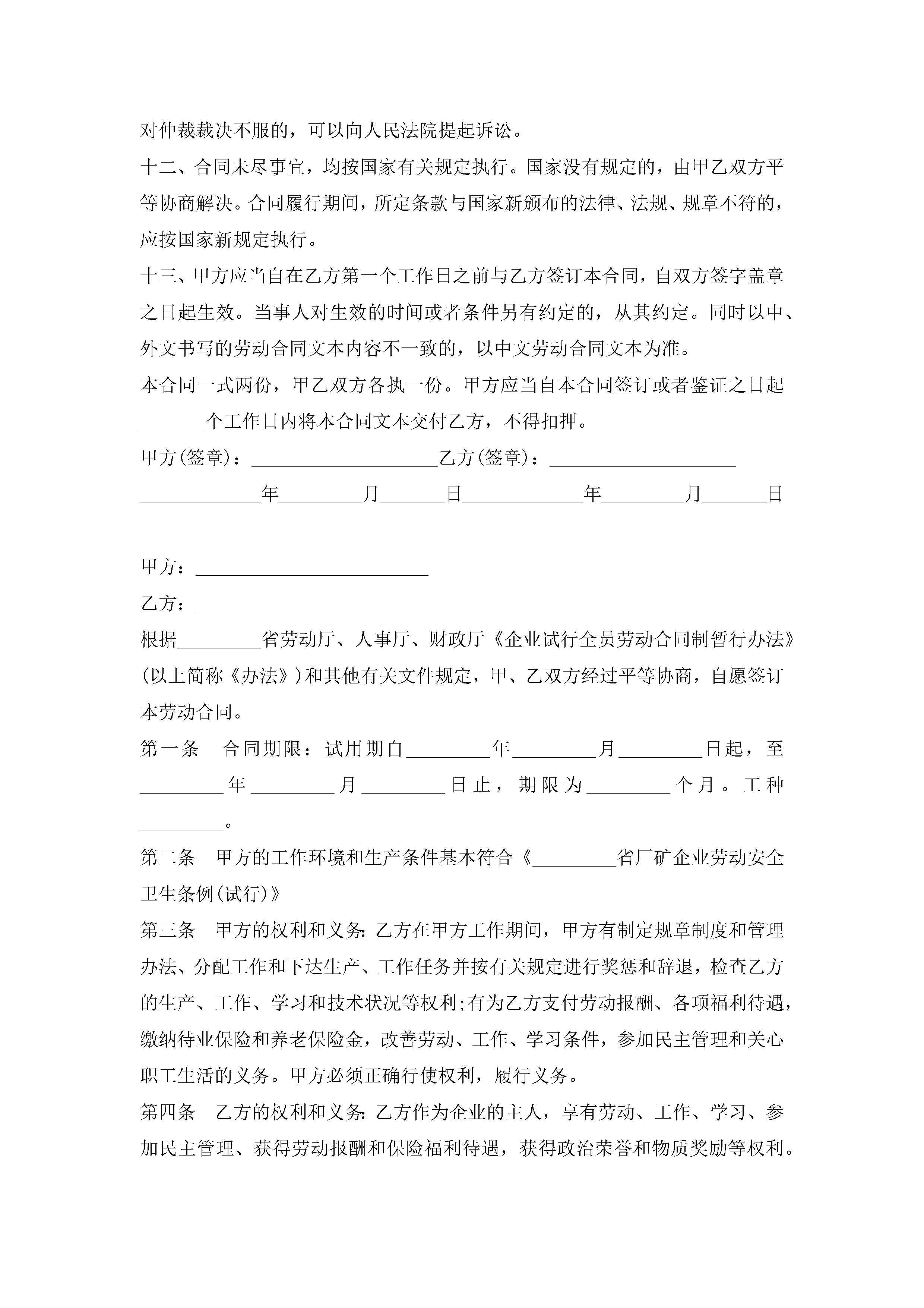 正规企业劳动合同模板最新五篇jugei3月23日 01:44发布关注231 正规企业劳动合同模板最新五篇此内容为付费资源,请付费后查看¥10.9 单篇文档限时特惠¥15个人会员开通企业会员开通立即下载无需登陆!可直接快捷下载单个模板付费资源© 版权声明THE ENDWord模板# 实用文档# 实用模板# 合同模板# 劳动合同 如有问题,可点击最底部“联系我们”联系客服 分享QQ空间微博QQ好友海报分享复制链接收藏