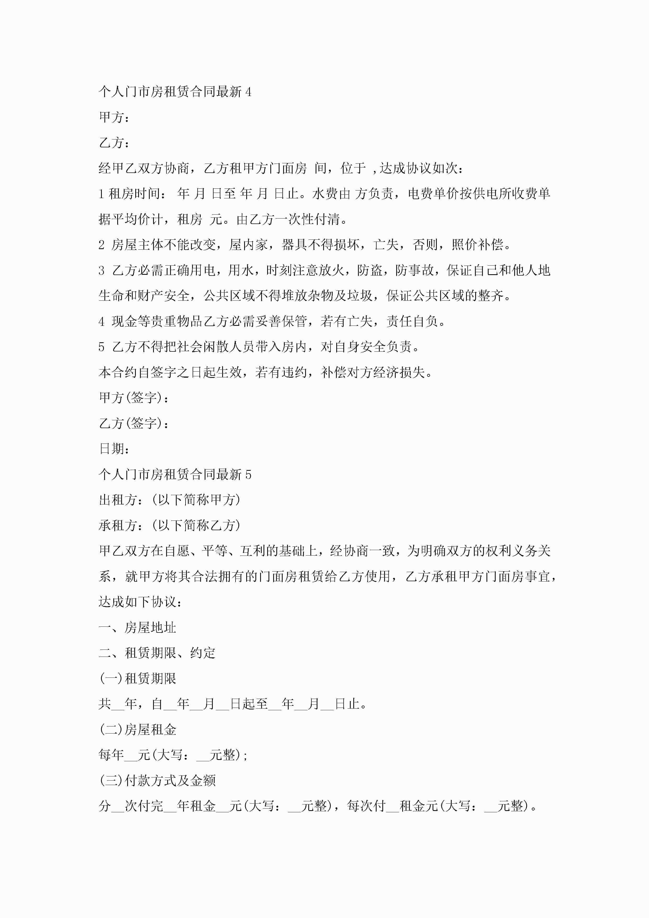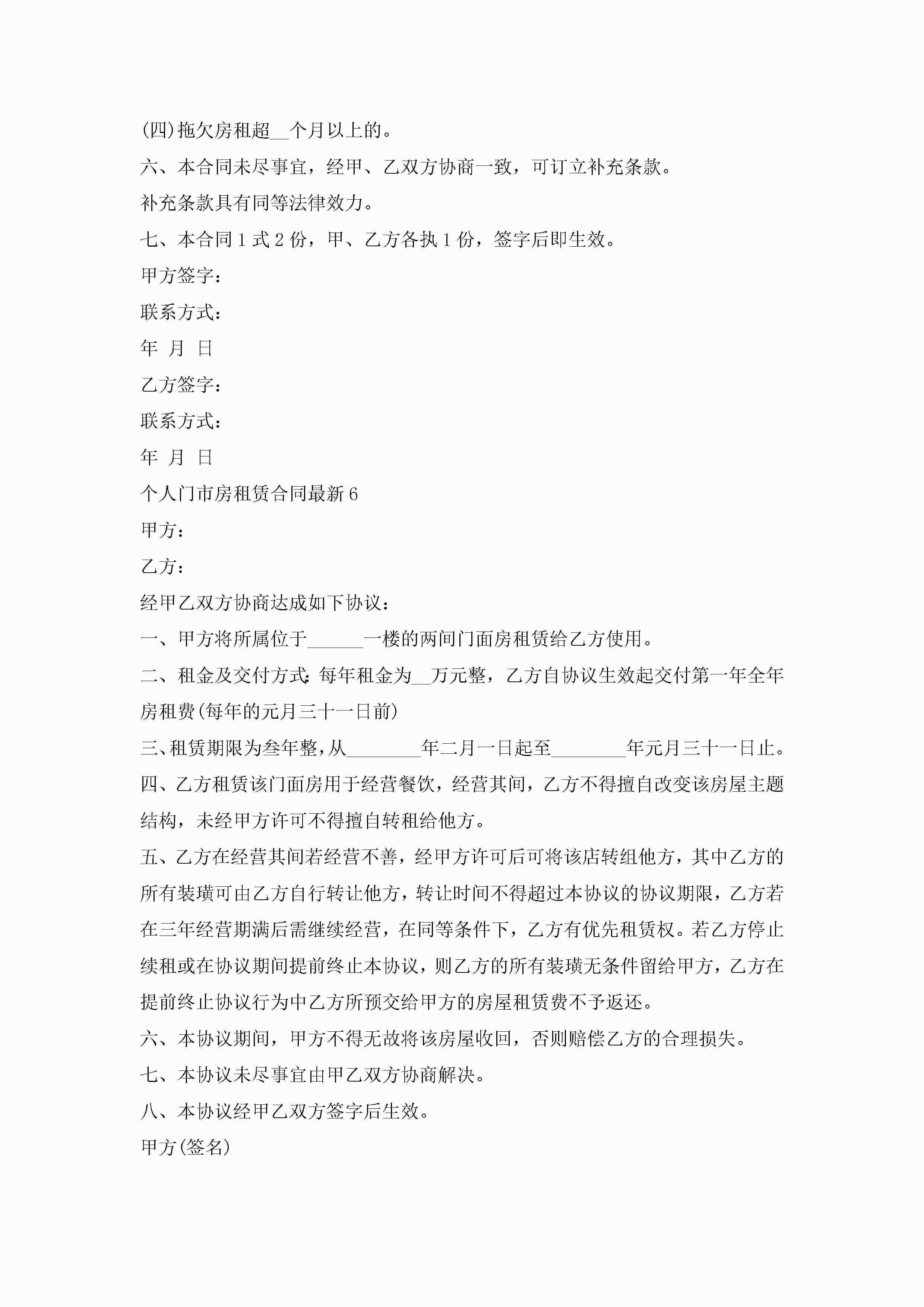 个人门市房租赁合同最新6篇jugei3月23日 01:44发布关注212 个人门市房租赁合同最新6篇此内容为付费资源,请付费后查看¥10.9 单篇文档限时特惠¥15个人会员开通企业会员开通立即下载无需登陆!可直接快捷下载单个模板付费资源© 版权声明THE ENDWord模板# 实用文档# 实用模板# 合同模板# 租赁合同 如有问题,可点击最底部“联系我们”联系客服 分享QQ空间微博QQ好友海报分享复制链接收藏