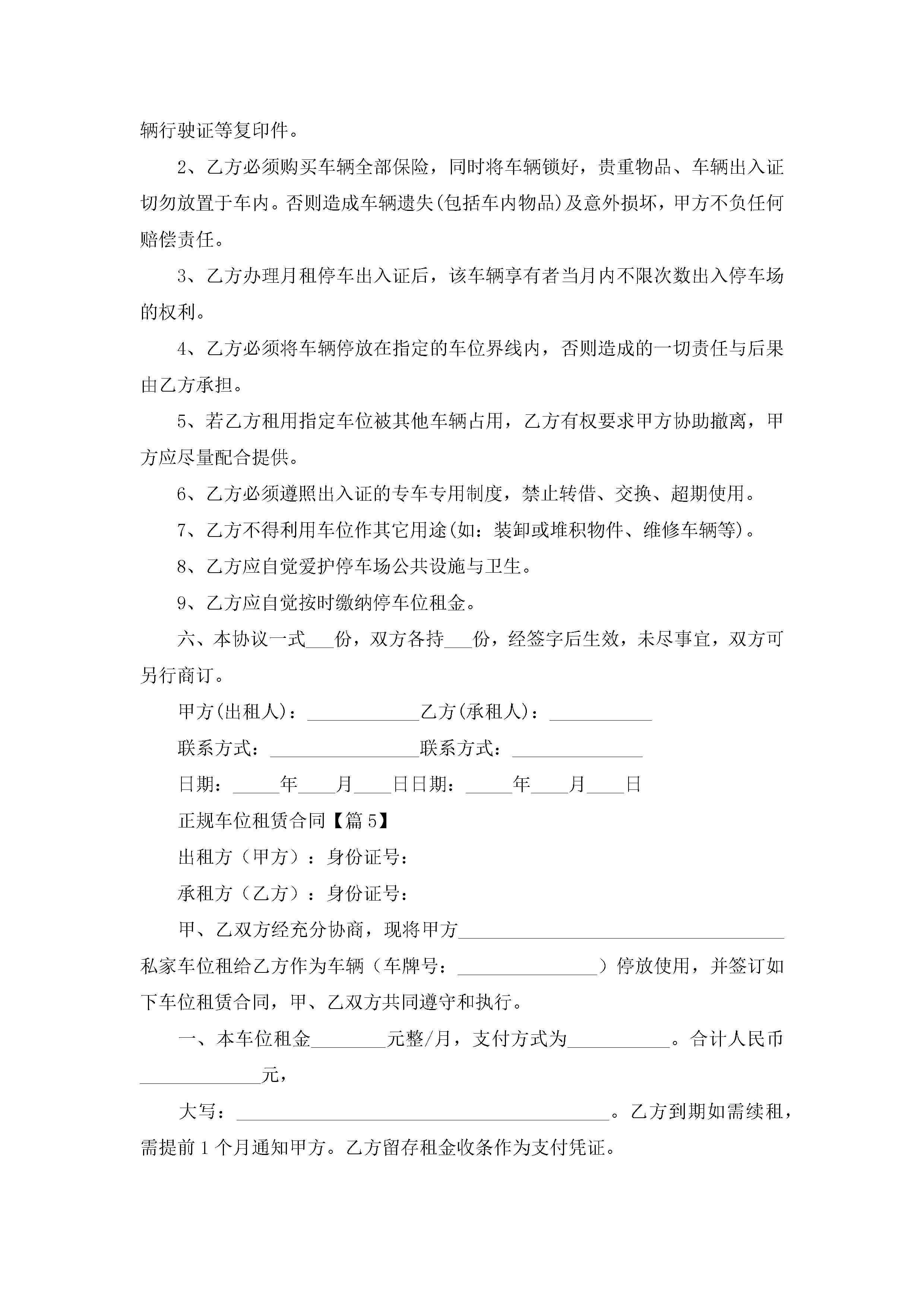 正规车位租赁合同5篇jugei3月23日 01:44发布关注192 正规车位租赁合同5篇此内容为付费资源,请付费后查看¥10.9 单篇文档限时特惠¥15个人会员开通企业会员开通立即下载无需登陆!可直接快捷下载单个模板付费资源© 版权声明THE ENDWord模板# 实用文档# 合同模板# 租赁合同# 正规车位租赁合同 如有问题,可点击最底部“联系我们”联系客服 分享QQ空间微博QQ好友海报分享复制链接收藏