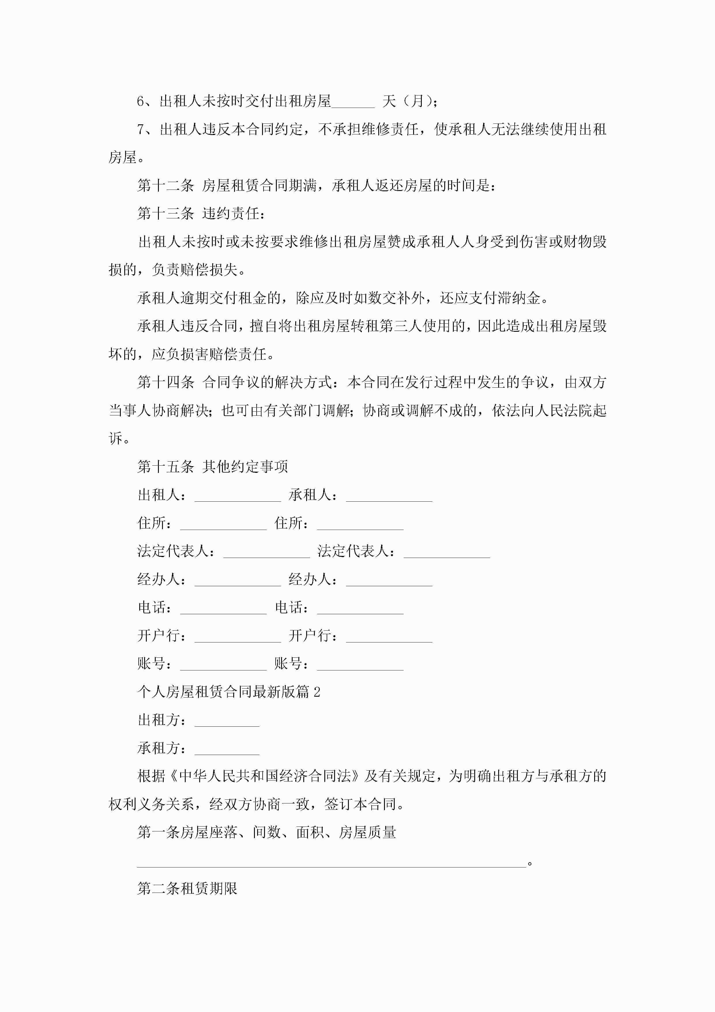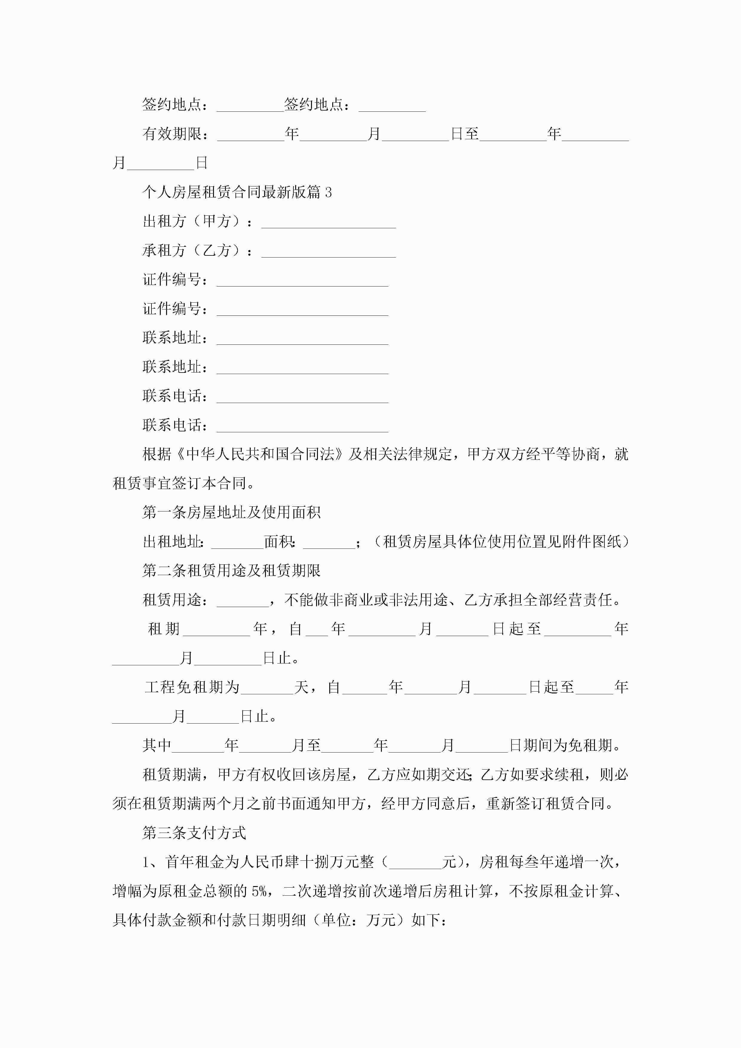 个人房屋租赁合同最新版5篇jugei3月23日 01:44发布关注221 个人房屋租赁合同最新版5篇此内容为付费资源,请付费后查看¥10.9 单篇文档限时特惠¥15个人会员开通企业会员开通立即下载无需登陆!可直接快捷下载单个模板付费资源© 版权声明THE ENDWord模板# 实用文档# 合同模板# 租赁合同# 个人房屋租赁合同最新版 如有问题,可点击最底部“联系我们”联系客服 分享QQ空间微博QQ好友海报分享复制链接收藏