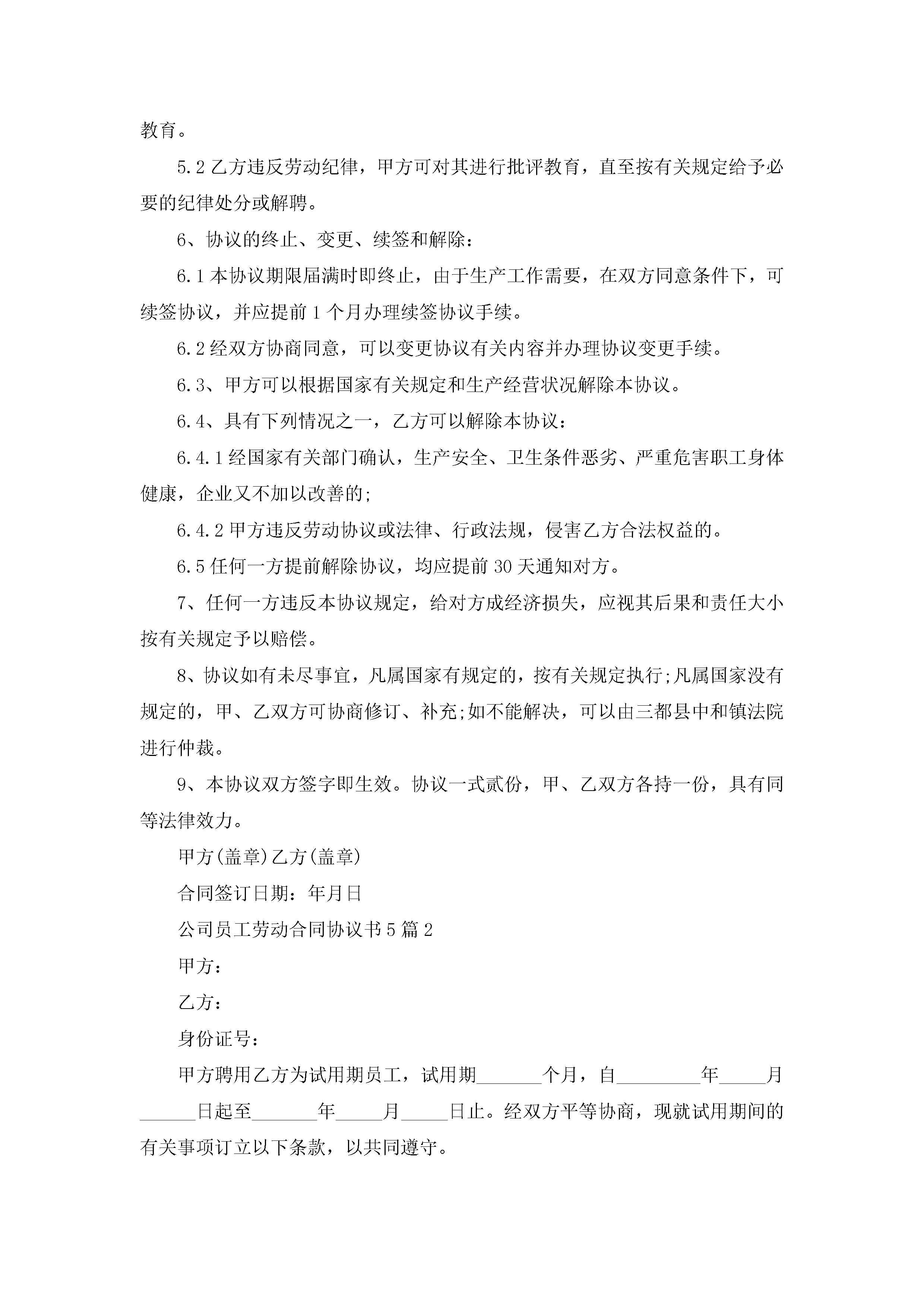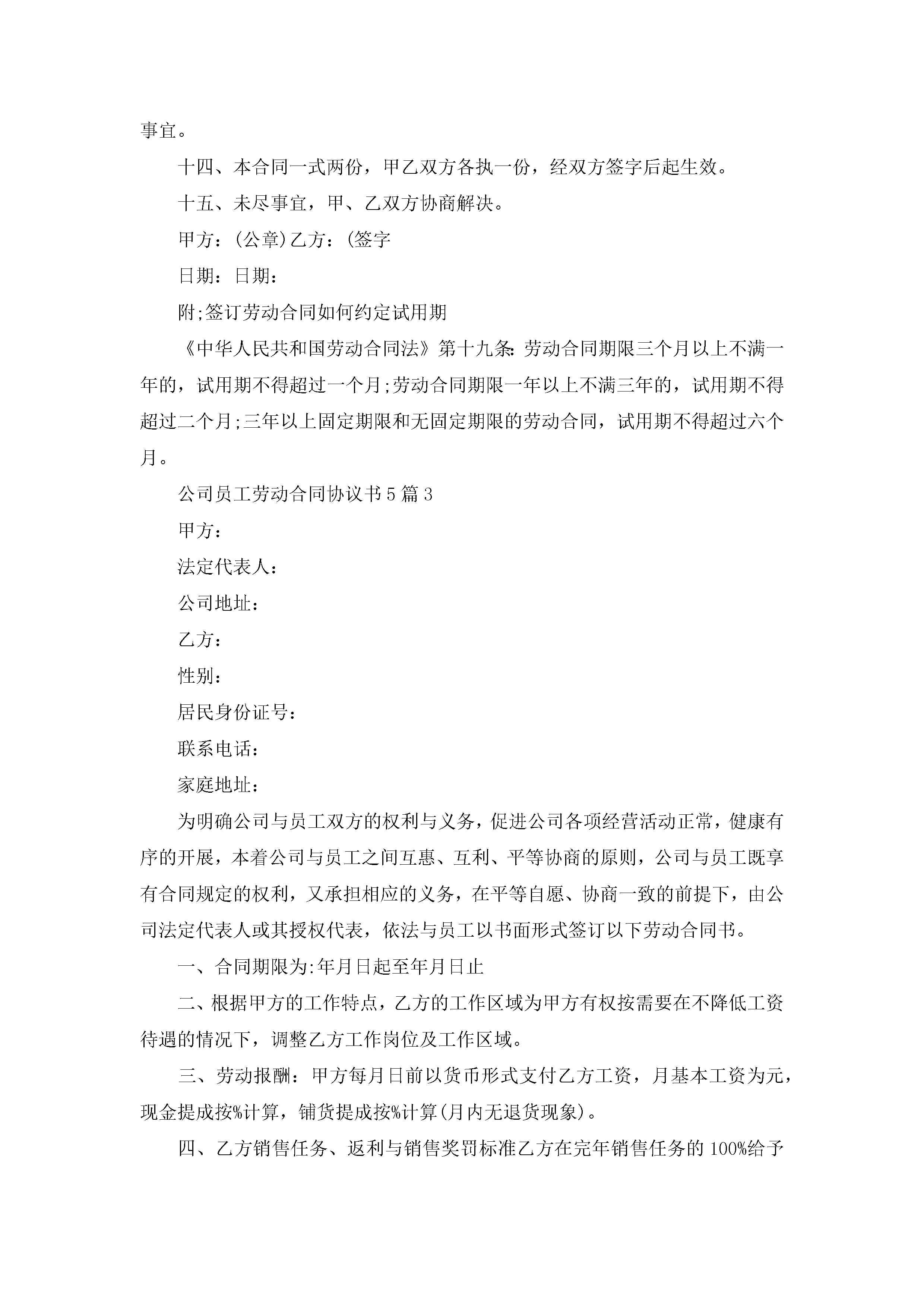 公司员工劳动合同协议书模板【5篇】_公司劳动合同范本通用版jugei3月23日 01:44发布关注225 公司员工劳动合同协议书模板【5篇】_公司劳动合同范本通用版此内容为付费资源,请付费后查看¥10.9 单篇文档限时特惠¥15个人会员开通企业会员开通立即下载无需登陆!可直接快捷下载单个模板付费资源© 版权声明THE ENDWord模板# 实用文档# 实用模板# 合同模板# 劳动合同 如有问题,可点击最底部“联系我们”联系客服 分享QQ空间微博QQ好友海报分享复制链接收藏