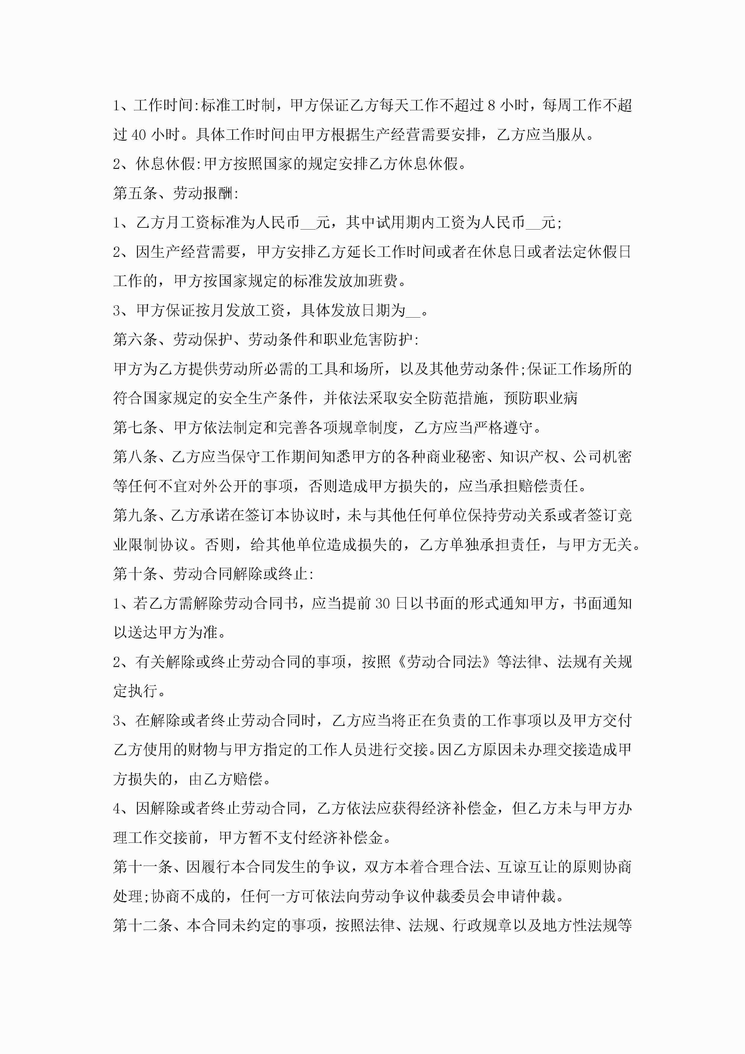 通用版的劳动合同范文jugei3月23日 01:44发布关注188 通用版的劳动合同范文此内容为付费资源,请付费后查看¥10.9 单篇文档限时特惠¥15个人会员开通企业会员开通立即下载无需登陆!可直接快捷下载单个模板付费资源© 版权声明THE ENDWord模板# 实用文档# 实用模板# 合同模板# 劳动合同 如有问题,可点击最底部“联系我们”联系客服 分享QQ空间微博QQ好友海报分享复制链接收藏