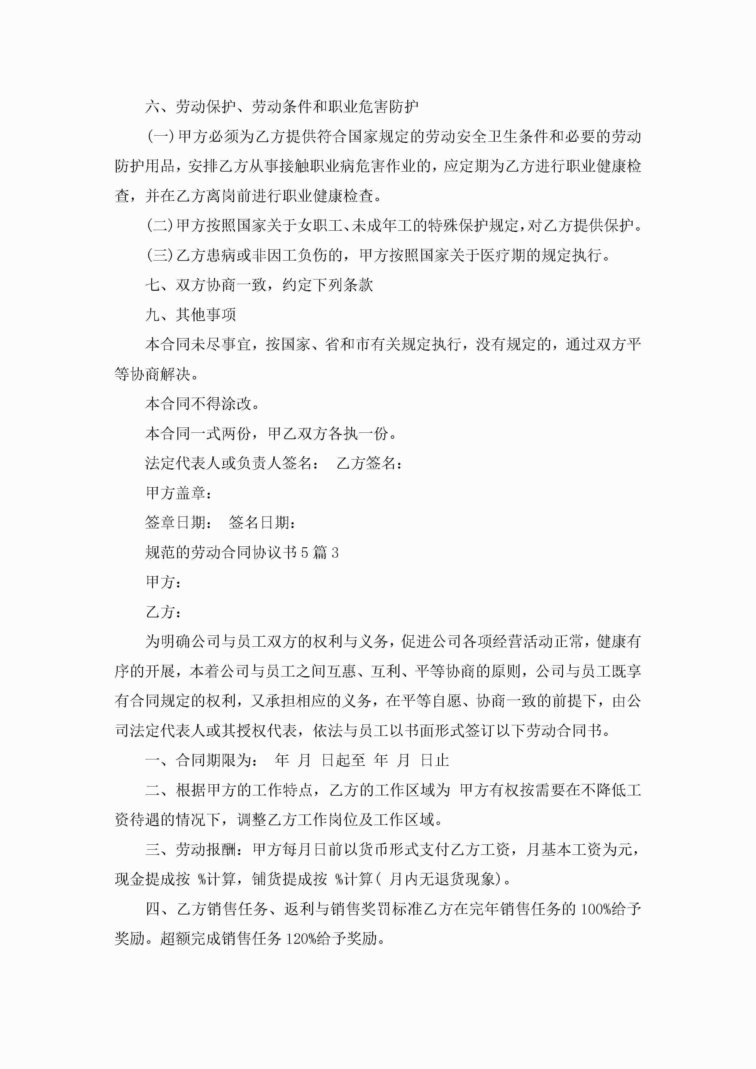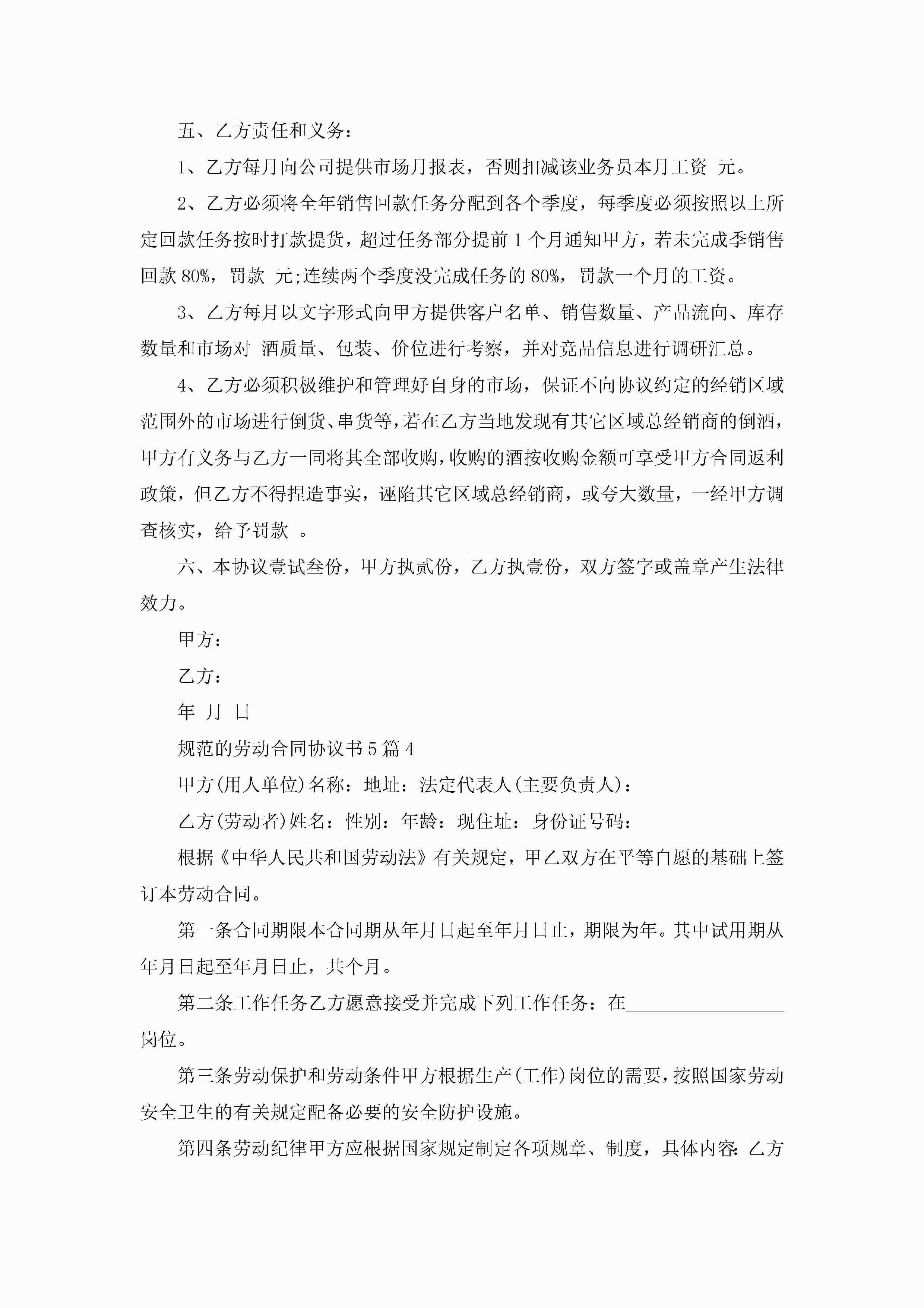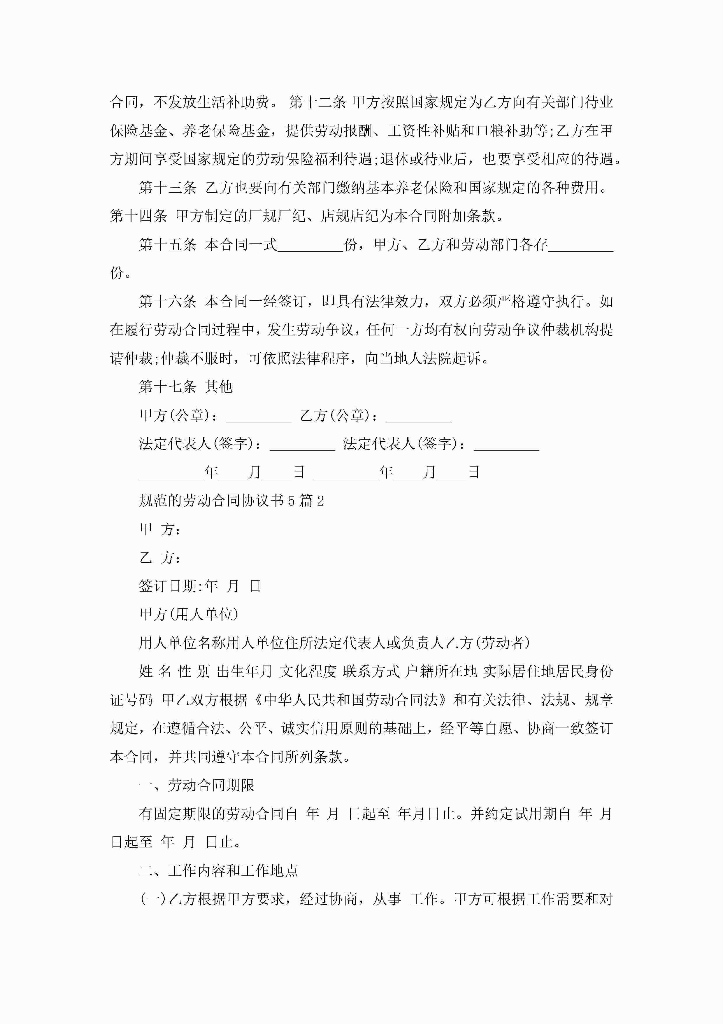 规范的劳动合同协议书模板【5篇】_年劳动合同协议书jugei3月23日 01:44发布关注251 规范的劳动合同协议书模板【5篇】_年劳动合同协议书此内容为付费资源,请付费后查看¥10.9 单篇文档限时特惠¥15个人会员开通企业会员开通立即下载无需登陆!可直接快捷下载单个模板付费资源© 版权声明THE ENDWord模板# 实用文档# 实用模板# 合同模板# 劳动合同 如有问题,可点击最底部“联系我们”联系客服 分享QQ空间微博QQ好友海报分享复制链接收藏