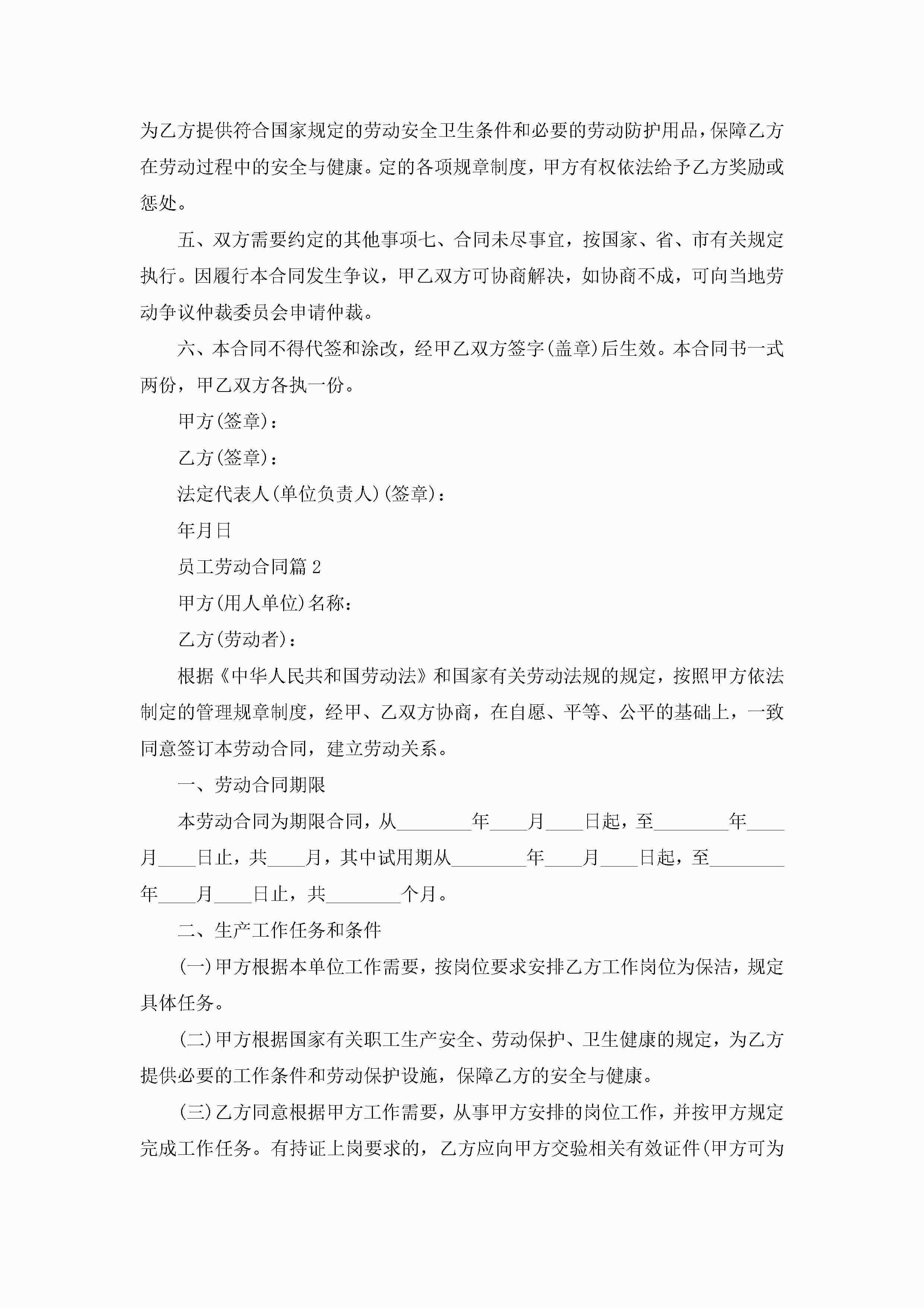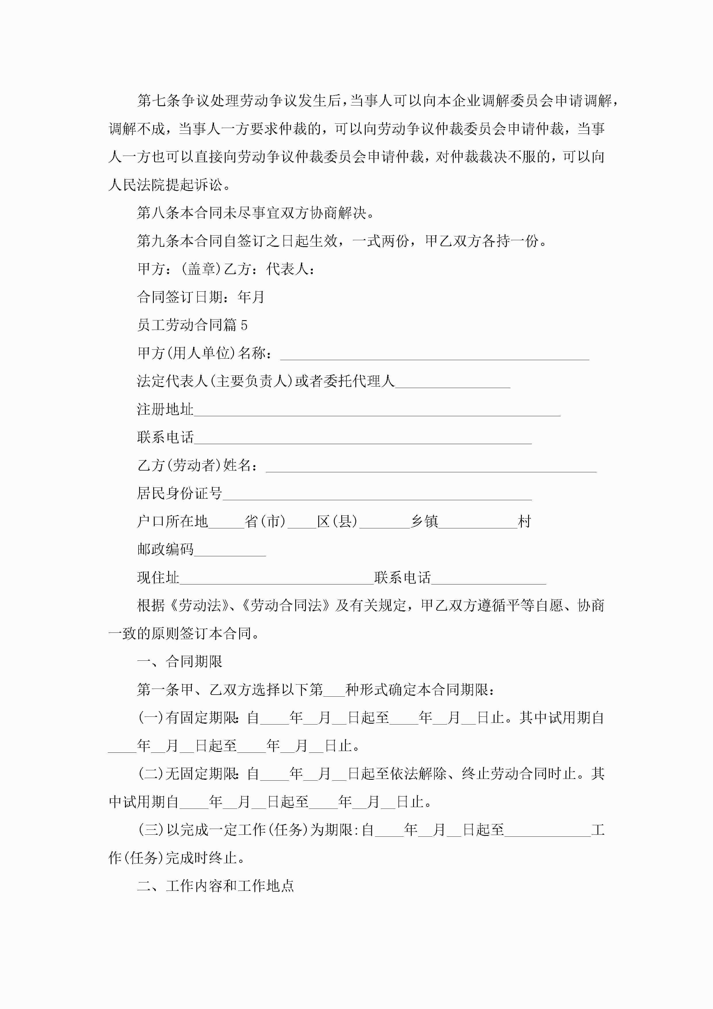 2022员工劳动合同模板【6篇】jugei3月23日 01:44发布关注228 2022员工劳动合同模板【6篇】此内容为付费资源,请付费后查看¥10.9 单篇文档限时特惠¥15个人会员开通企业会员开通立即下载无需登陆!可直接快捷下载单个模板付费资源© 版权声明THE ENDWord模板# 实用文档# 实用模板# 合同模板# 劳动合同 如有问题,可点击最底部“联系我们”联系客服 分享QQ空间微博QQ好友海报分享复制链接收藏