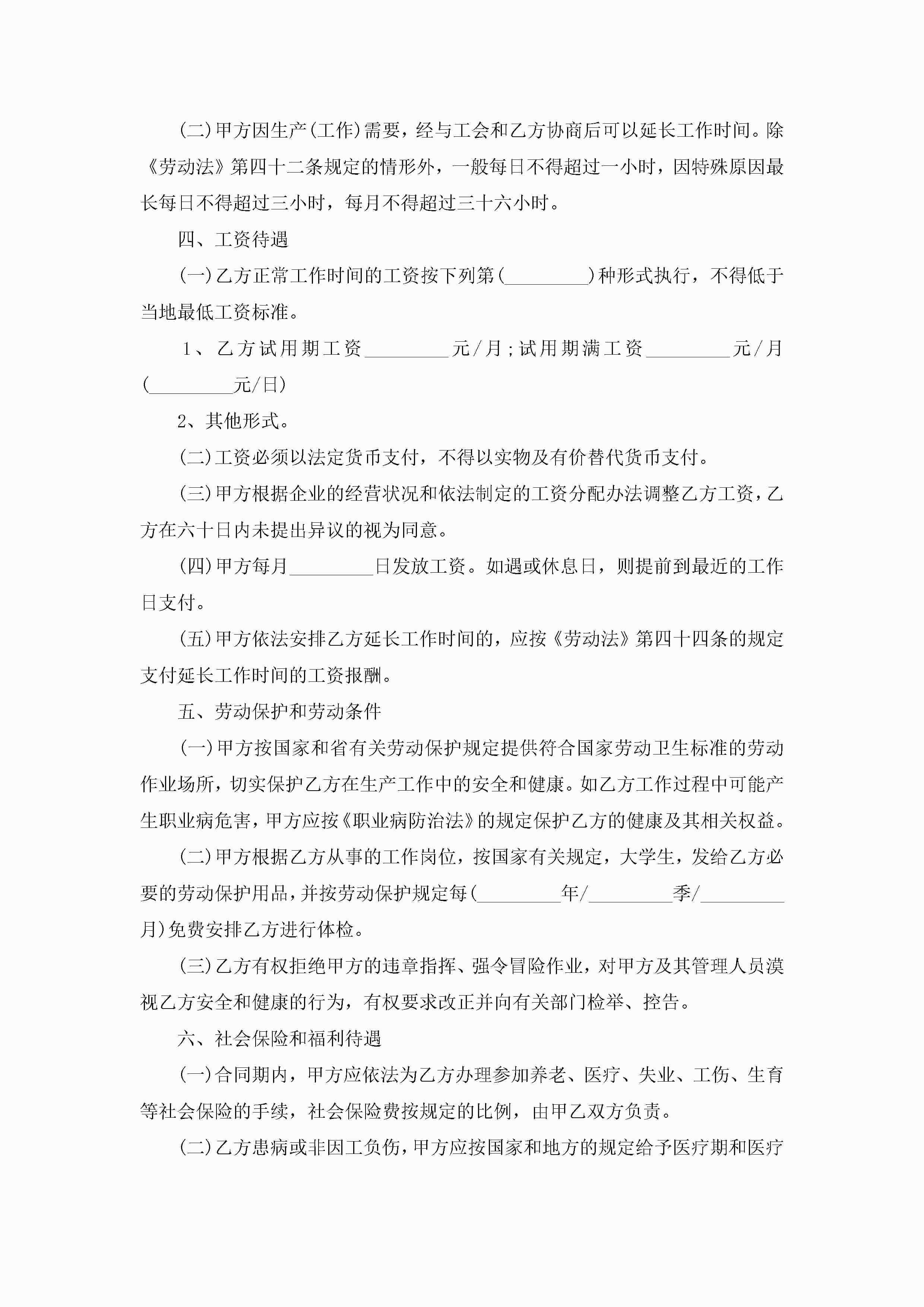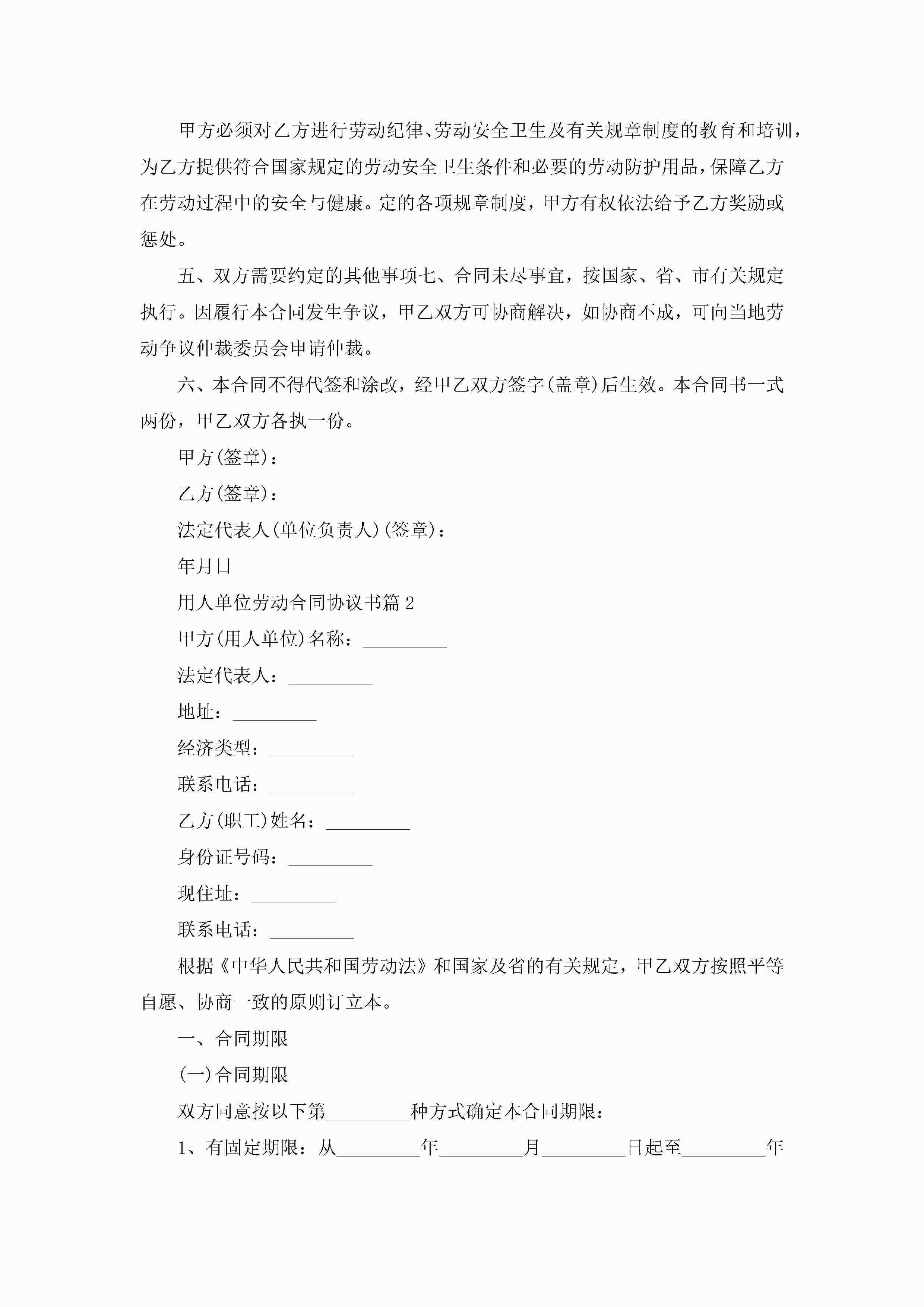 用人单位劳动合同协议书范文_2022年劳动合同协议书6篇jugei3月23日 01:44发布关注208 用人单位劳动合同协议书范文_2022年劳动合同协议书6篇此内容为付费资源,请付费后查看¥10.9 单篇文档限时特惠¥15个人会员开通企业会员开通立即下载无需登陆!可直接快捷下载单个模板付费资源© 版权声明THE ENDWord模板# 实用文档# 实用模板# 合同模板# 劳动合同 如有问题,可点击最底部“联系我们”联系客服 分享QQ空间微博QQ好友海报分享复制链接收藏