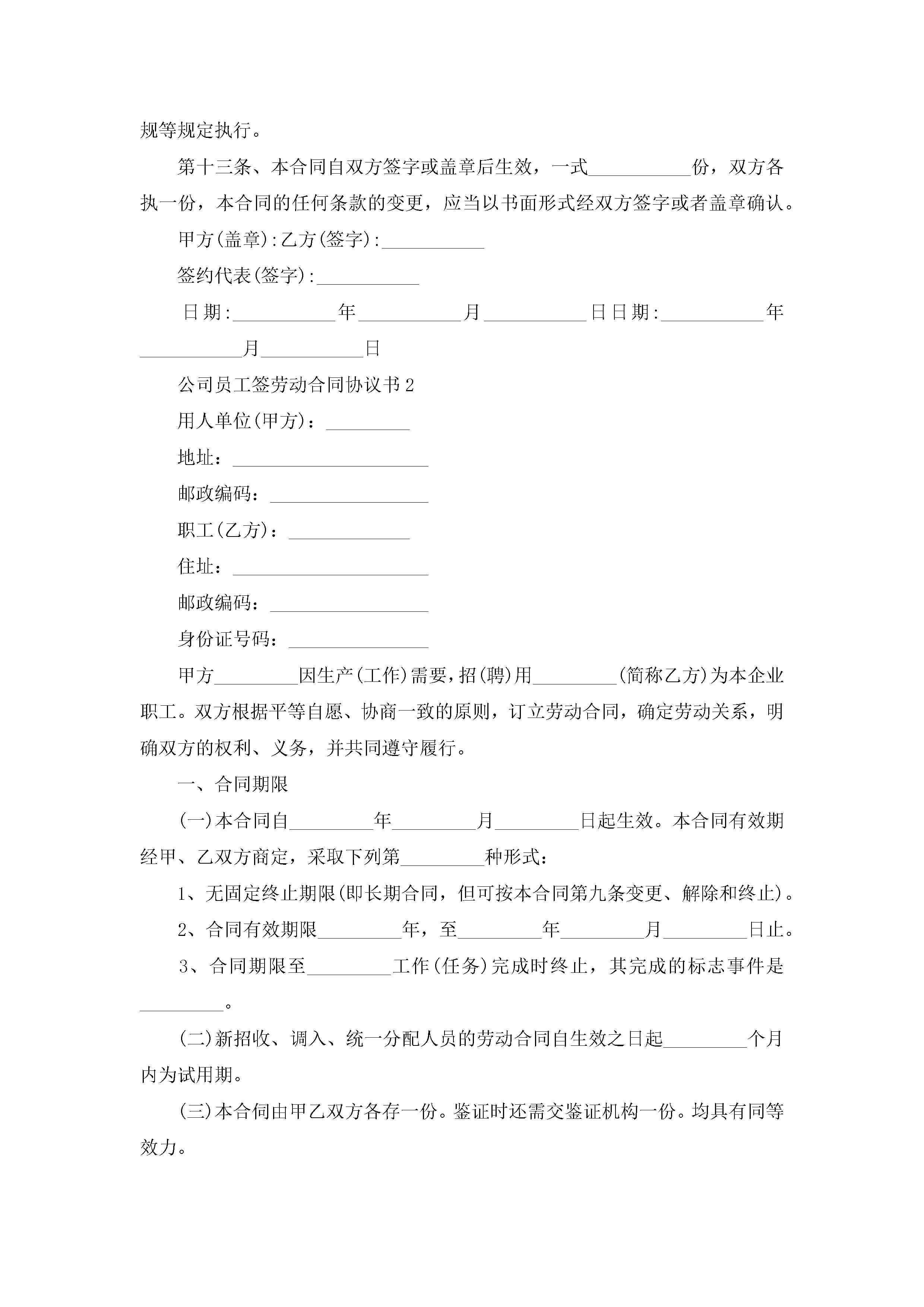 公司员工签劳动合同协议书【5篇】jugei3月23日 01:44发布关注240 公司员工签劳动合同协议书【5篇】此内容为付费资源,请付费后查看¥10.9 单篇文档限时特惠¥15个人会员开通企业会员开通立即下载无需登陆!可直接快捷下载单个模板付费资源© 版权声明THE ENDWord模板# 实用文档# 实用模板# 合同模板# 劳动合同 如有问题,可点击最底部“联系我们”联系客服 分享QQ空间微博QQ好友海报分享复制链接收藏