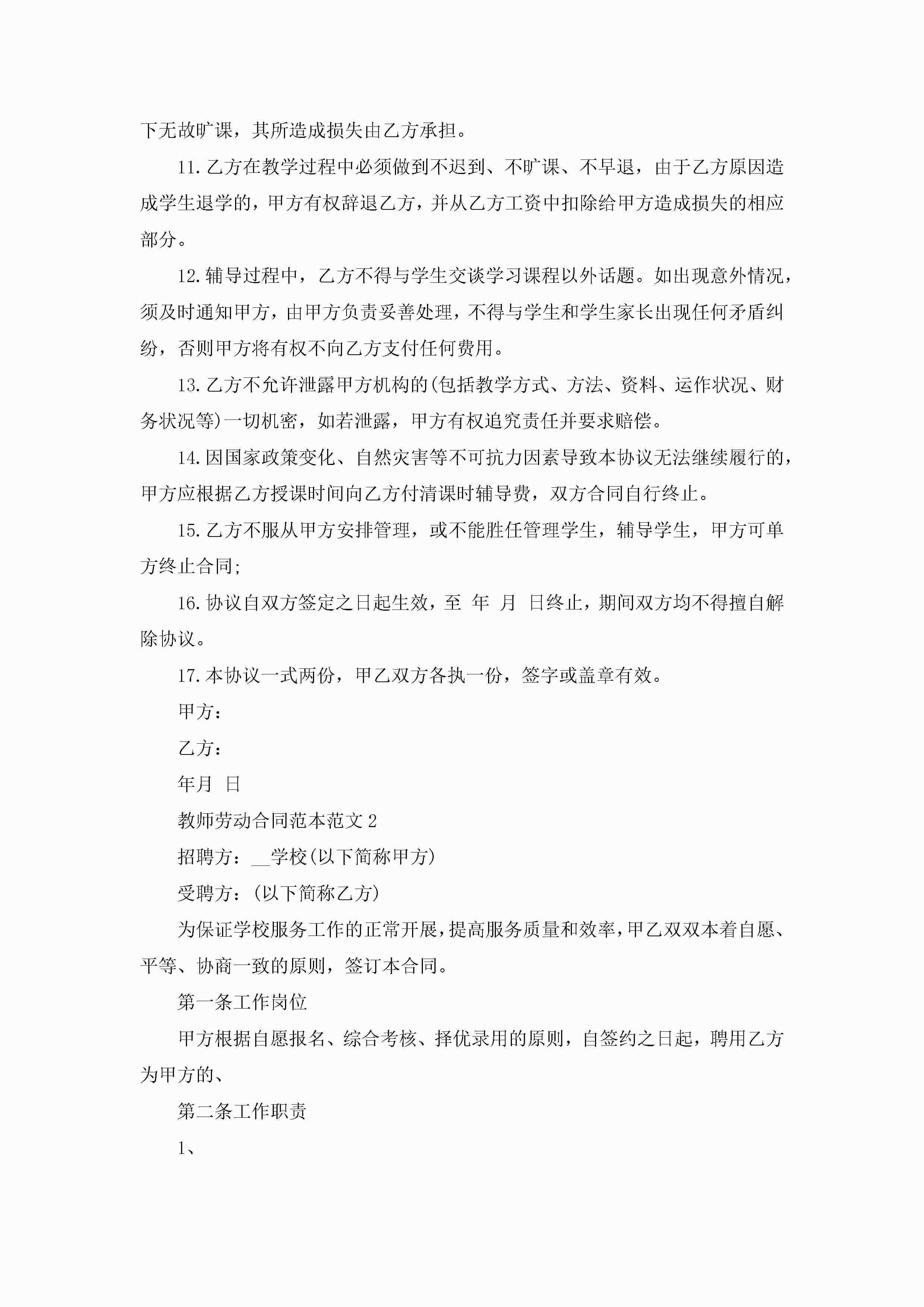 教师劳动合同范本范文【3篇】jugei3月23日 01:44发布关注185 教师劳动合同范本范文【3篇】此内容为付费资源,请付费后查看¥10.9 单篇文档限时特惠¥15个人会员开通企业会员开通立即下载无需登陆!可直接快捷下载单个模板付费资源© 版权声明THE ENDWord模板# 实用文档# 实用模板# 合同模板# 劳动合同 如有问题,可点击最底部“联系我们”联系客服 分享QQ空间微博QQ好友海报分享复制链接收藏
