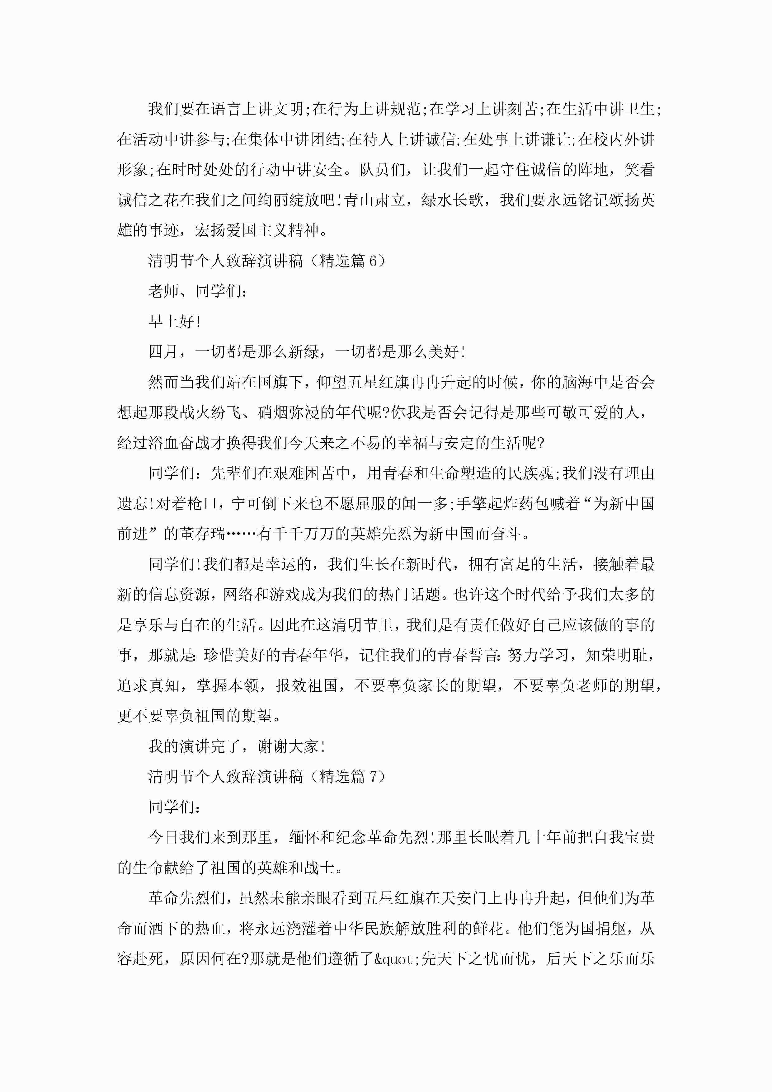 2023清明节个人致辞演讲稿通用7篇jugei3月23日 01:44发布关注200 2023清明节个人致辞演讲稿通用7篇此内容为付费资源,请付费后查看¥10.9 单篇文档限时特惠¥15个人会员开通企业会员开通立即下载无需登陆!可直接快捷下载单个模板付费资源© 版权声明THE ENDWord模板# 实用文档# 演讲稿# 经典演讲稿# 实用写作# 清明节个人致辞演讲稿通用7篇 如有问题,可点击最底部“联系我们”联系客服 分享QQ空间微博QQ好友海报分享复制链接收藏