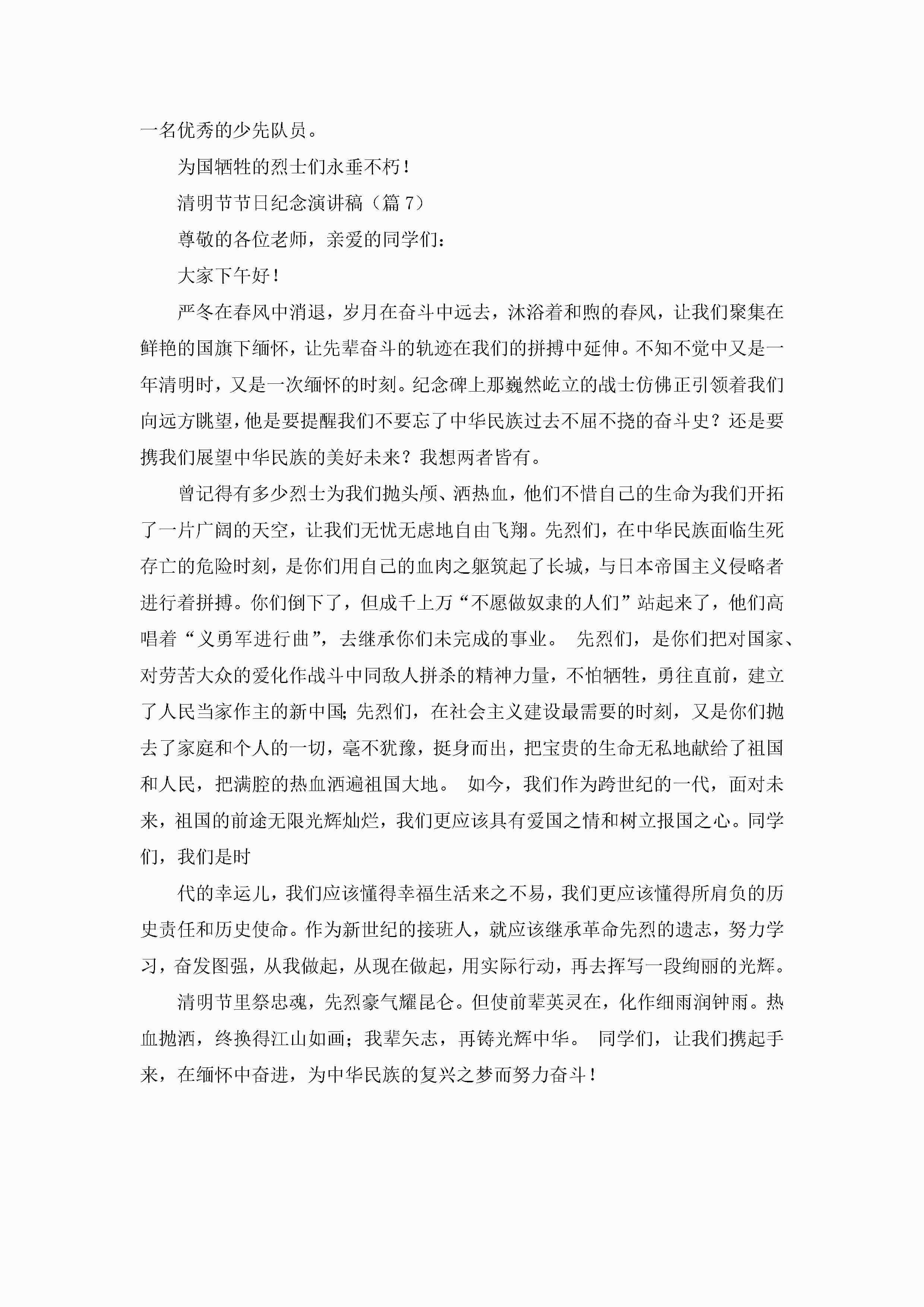 清明节节日纪念演讲稿最新范本jugei3月23日 01:44发布关注293 清明节节日纪念演讲稿最新范本此内容为付费资源,请付费后查看¥10.9 单篇文档限时特惠¥15个人会员开通企业会员开通立即下载无需登陆!可直接快捷下载单个模板付费资源© 版权声明THE ENDWord模板# 实用文档# 演讲稿# 经典演讲稿# 实用写作# 清明节节日纪念演讲稿最新范本 如有问题,可点击最底部“联系我们”联系客服 分享QQ空间微博QQ好友海报分享复制链接收藏