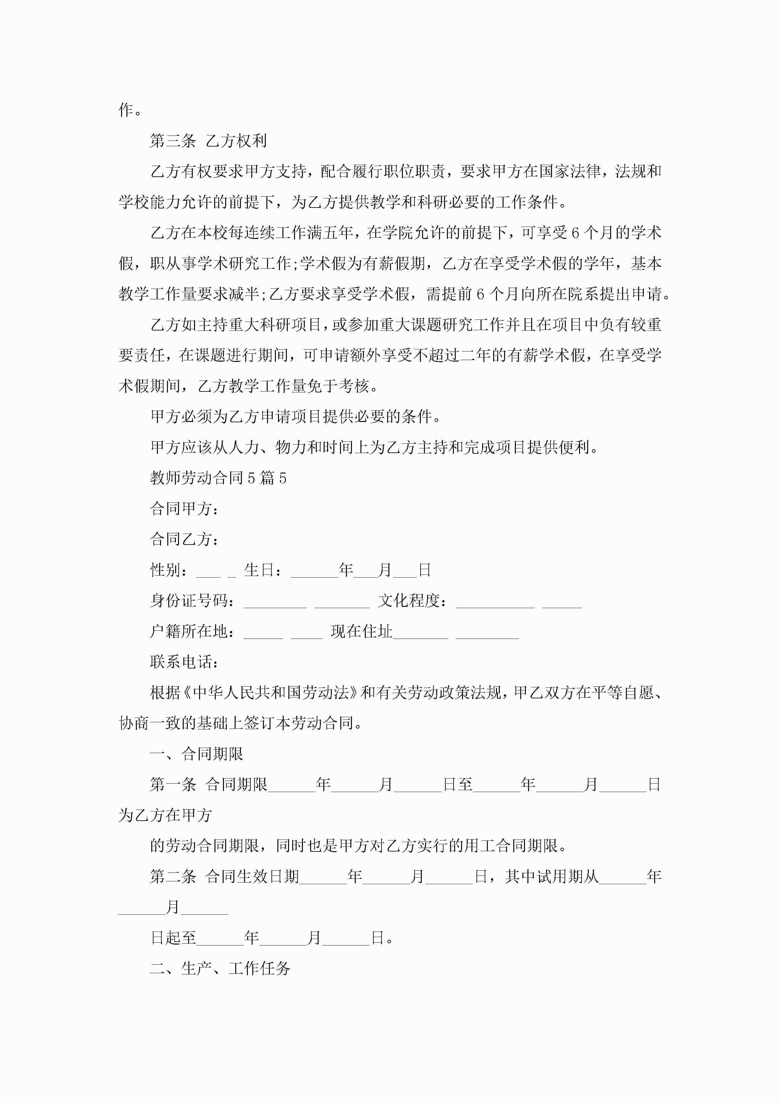 教师劳动合同范文【5篇】_教师劳动合同模板免费jugei3月23日 01:44发布关注188 教师劳动合同范文【5篇】_教师劳动合同模板免费此内容为付费资源,请付费后查看¥10.9 单篇文档限时特惠¥15个人会员开通企业会员开通立即下载无需登陆!可直接快捷下载单个模板付费资源© 版权声明THE ENDWord模板# 实用文档# 实用模板# 合同模板# 劳动合同 如有问题,可点击最底部“联系我们”联系客服 分享QQ空间微博QQ好友海报分享复制链接收藏