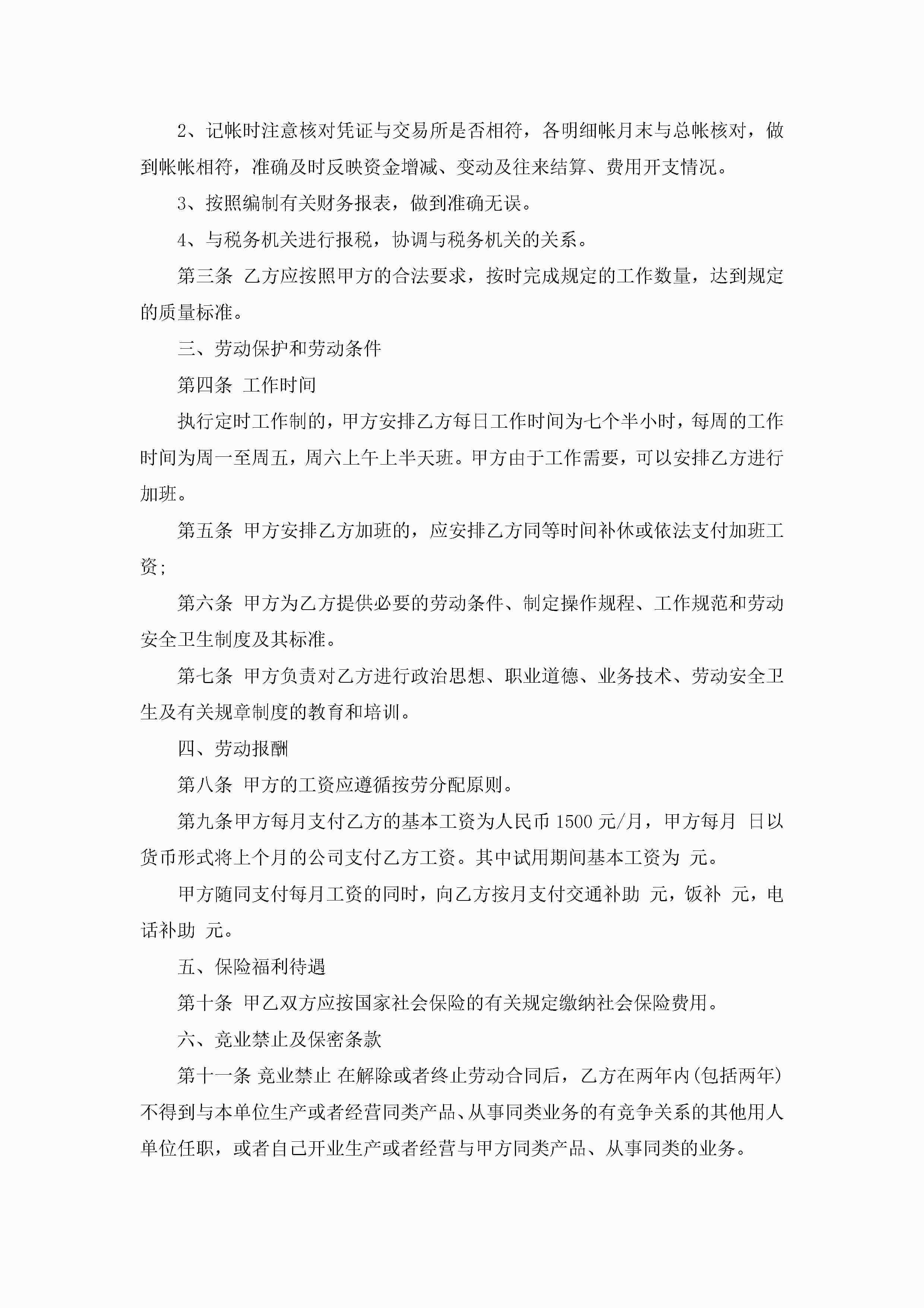 会计人员劳动合同范本【3篇】jugei3月23日 01:44发布关注189 会计人员劳动合同范本【3篇】此内容为付费资源,请付费后查看¥10.9 单篇文档限时特惠¥15个人会员开通企业会员开通立即下载无需登陆!可直接快捷下载单个模板付费资源© 版权声明THE ENDWord模板# 实用文档# 实用模板# 合同模板# 劳动合同 如有问题,可点击最底部“联系我们”联系客服 分享QQ空间微博QQ好友海报分享复制链接收藏