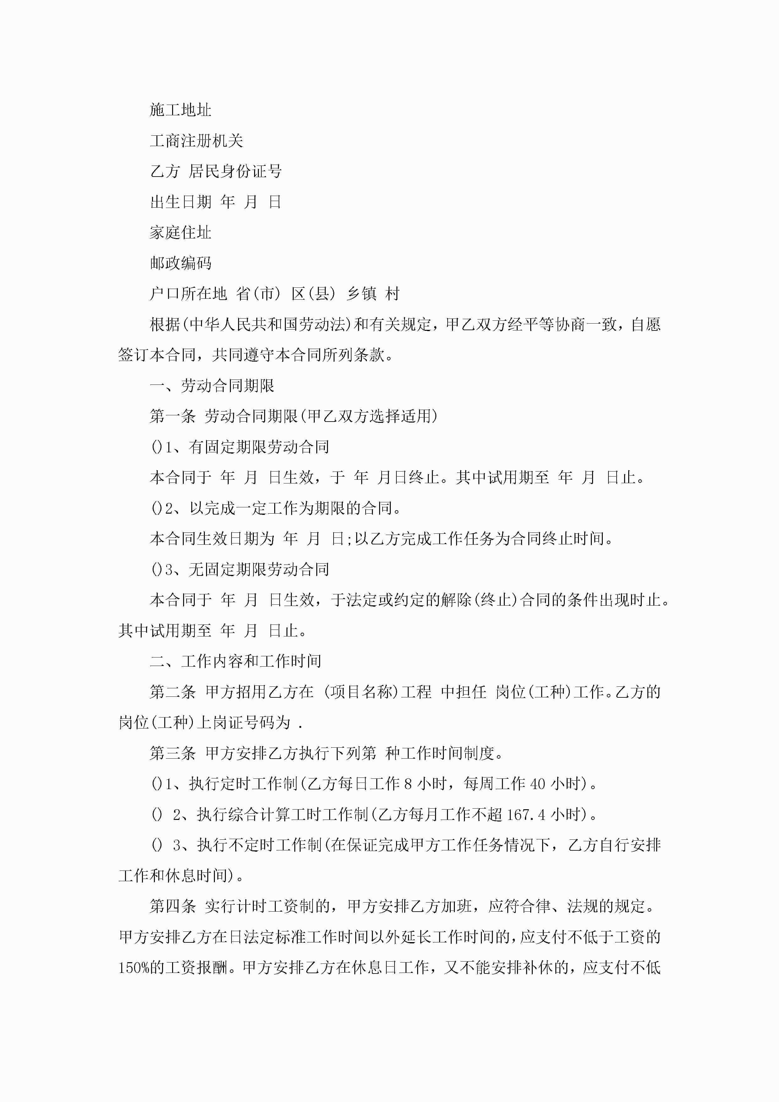 建筑工地劳动合同范本模板【3篇】jugei3月23日 01:44发布关注261 建筑工地劳动合同范本模板【3篇】此内容为付费资源,请付费后查看¥10.9 单篇文档限时特惠¥15个人会员开通企业会员开通立即下载无需登陆!可直接快捷下载单个模板付费资源© 版权声明THE ENDWord模板# 实用文档# 实用模板# 合同模板# 劳动合同 如有问题,可点击最底部“联系我们”联系客服 分享QQ空间微博QQ好友海报分享复制链接收藏