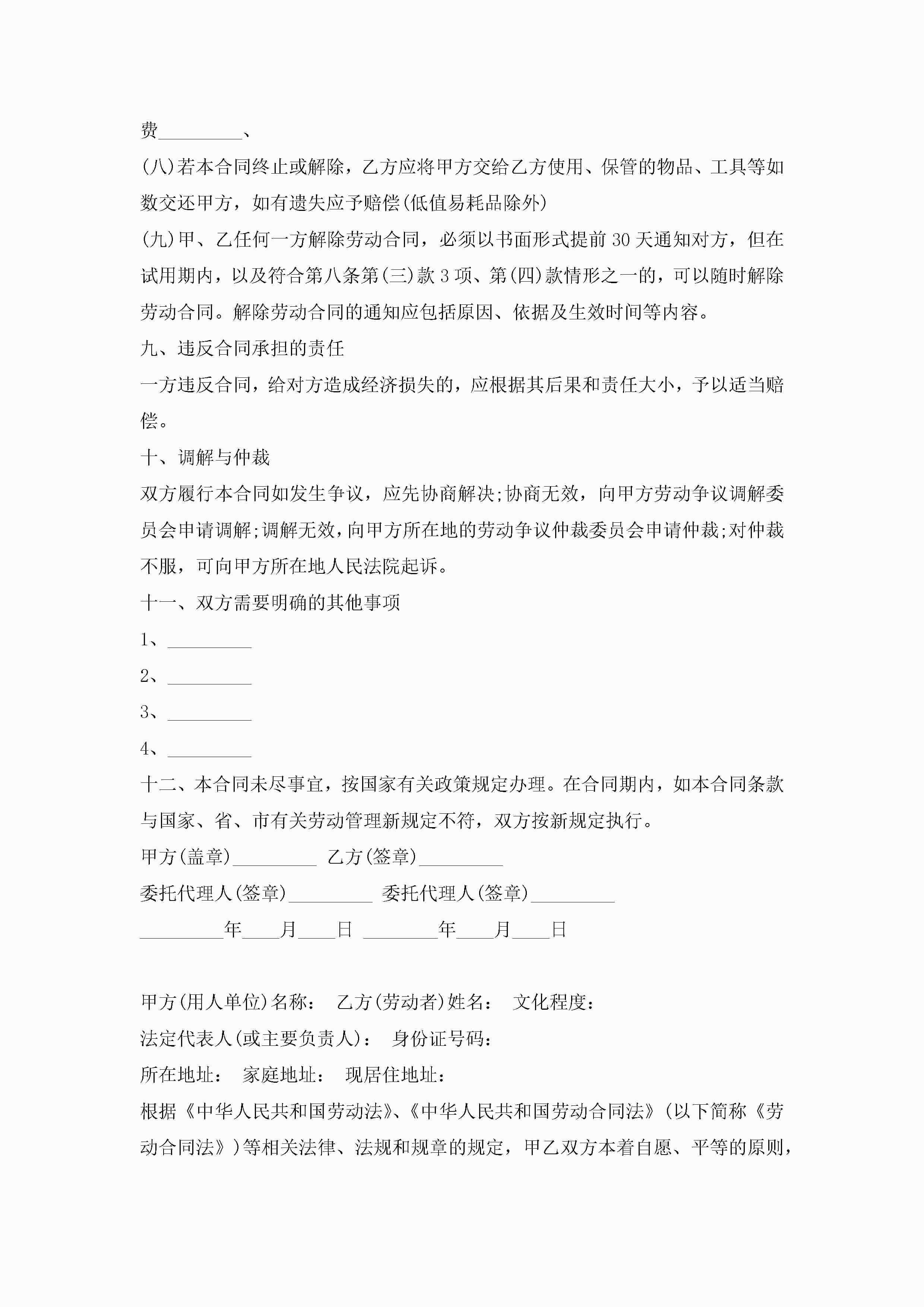 上海市劳动合同协议【3篇】jugei3月23日 01:44发布关注184 上海市劳动合同协议【3篇】此内容为付费资源,请付费后查看¥10.9 单篇文档限时特惠¥15个人会员开通企业会员开通立即下载无需登陆!可直接快捷下载单个模板付费资源© 版权声明THE ENDWord模板# 实用文档# 实用模板# 合同模板# 劳动合同 如有问题,可点击最底部“联系我们”联系客服 分享QQ空间微博QQ好友海报分享复制链接收藏