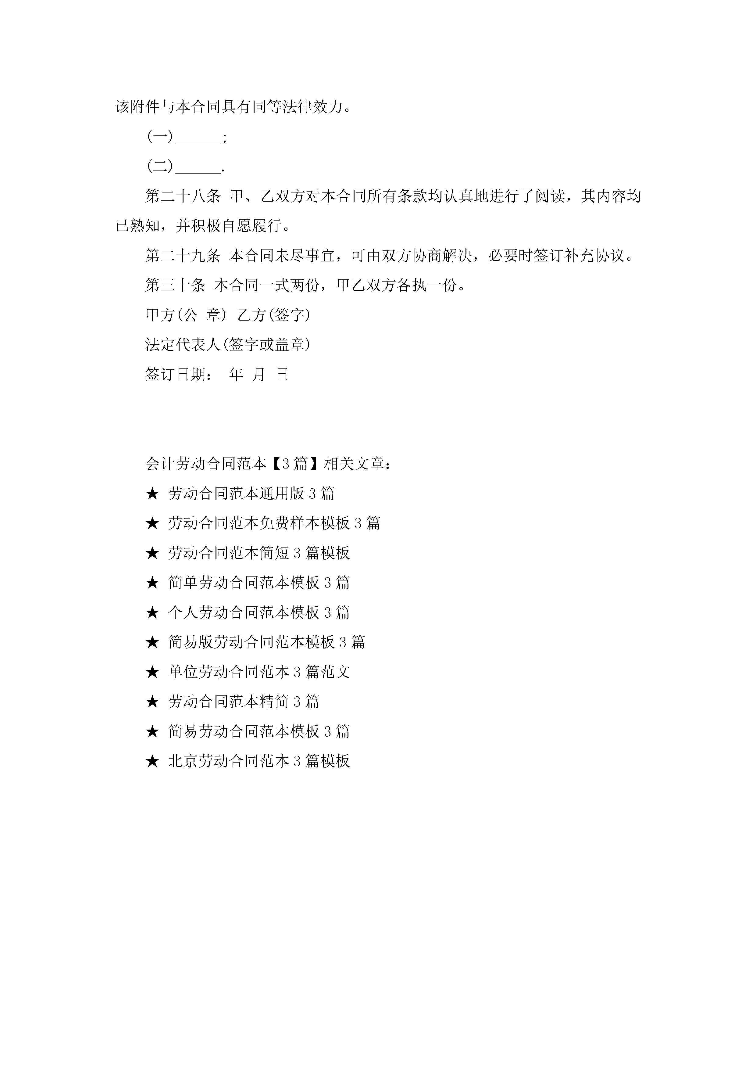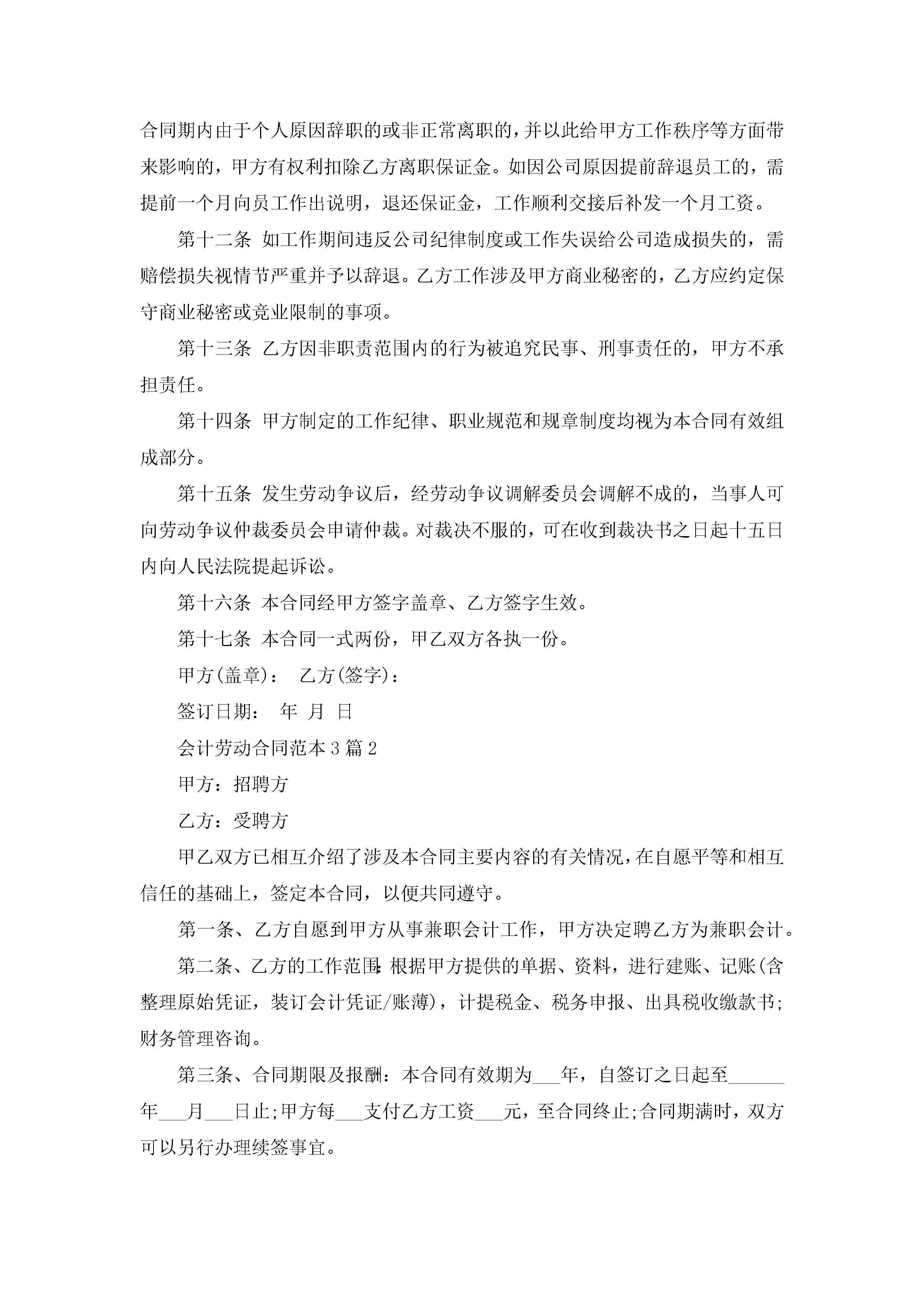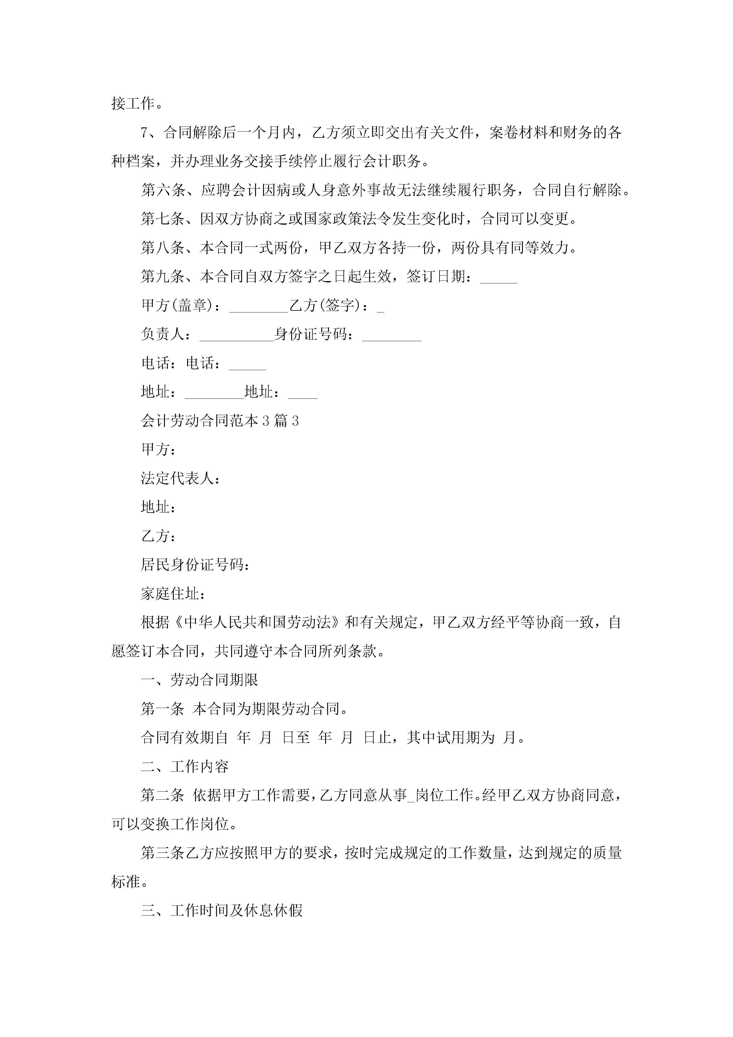 会计劳动合同范本模板【3篇】jugei3月23日 01:44发布关注219 会计劳动合同范本模板【3篇】此内容为付费资源,请付费后查看¥10.9 单篇文档限时特惠¥15个人会员开通企业会员开通立即下载无需登陆!可直接快捷下载单个模板付费资源© 版权声明THE ENDWord模板# 实用文档# 实用模板# 合同模板# 劳动合同 如有问题,可点击最底部“联系我们”联系客服 分享QQ空间微博QQ好友海报分享复制链接收藏