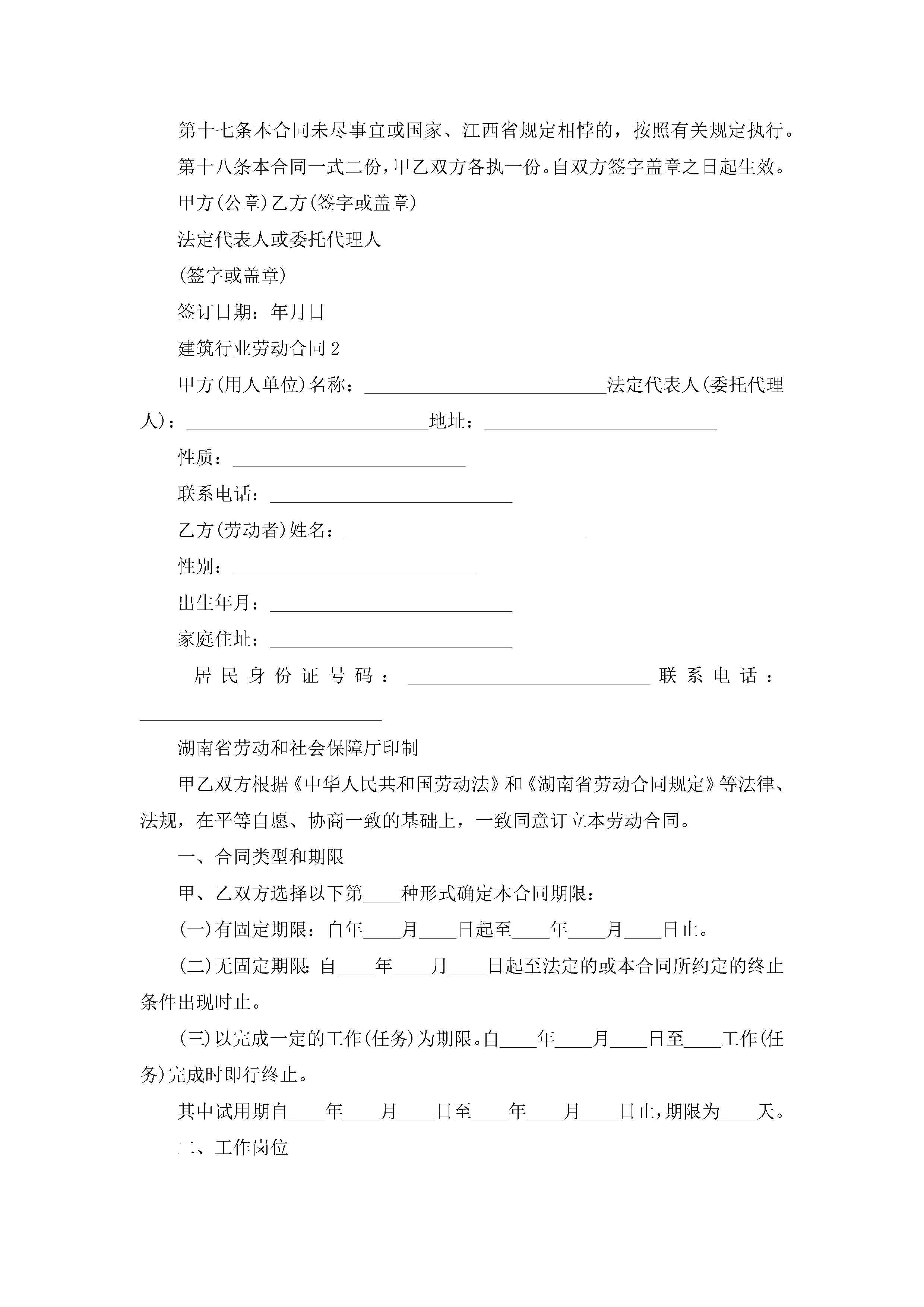 建筑行业劳动合同模板jugei3月23日 01:44发布关注214 建筑行业劳动合同模板此内容为付费资源,请付费后查看¥10.9 单篇文档限时特惠¥15个人会员开通企业会员开通立即下载无需登陆!可直接快捷下载单个模板付费资源© 版权声明THE ENDWord模板# 实用文档# 实用模板# 合同模板# 劳动合同 如有问题,可点击最底部“联系我们”联系客服 分享QQ空间微博QQ好友海报分享复制链接收藏