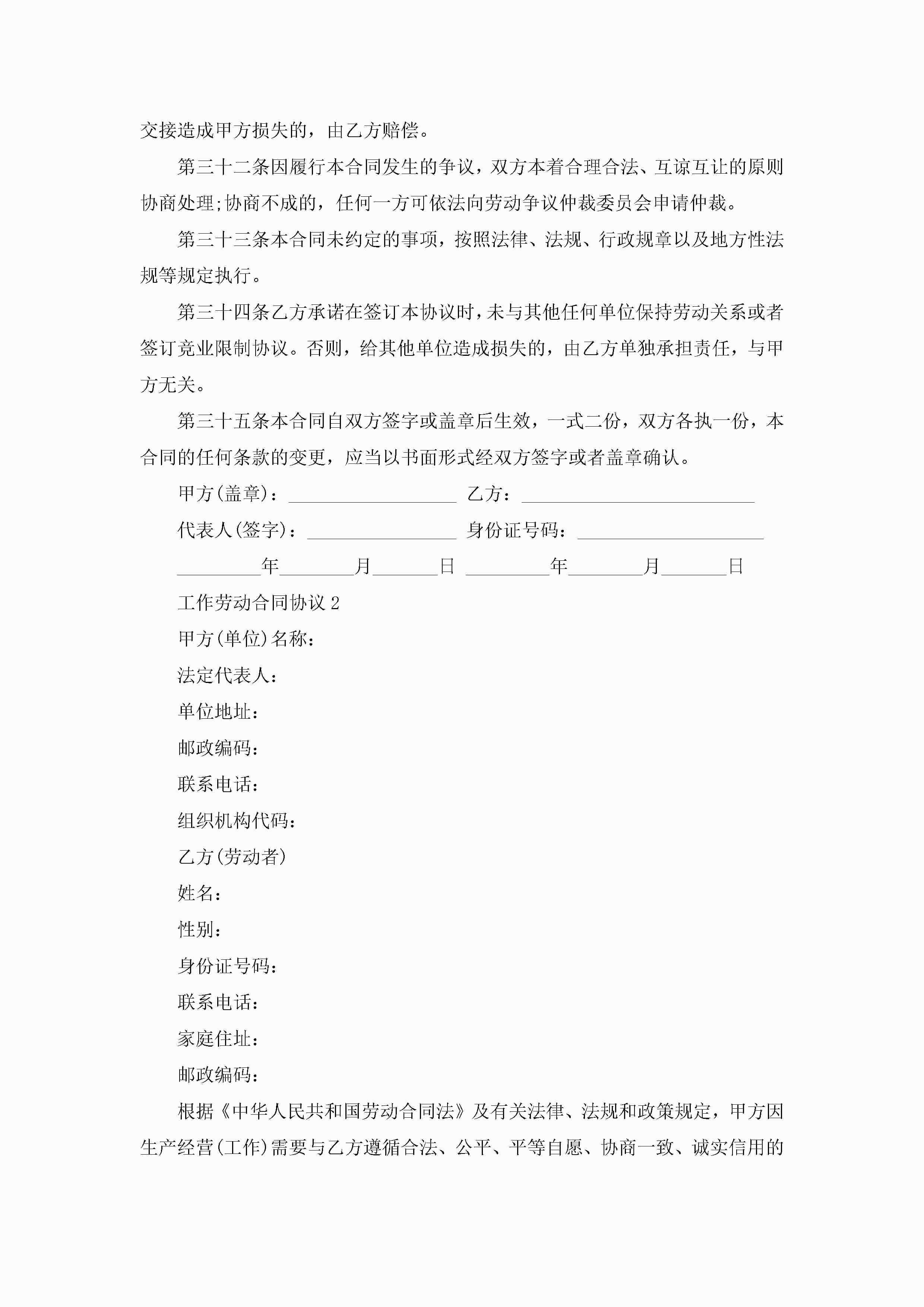工作劳动合同协议【3篇】jugei3月23日 01:44发布关注253 工作劳动合同协议【3篇】此内容为付费资源,请付费后查看¥10.9 单篇文档限时特惠¥15个人会员开通企业会员开通立即下载无需登陆!可直接快捷下载单个模板付费资源© 版权声明THE ENDWord模板# 实用文档# 实用模板# 合同模板# 劳动合同 如有问题,可点击最底部“联系我们”联系客服 分享QQ空间微博QQ好友海报分享复制链接收藏