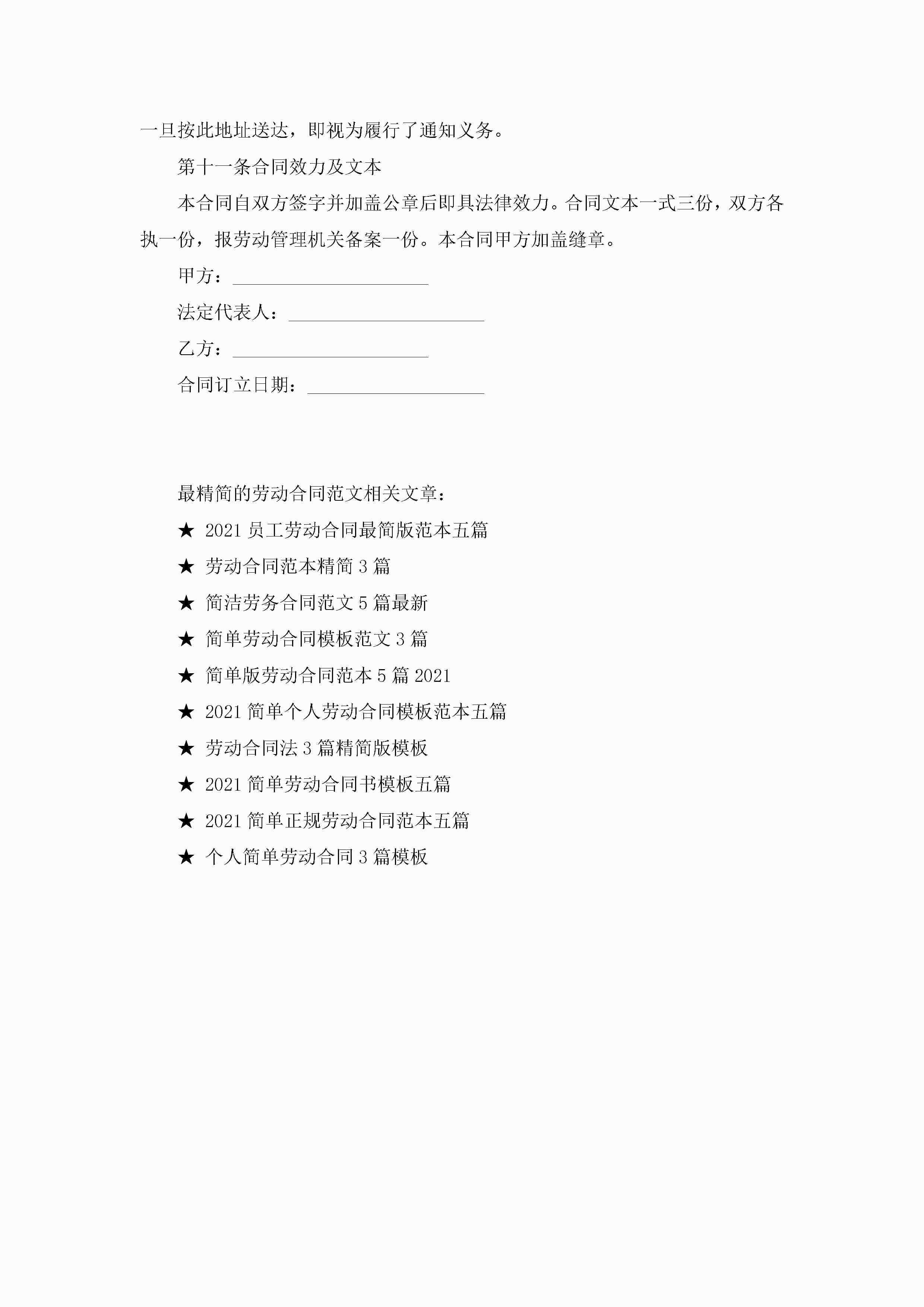 最精简的劳动合同范文模板jugei3月23日 01:44发布关注191 最精简的劳动合同范文模板此内容为付费资源,请付费后查看¥10.9 单篇文档限时特惠¥15个人会员开通企业会员开通立即下载无需登陆!可直接快捷下载单个模板付费资源© 版权声明THE ENDWord模板# 实用文档# 实用模板# 合同模板# 劳动合同 如有问题,可点击最底部“联系我们”联系客服 分享QQ空间微博QQ好友海报分享复制链接收藏