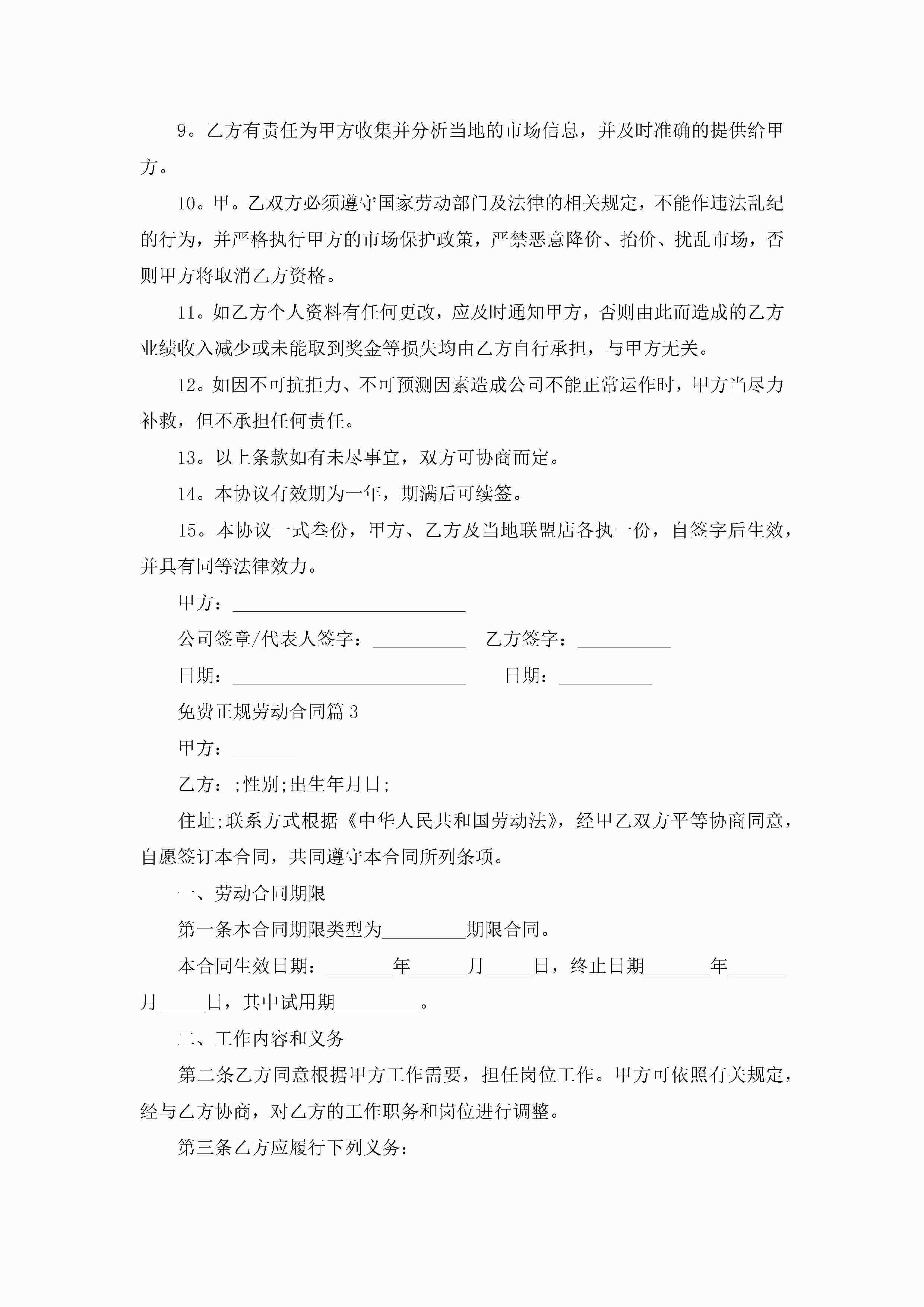 免费正规劳动合同(8篇大全)jugei3月23日 01:44发布关注243 免费正规劳动合同(8篇大全)此内容为付费资源,请付费后查看¥10.9 单篇文档限时特惠¥15个人会员开通企业会员开通立即下载无需登陆!可直接快捷下载单个模板付费资源© 版权声明THE ENDWord模板# 实用文档# 实用模板# 合同模板# 劳动合同 如有问题,可点击最底部“联系我们”联系客服 分享QQ空间微博QQ好友海报分享复制链接收藏