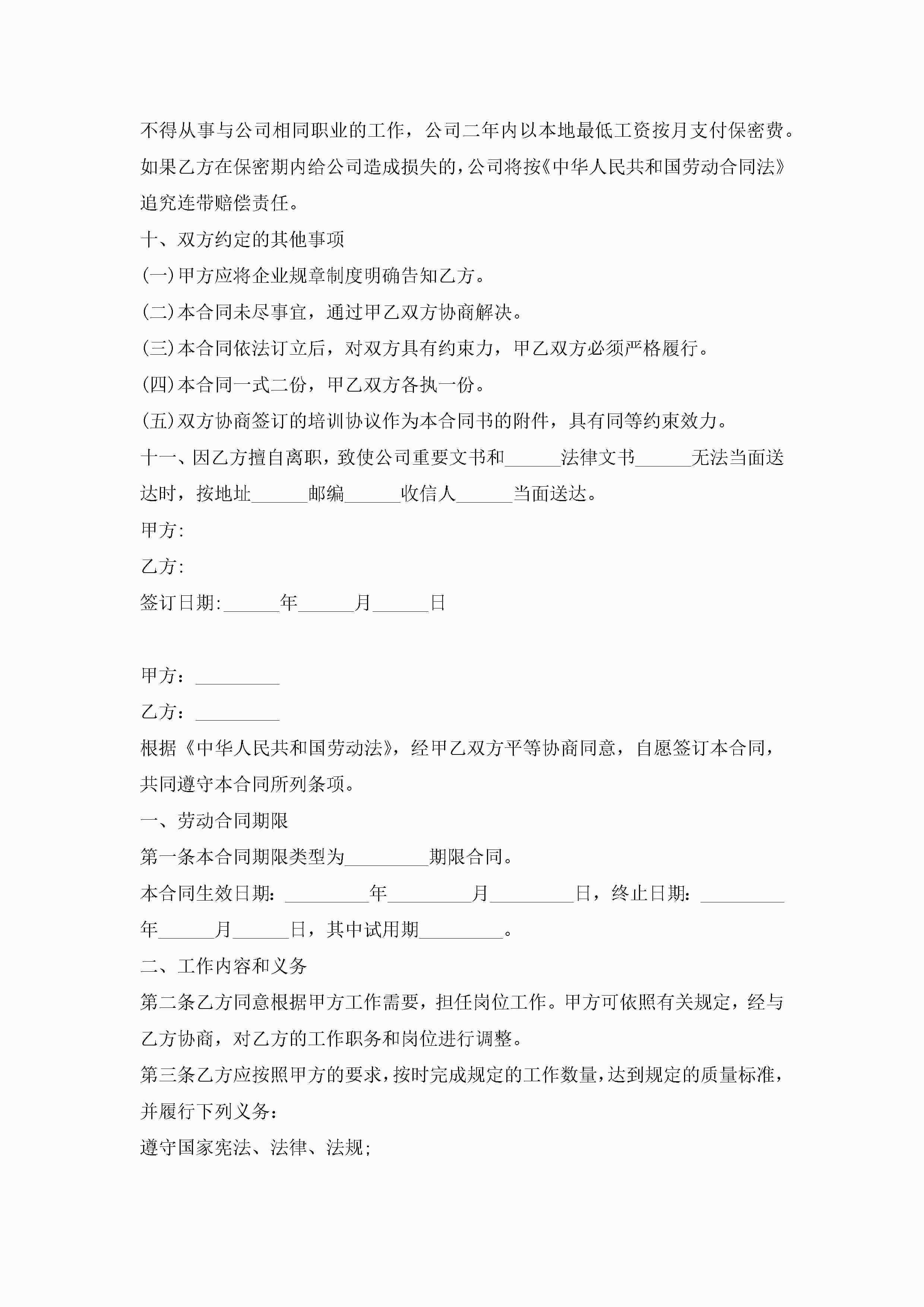 正规合法的劳动合同【3篇】jugei3月23日 01:44发布关注185 正规合法的劳动合同【3篇】此内容为付费资源,请付费后查看¥10.9 单篇文档限时特惠¥15个人会员开通企业会员开通立即下载无需登陆!可直接快捷下载单个模板付费资源© 版权声明THE ENDWord模板# 实用文档# 实用模板# 合同模板# 劳动合同 如有问题,可点击最底部“联系我们”联系客服 分享QQ空间微博QQ好友海报分享复制链接收藏