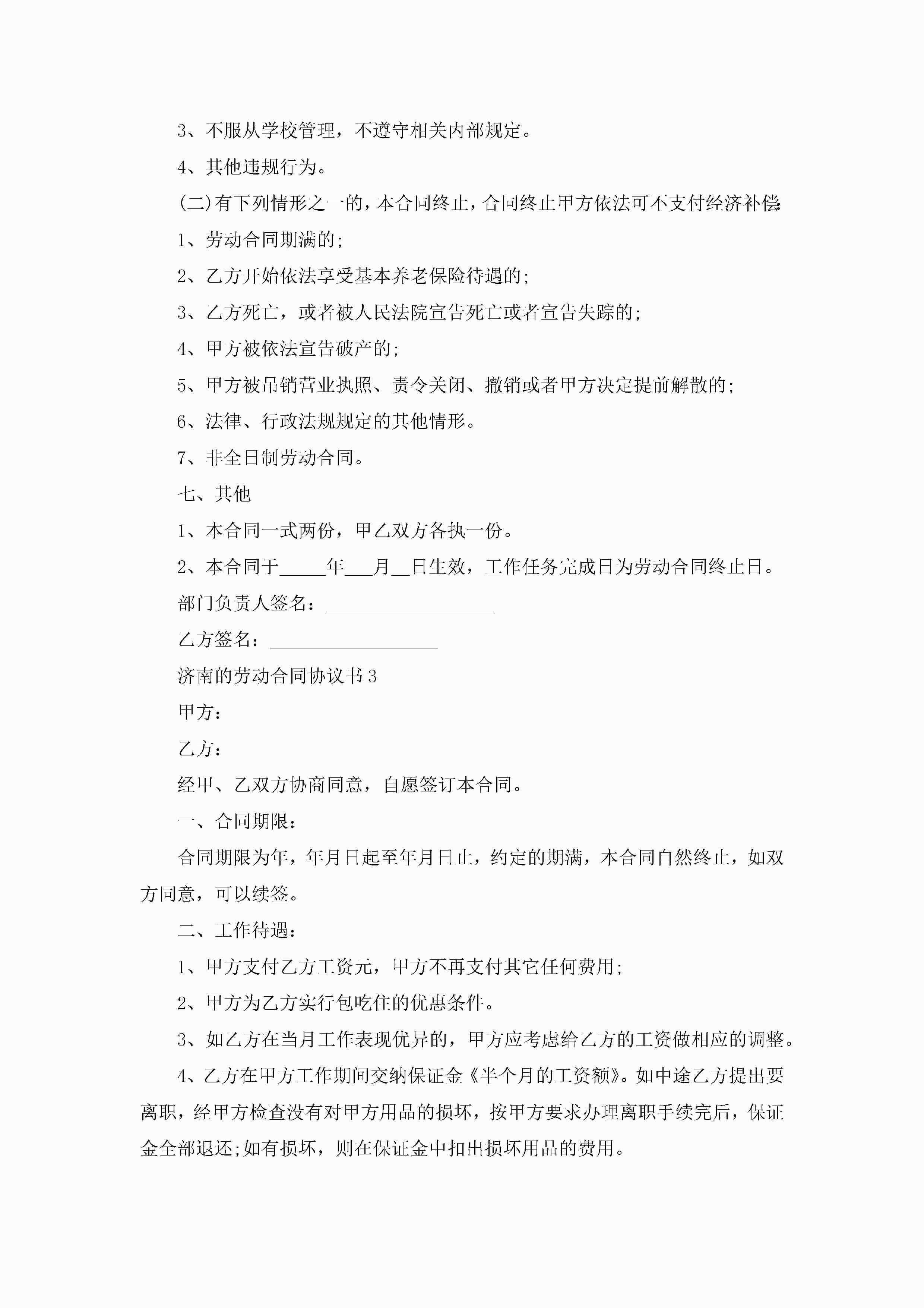 济南的劳动合同协议书【3篇】jugei3月23日 01:44发布关注187 济南的劳动合同协议书【3篇】此内容为付费资源,请付费后查看¥10.9 单篇文档限时特惠¥15个人会员开通企业会员开通立即下载无需登陆!可直接快捷下载单个模板付费资源© 版权声明THE ENDWord模板# 实用文档# 实用模板# 合同模板# 劳动合同 如有问题,可点击最底部“联系我们”联系客服 分享QQ空间微博QQ好友海报分享复制链接收藏