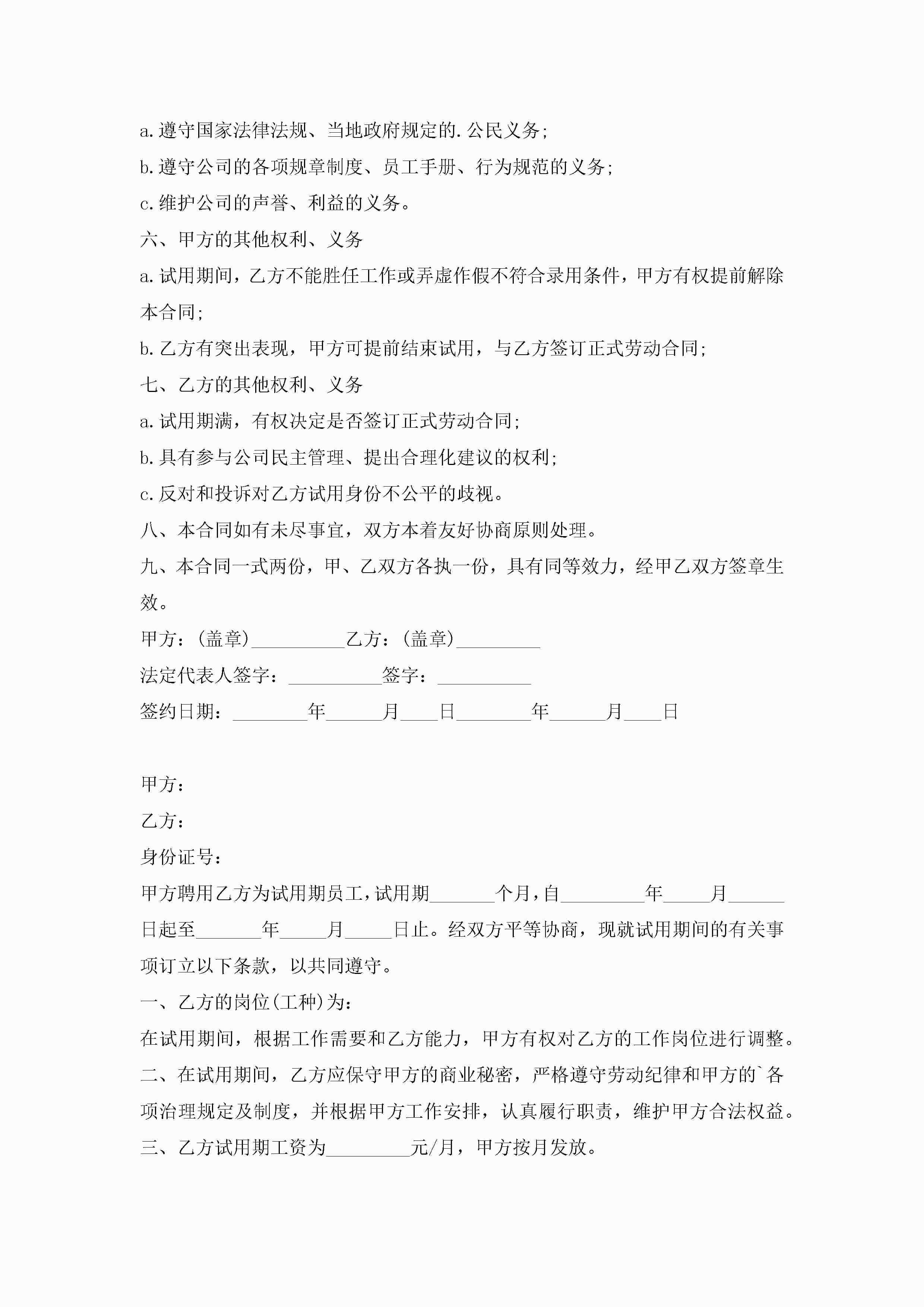 劳动合同协议书试用期模板jugei3月23日 01:44发布关注273 劳动合同协议书试用期模板此内容为付费资源,请付费后查看¥10.9 单篇文档限时特惠¥15个人会员开通企业会员开通立即下载无需登陆!可直接快捷下载单个模板付费资源© 版权声明THE ENDWord模板# 实用文档# 实用模板# 合同模板# 劳动合同 如有问题,可点击最底部“联系我们”联系客服 分享QQ空间微博QQ好友海报分享复制链接收藏