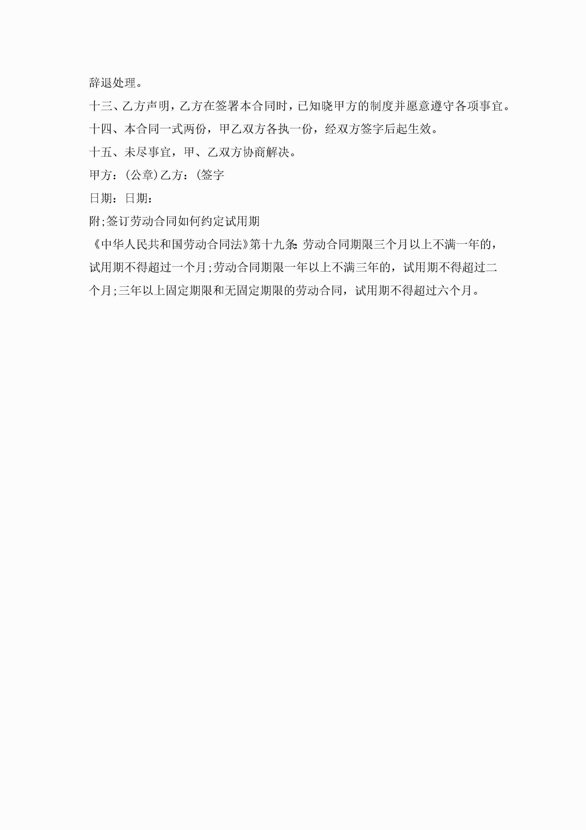 常用的劳动合同【3篇】jugei3月23日 01:44发布关注227 常用的劳动合同【3篇】此内容为付费资源,请付费后查看¥10.9 单篇文档限时特惠¥15个人会员开通企业会员开通立即下载无需登陆!可直接快捷下载单个模板付费资源© 版权声明THE ENDWord模板# 实用文档# 实用模板# 合同模板# 劳动合同 如有问题,可点击最底部“联系我们”联系客服 分享QQ空间微博QQ好友海报分享复制链接收藏