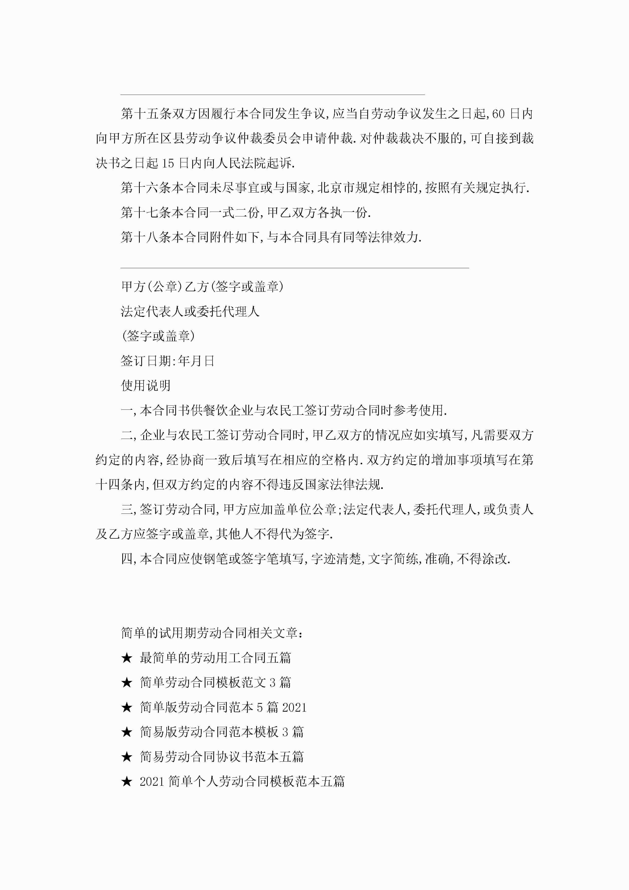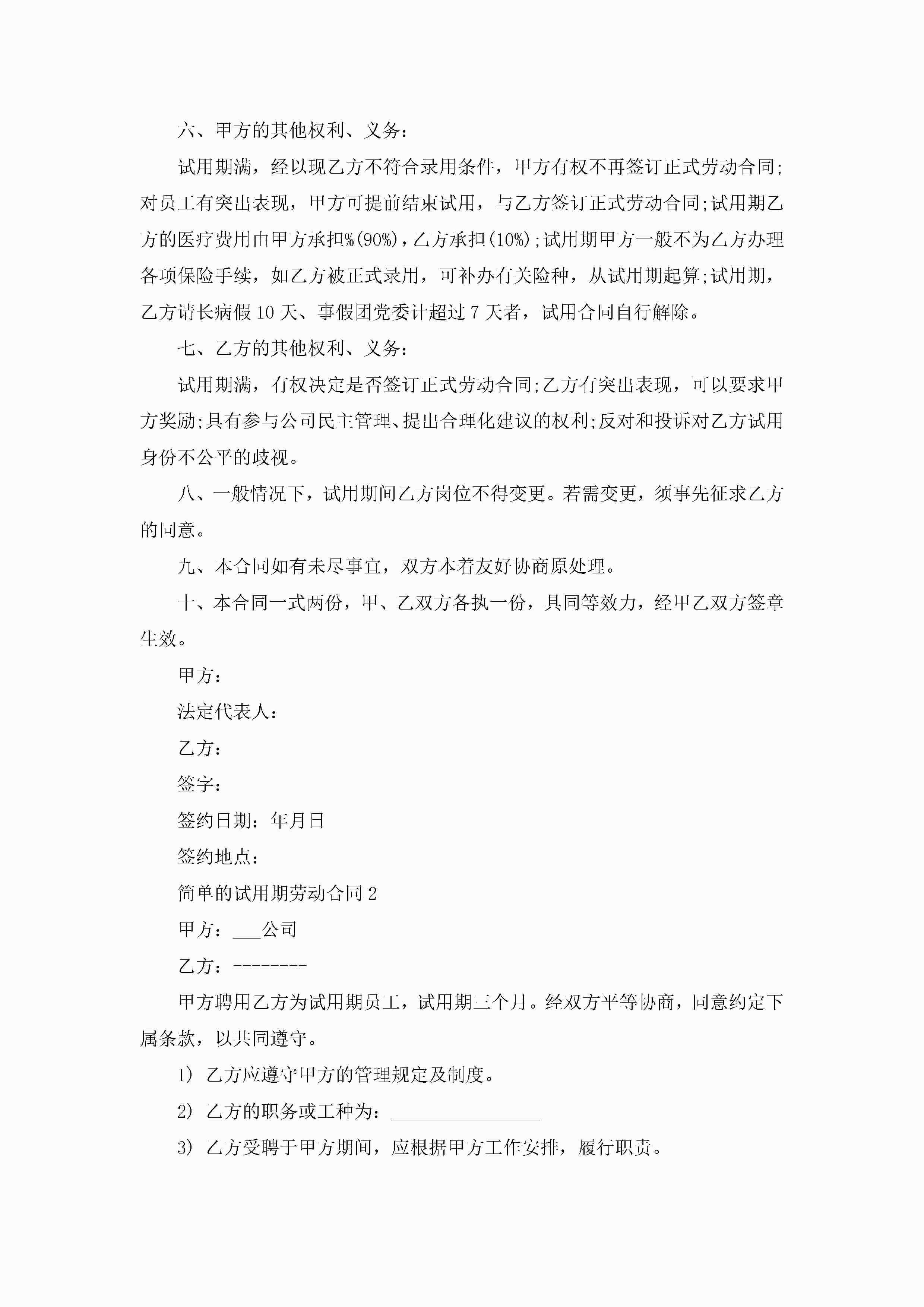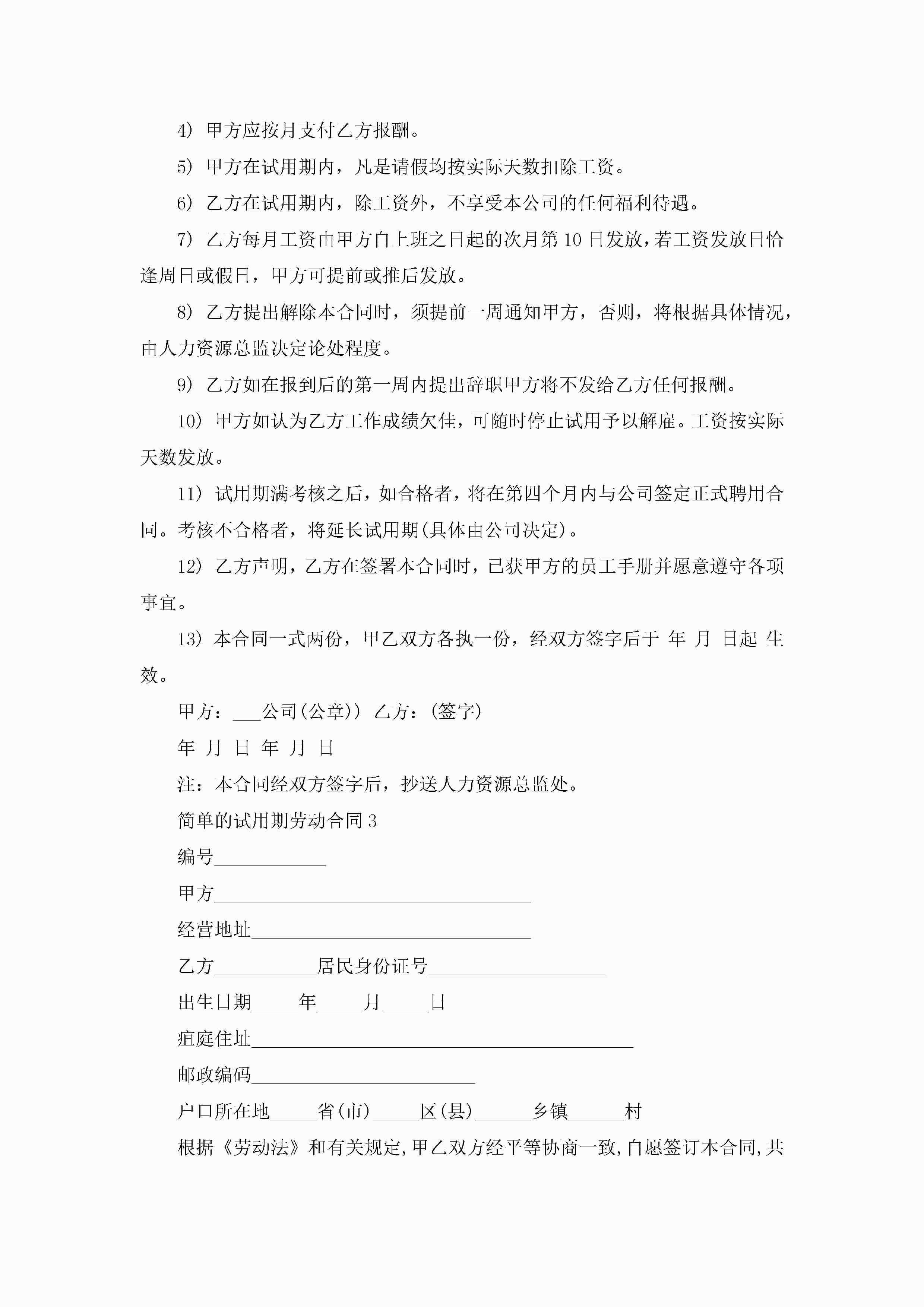 简单的试用期劳动合同范文jugei3月23日 01:44发布关注248 简单的试用期劳动合同范文此内容为付费资源,请付费后查看¥10.9 单篇文档限时特惠¥15个人会员开通企业会员开通立即下载无需登陆!可直接快捷下载单个模板付费资源© 版权声明THE ENDWord模板# 实用文档# 实用模板# 合同模板# 劳动合同 如有问题,可点击最底部“联系我们”联系客服 分享QQ空间微博QQ好友海报分享复制链接收藏