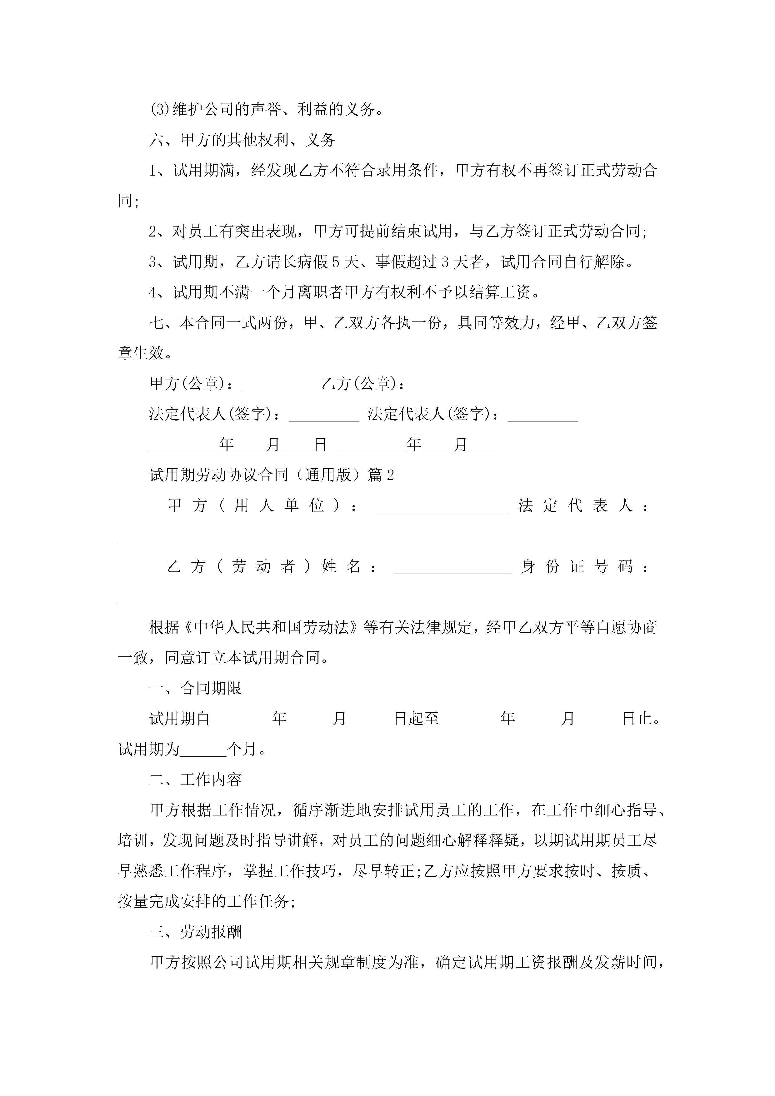 试用期劳动协议合同(通用版)6篇jugei3月23日 01:44发布关注229 试用期劳动协议合同(通用版)6篇此内容为付费资源,请付费后查看¥10.9 单篇文档限时特惠¥15个人会员开通企业会员开通立即下载无需登陆!可直接快捷下载单个模板付费资源© 版权声明THE ENDWord模板# 实用文档# 实用模板# 合同模板# 劳动合同 如有问题,可点击最底部“联系我们”联系客服 分享QQ空间微博QQ好友海报分享复制链接收藏