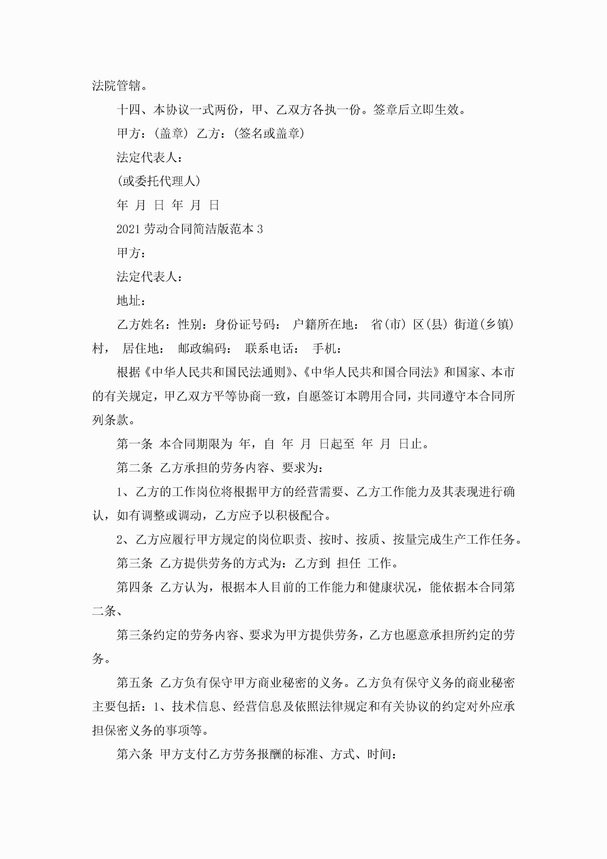 劳动合同简洁版范本【3篇】jugei3月23日 01:44发布关注187 劳动合同简洁版范本【3篇】此内容为付费资源,请付费后查看¥10.9 单篇文档限时特惠¥15个人会员开通企业会员开通立即下载无需登陆!可直接快捷下载单个模板付费资源© 版权声明THE ENDWord模板# 实用文档# 实用模板# 合同模板# 劳动合同 如有问题,可点击最底部“联系我们”联系客服 分享QQ空间微博QQ好友海报分享复制链接收藏