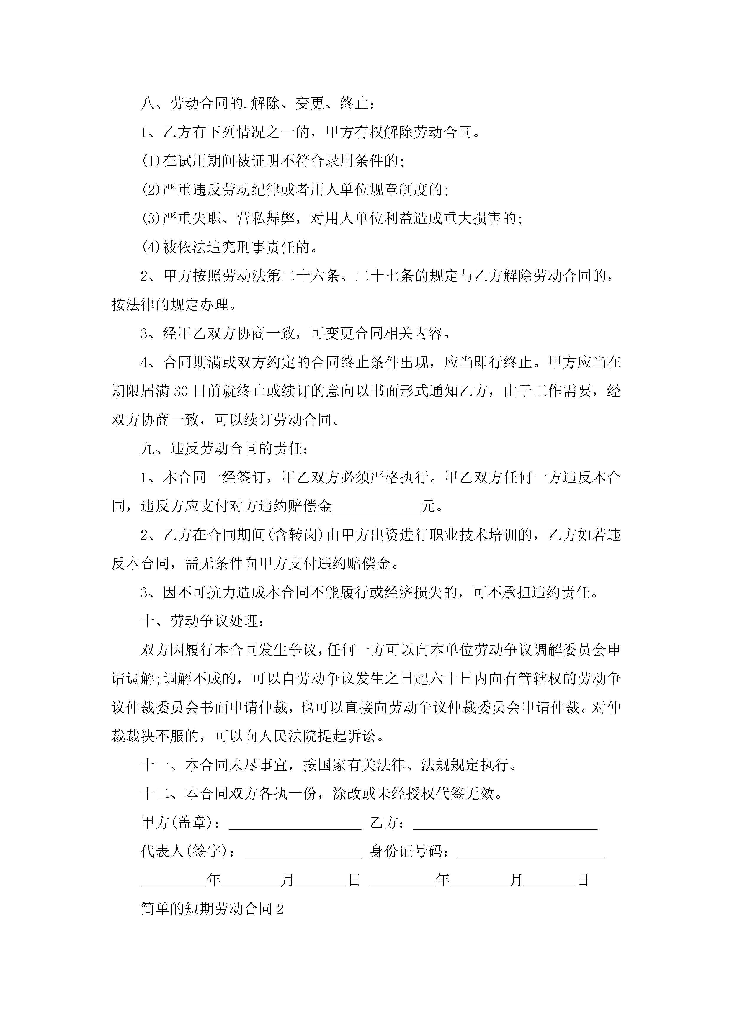 简单的短期劳动合同【3篇】jugei3月23日 01:44发布关注216 简单的短期劳动合同【3篇】此内容为付费资源,请付费后查看¥10.9 单篇文档限时特惠¥15个人会员开通企业会员开通立即下载无需登陆!可直接快捷下载单个模板付费资源© 版权声明THE ENDWord模板# 实用文档# 实用模板# 合同模板# 劳动合同 如有问题,可点击最底部“联系我们”联系客服 分享QQ空间微博QQ好友海报分享复制链接收藏