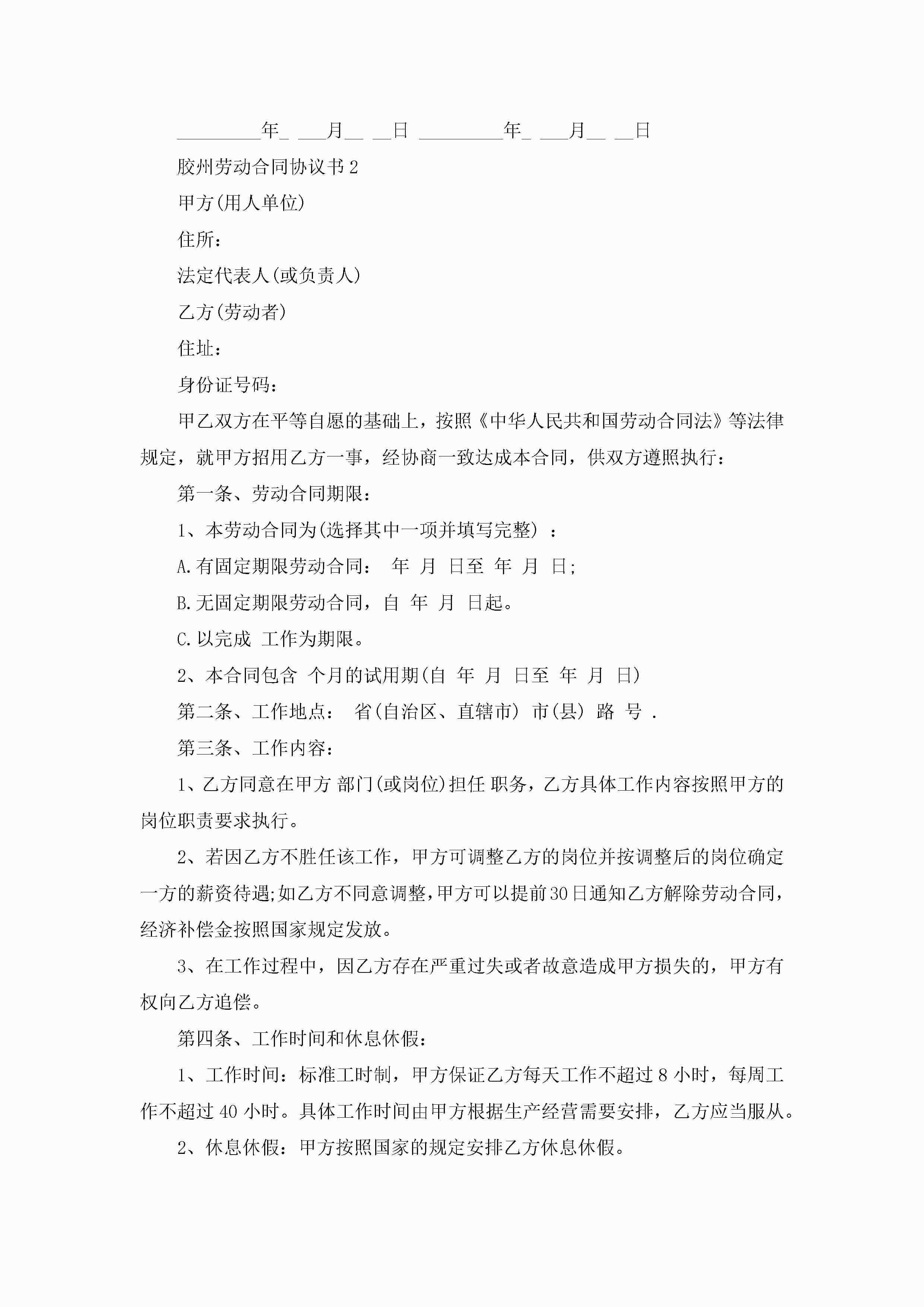 胶州劳动合同协议书模板jugei3月23日 01:44发布关注187 胶州劳动合同协议书模板此内容为付费资源,请付费后查看¥10.9 单篇文档限时特惠¥15个人会员开通企业会员开通立即下载无需登陆!可直接快捷下载单个模板付费资源© 版权声明THE ENDWord模板# 实用文档# 实用模板# 合同模板# 劳动合同 如有问题,可点击最底部“联系我们”联系客服 分享QQ空间微博QQ好友海报分享复制链接收藏