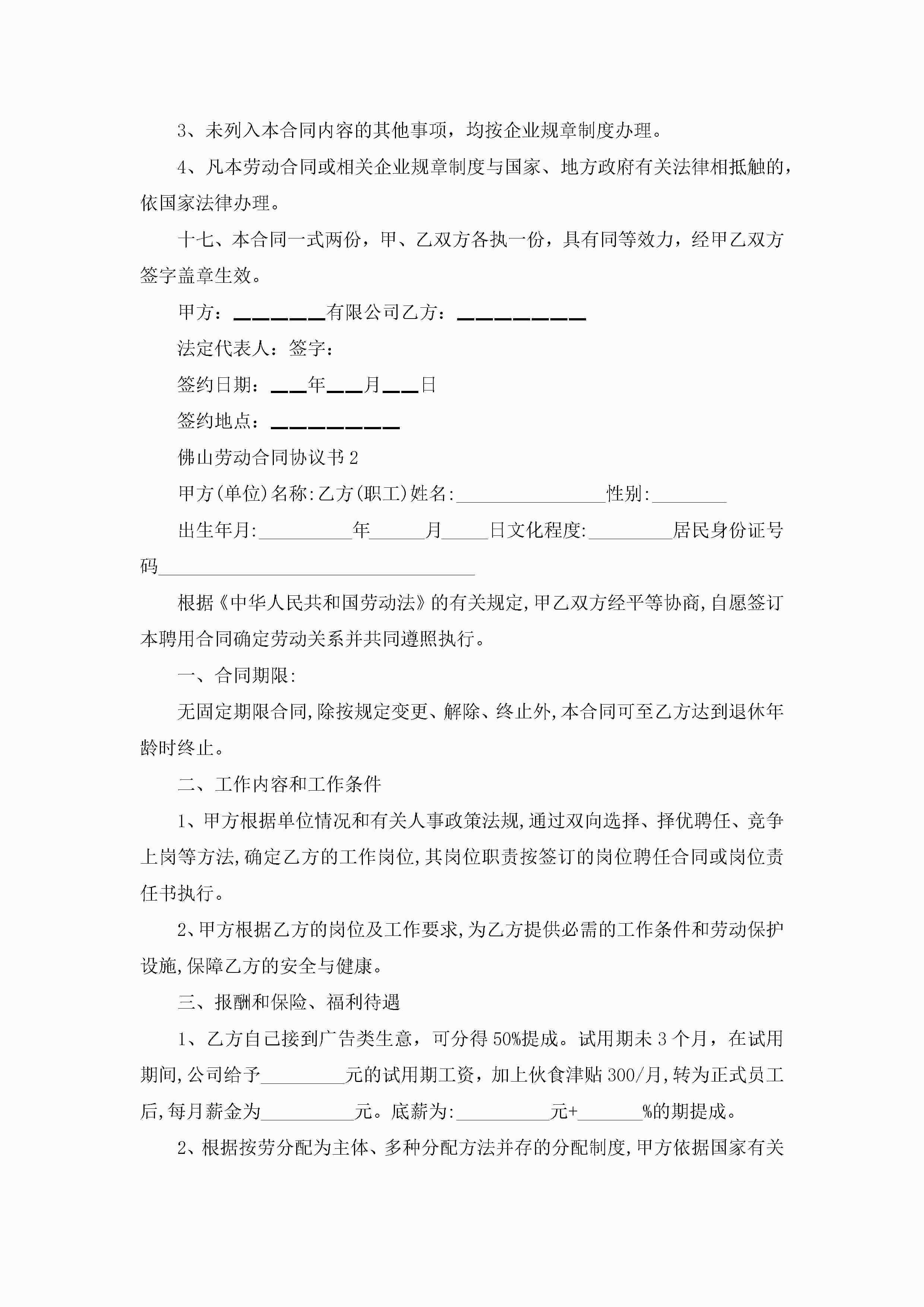佛山劳动合同协议书【3篇】jugei3月23日 01:44发布关注193 佛山劳动合同协议书【3篇】此内容为付费资源,请付费后查看¥10.9 单篇文档限时特惠¥15个人会员开通企业会员开通立即下载无需登陆!可直接快捷下载单个模板付费资源© 版权声明THE ENDWord模板# 实用文档# 实用模板# 合同模板# 劳动合同 如有问题,可点击最底部“联系我们”联系客服 分享QQ空间微博QQ好友海报分享复制链接收藏