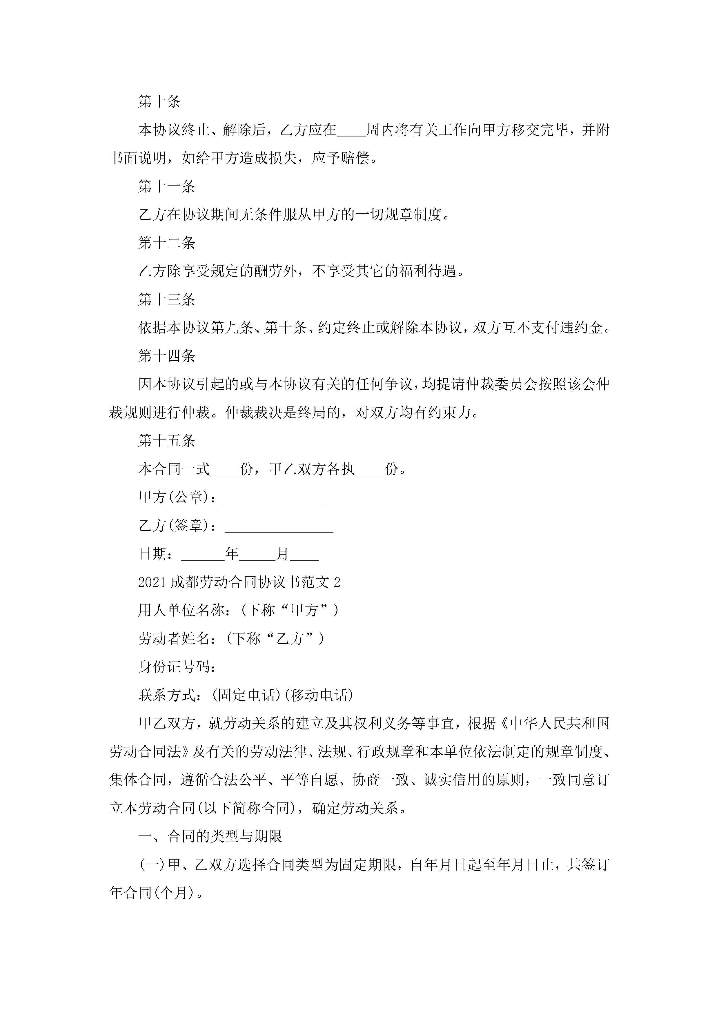 成都劳动合同协议书范文【3篇】jugei3月23日 01:44发布关注257 成都劳动合同协议书范文【3篇】此内容为付费资源,请付费后查看¥10.9 单篇文档限时特惠¥15个人会员开通企业会员开通立即下载无需登陆!可直接快捷下载单个模板付费资源© 版权声明THE ENDWord模板# 实用文档# 实用模板# 合同模板# 劳动合同 如有问题,可点击最底部“联系我们”联系客服 分享QQ空间微博QQ好友海报分享复制链接收藏