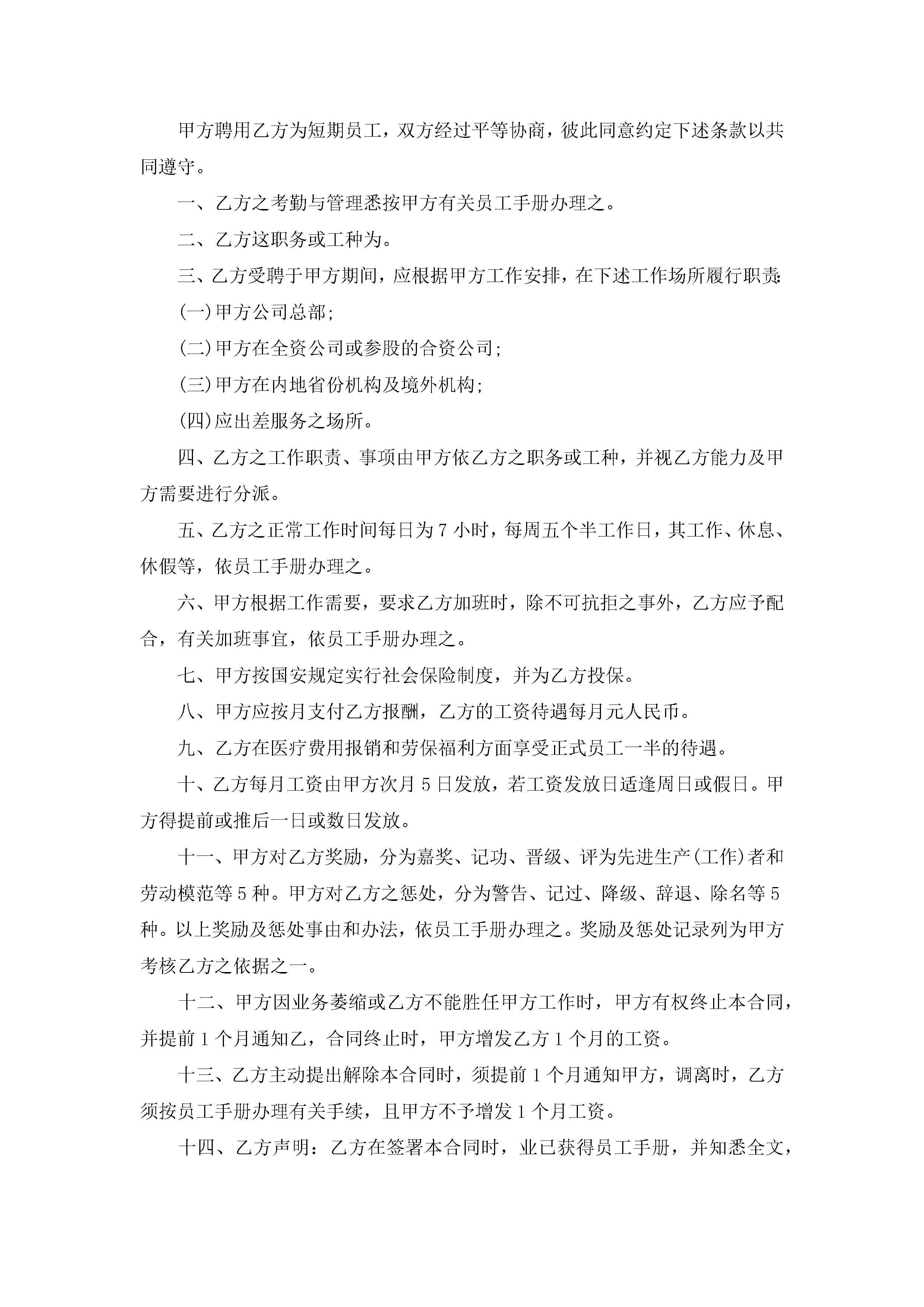 劳动合同模板简易版本5篇jugei3月23日 01:44发布关注203 劳动合同模板简易版本5篇此内容为付费资源,请付费后查看¥10.9 单篇文档限时特惠¥15个人会员开通企业会员开通立即下载无需登陆!可直接快捷下载单个模板付费资源© 版权声明THE ENDWord模板# 实用文档# 实用模板# 合同模板# 劳动合同 如有问题,可点击最底部“联系我们”联系客服 分享QQ空间微博QQ好友海报分享复制链接收藏