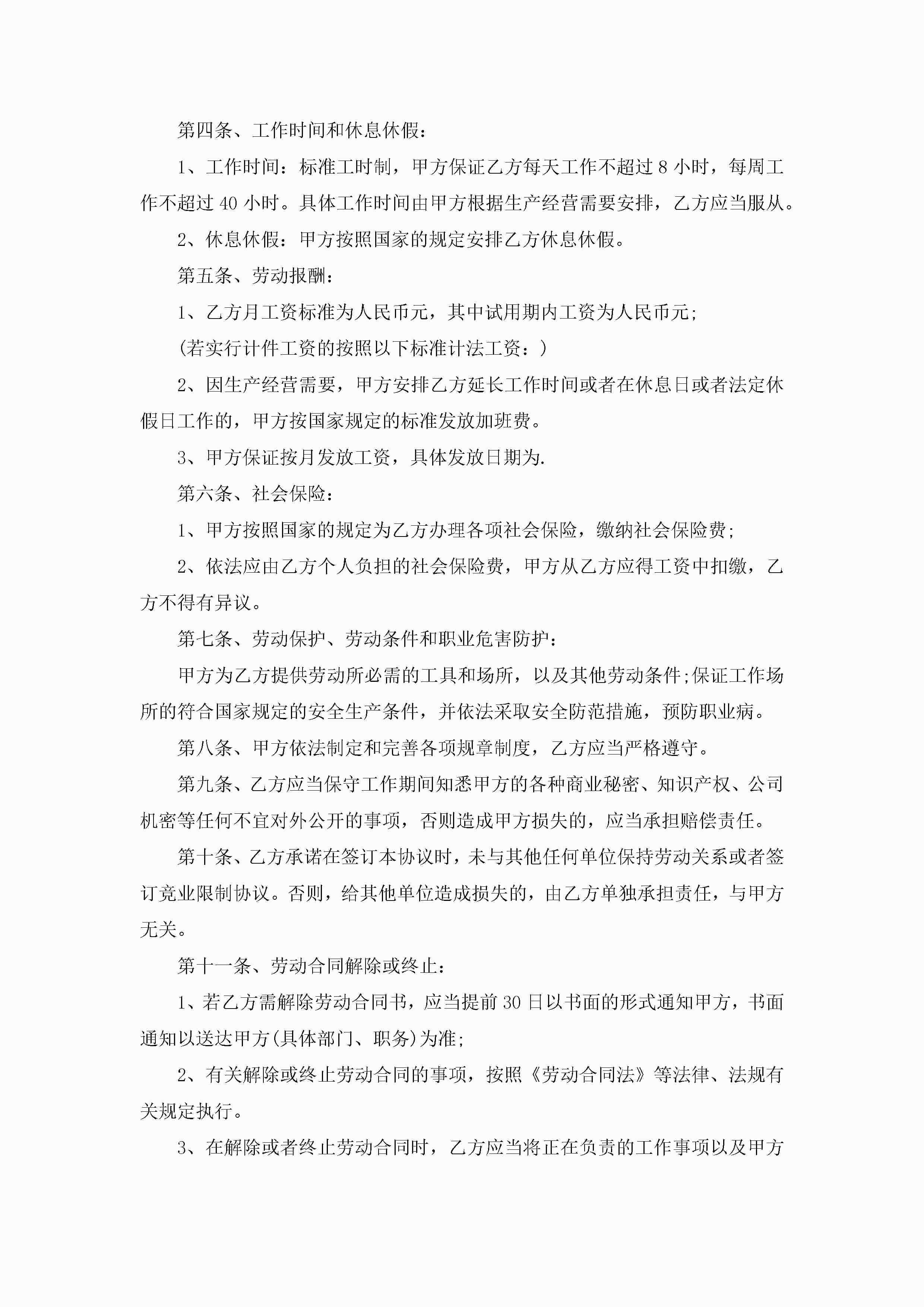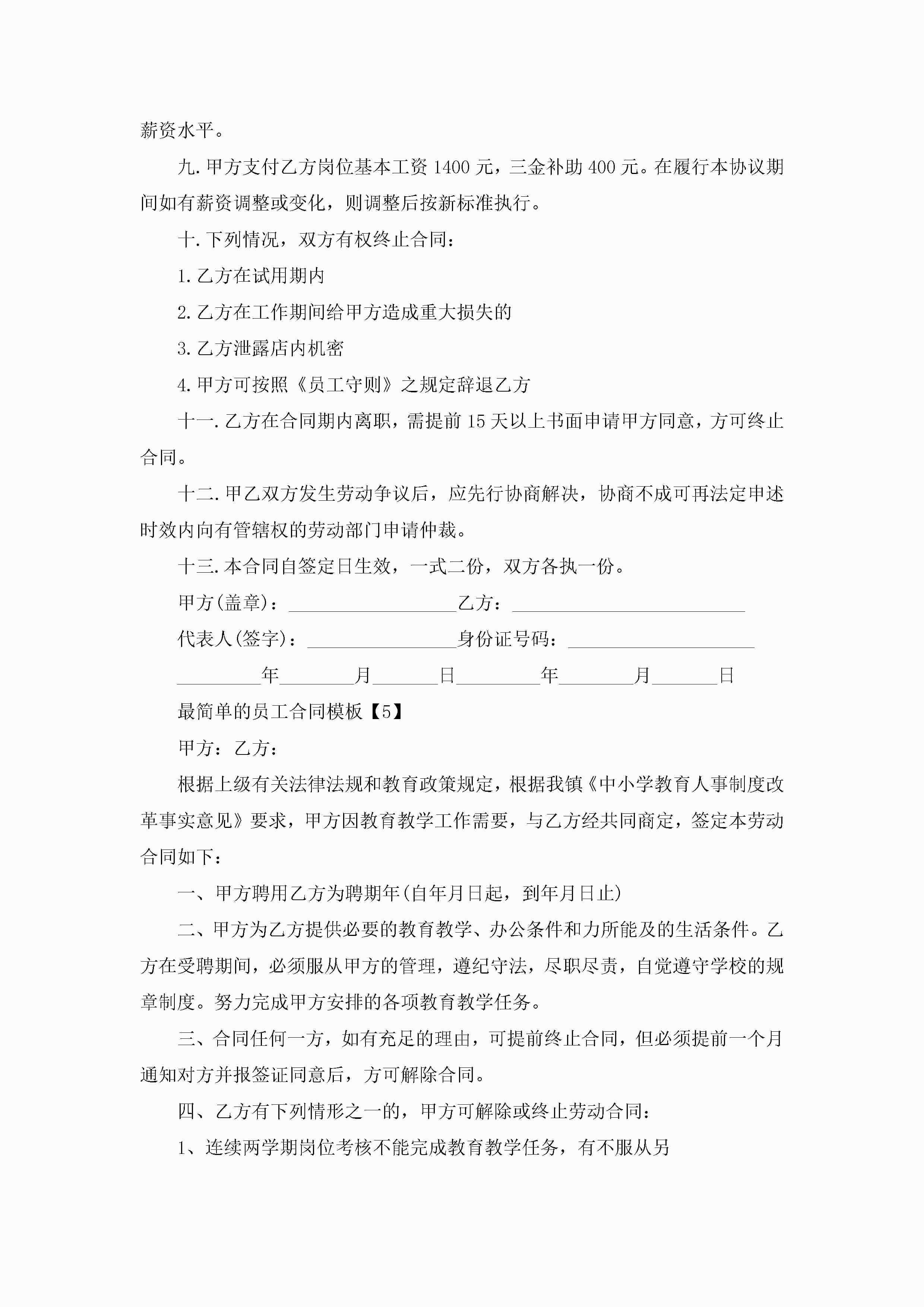 最简单的员工合同模板五篇jugei3月23日 01:44发布关注236 最简单的员工合同模板五篇此内容为付费资源,请付费后查看¥10.9 单篇文档限时特惠¥15个人会员开通企业会员开通立即下载无需登陆!可直接快捷下载单个模板付费资源© 版权声明THE ENDWord模板# 实用文档# 实用模板# 合同模板# 劳动合同 如有问题,可点击最底部“联系我们”联系客服 分享QQ空间微博QQ好友海报分享复制链接收藏