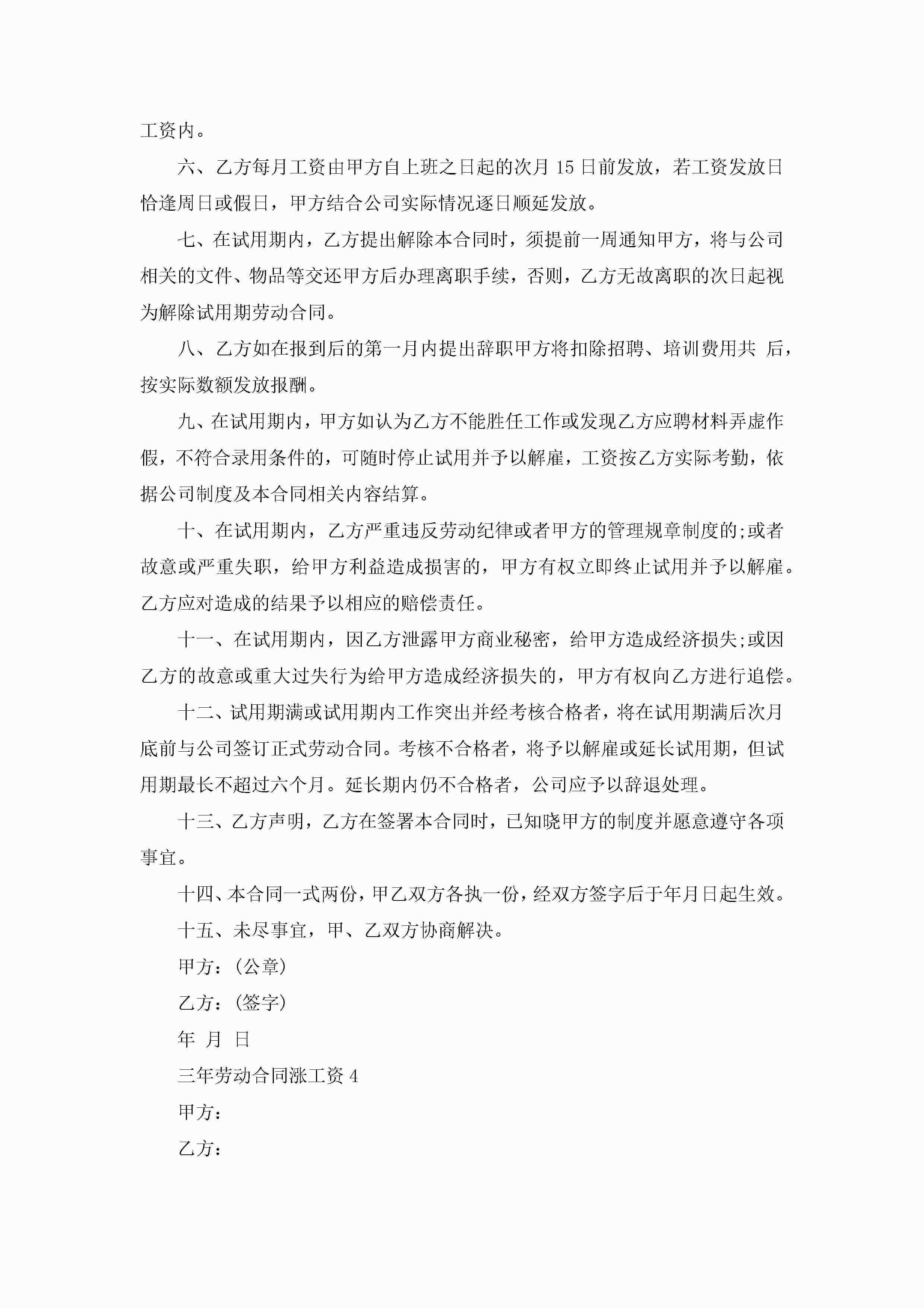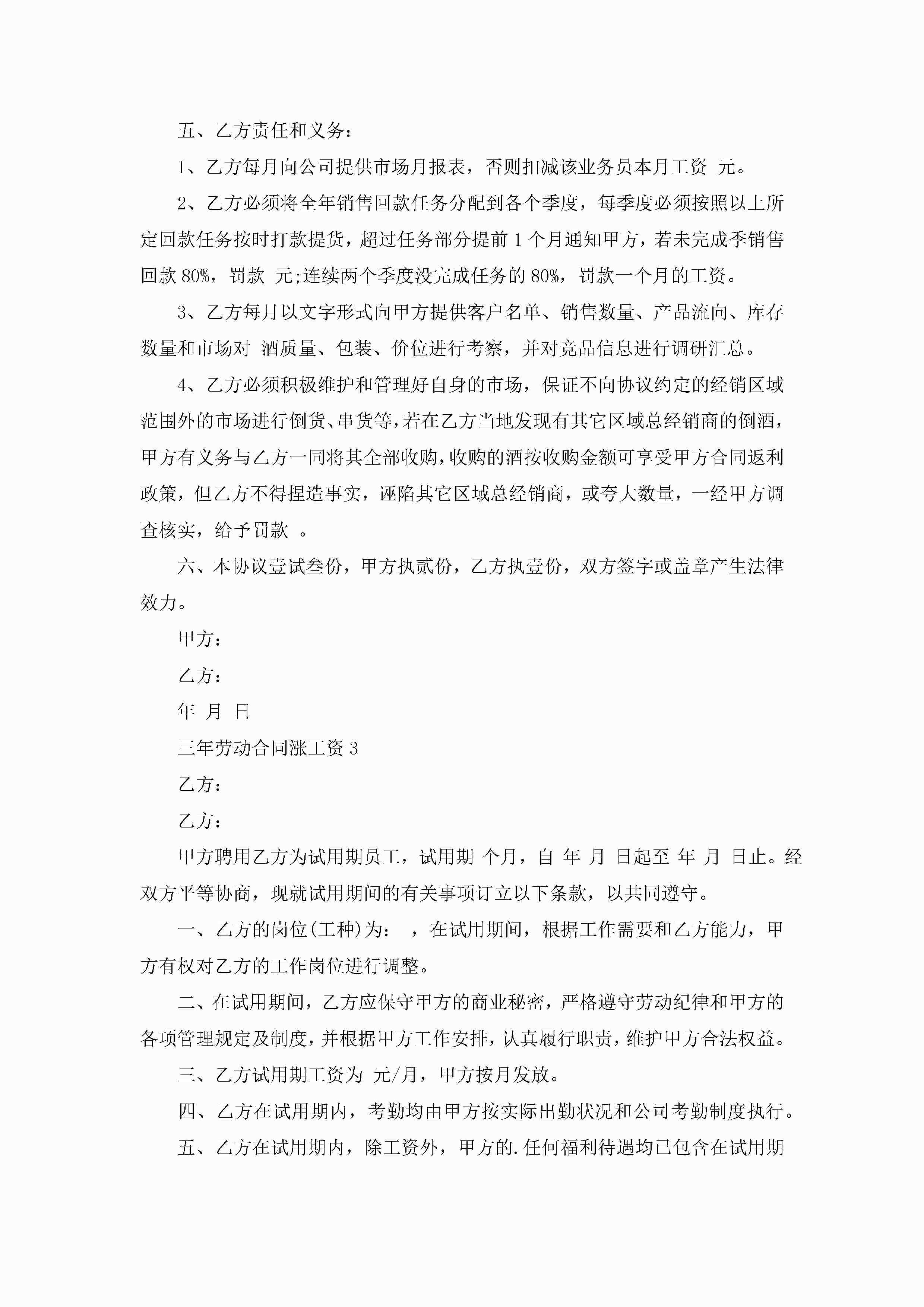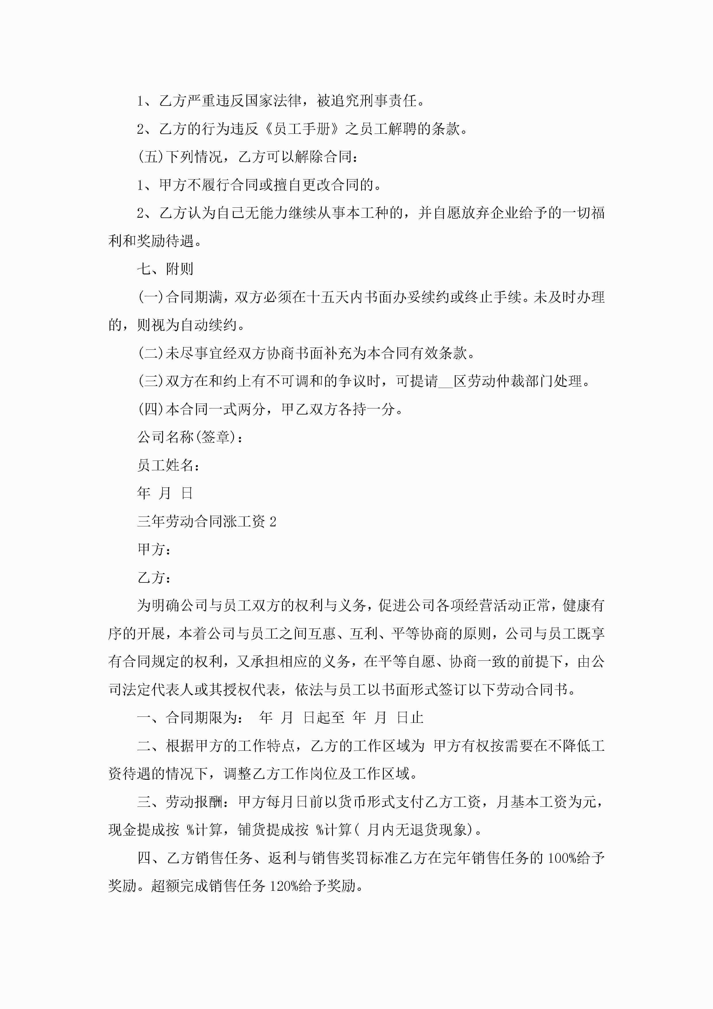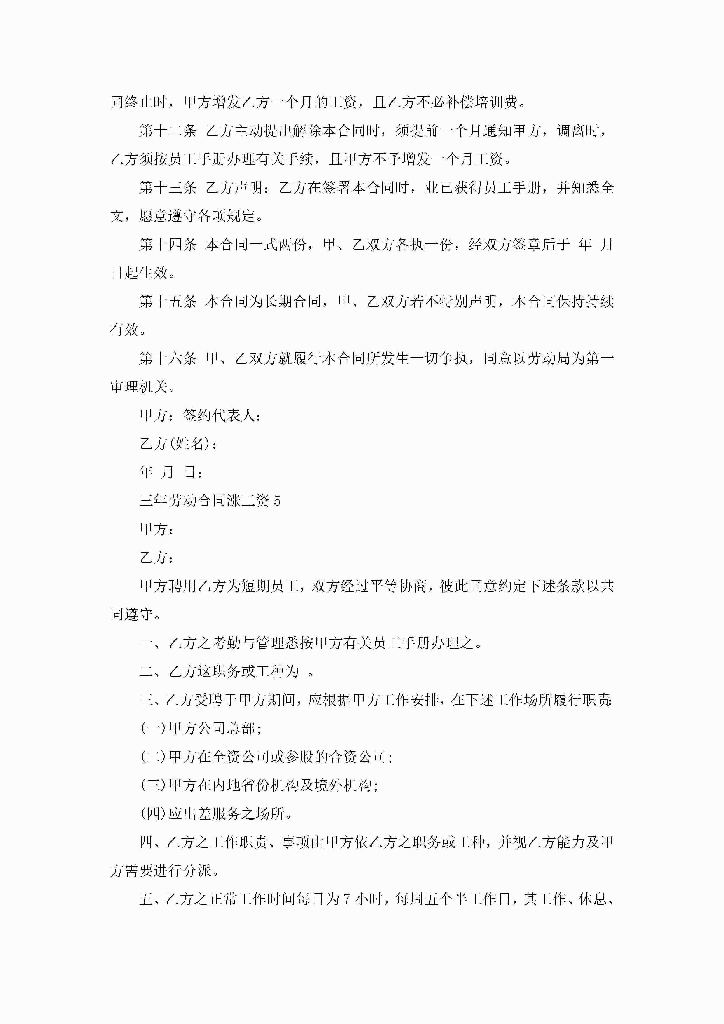 三年劳动合同涨工资5篇jugei3月23日 01:45发布关注265 三年劳动合同涨工资5篇此内容为付费资源,请付费后查看¥10.9 单篇文档限时特惠¥15个人会员开通企业会员开通立即下载无需登陆!可直接快捷下载单个模板付费资源© 版权声明THE ENDWord模板# 实用文档# 实用模板# 合同模板# 劳动合同 如有问题,可点击最底部“联系我们”联系客服 分享QQ空间微博QQ好友海报分享复制链接收藏